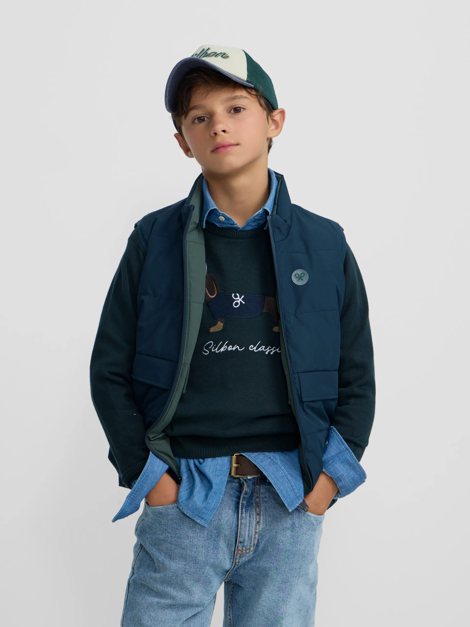 Chaleco kids reversible verde marino.