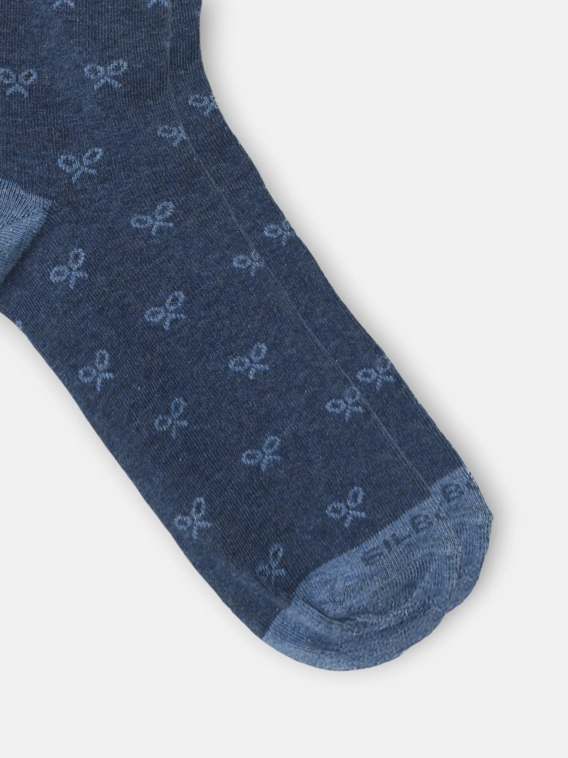 Calcetín multiraquetas azul marino confeccionado en mezcla de algodón. Presenta caña media y detalle de raquetas. Cuenta con letras SILBON en jacquard. Fabricado en Portugal.