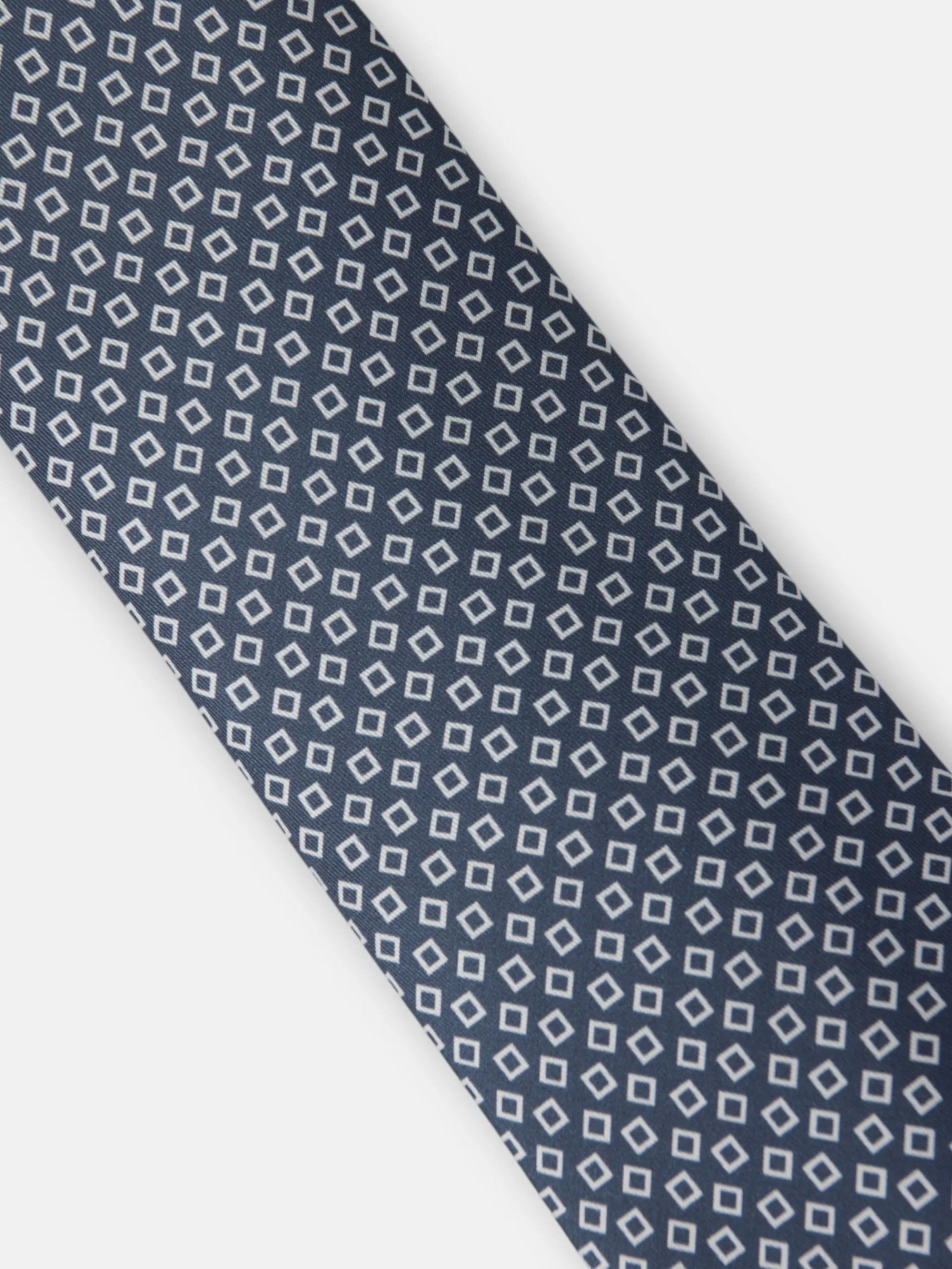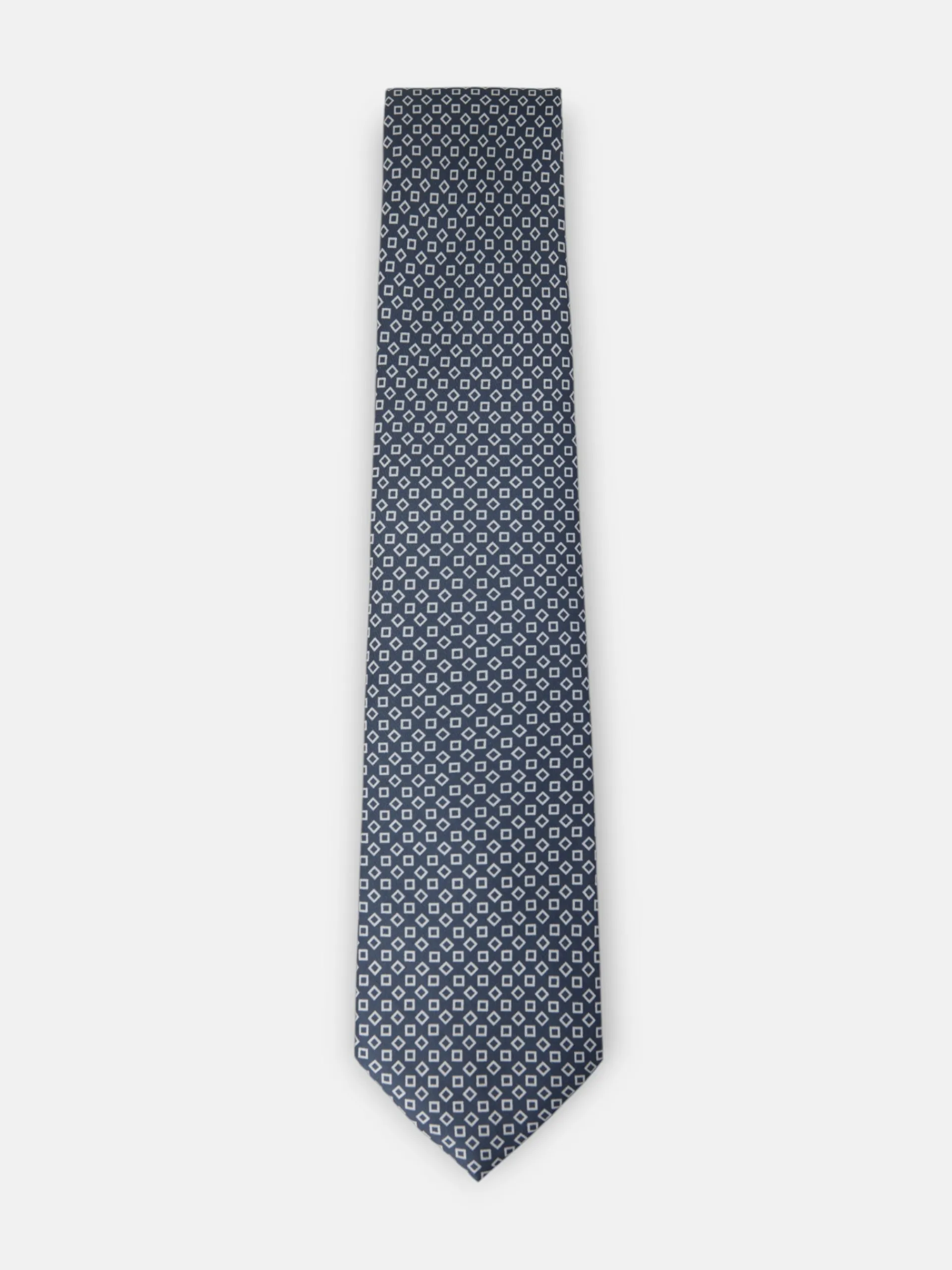 Corbata estampado cuadros irregular color azul marino confeccionada en 100% seda.