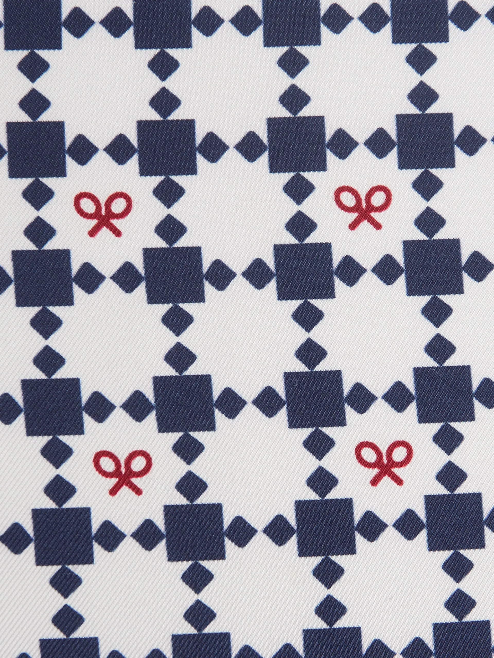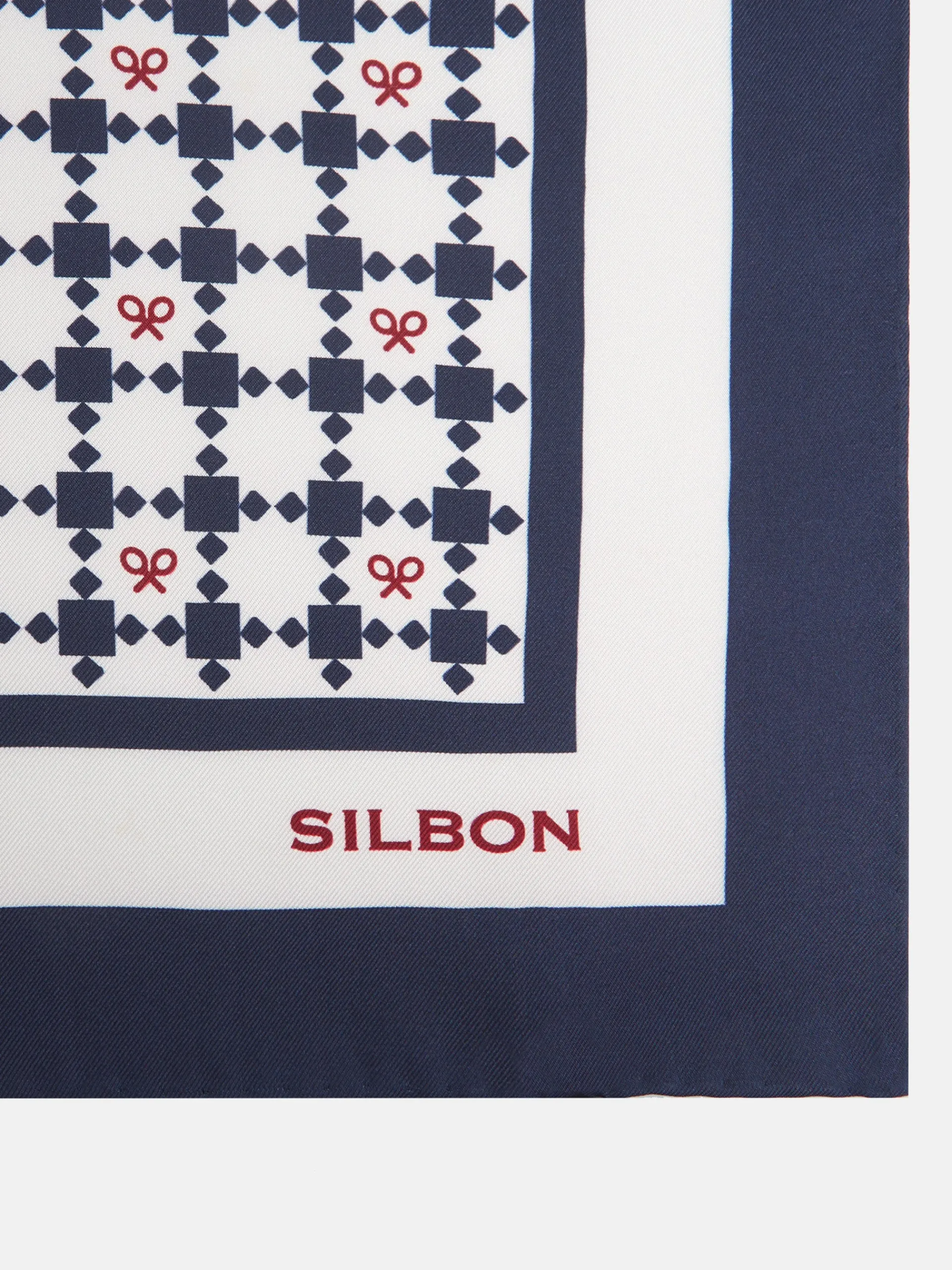 Pañuelo confeccionado en 100% seda. Presenta estampado geométrico y raquetas en jacquard. Cuenta con detalle de letras Silbon.