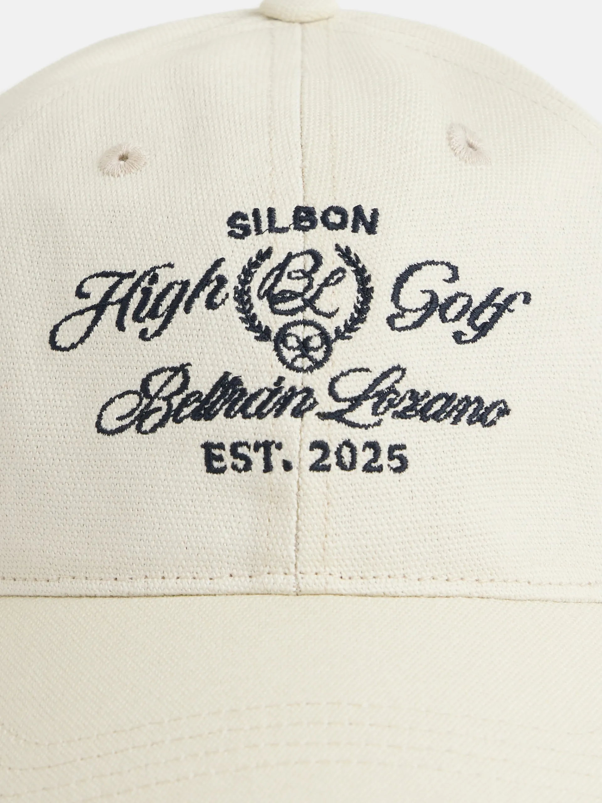 Gorra Beltrán Lozano High Golf beige confeccionada en 100% algodón. Presenta detalle de diseño de la colección de golf bordado en la corona. Cuenta con ajustable.