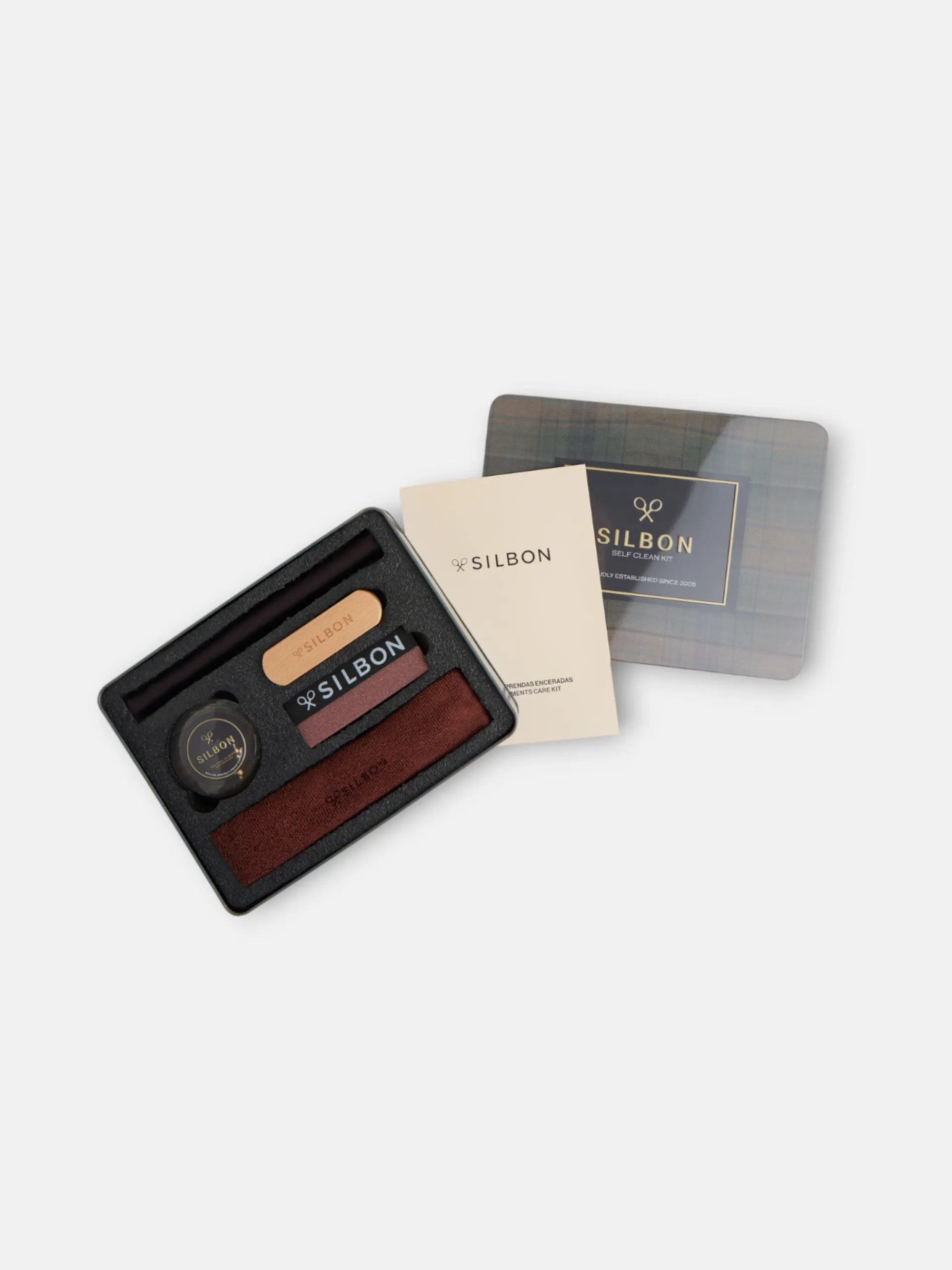 Kit de limpieza del abrigo encerado marrón oscuro. Contiene: