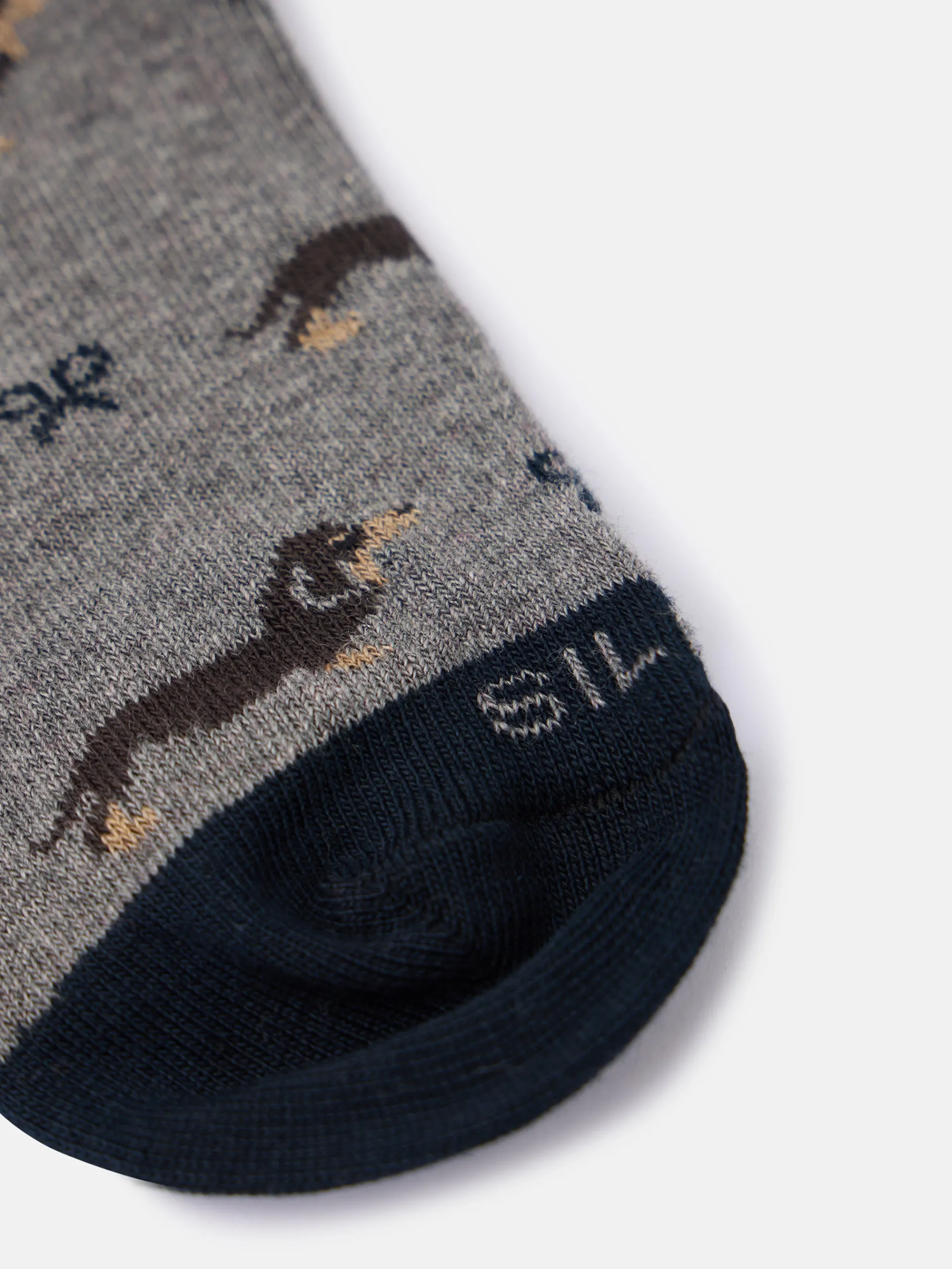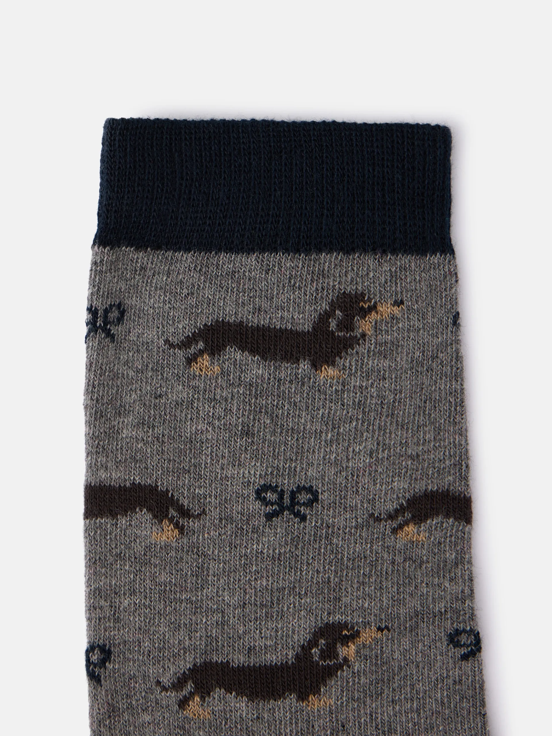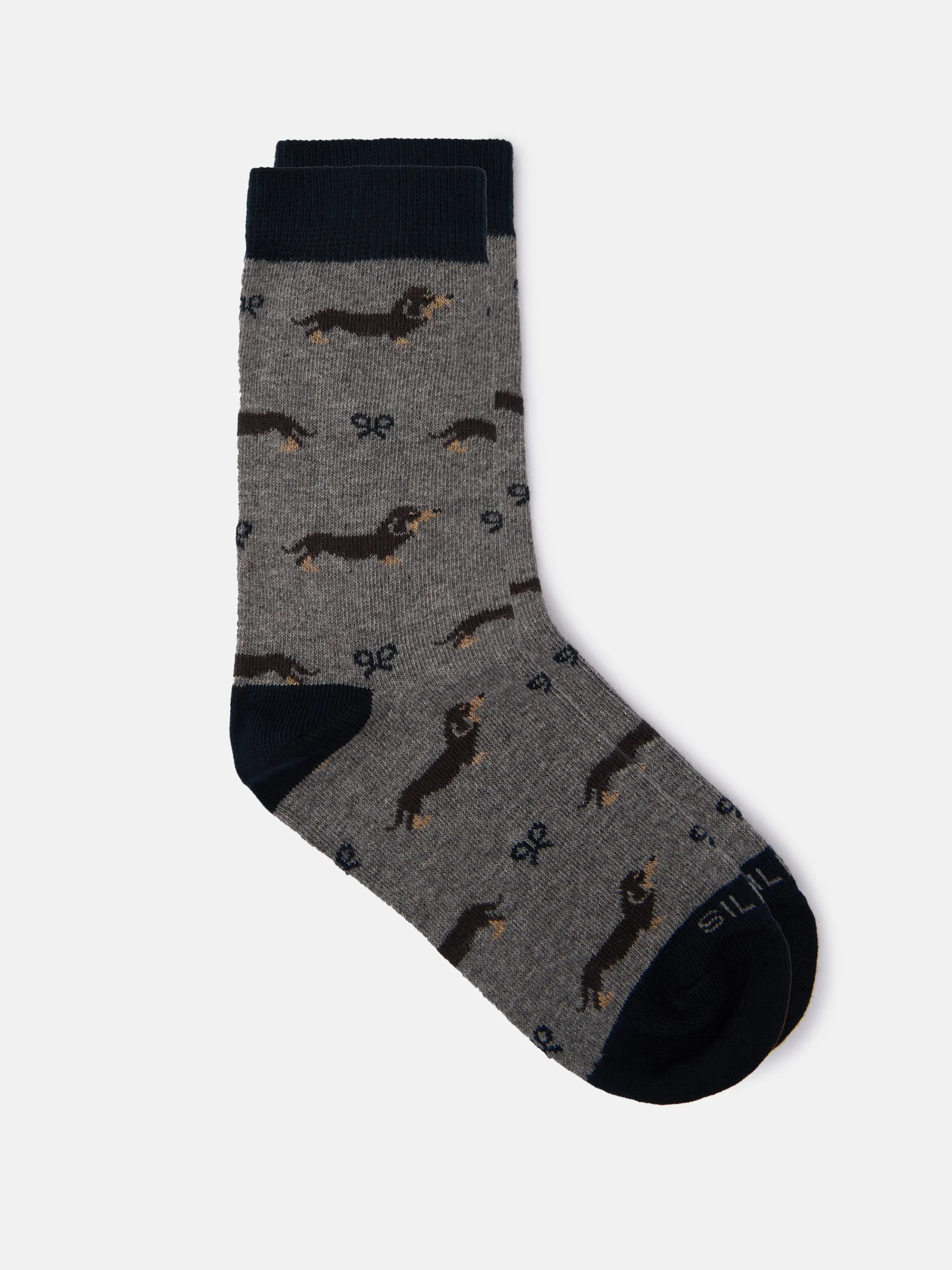 Calcetín doggy confeccionado en mezcla de algodón. Presenta caña media y detalle de raquetas. Cuenta con letras SILBON en jacquard. Fabricado en Portugal.