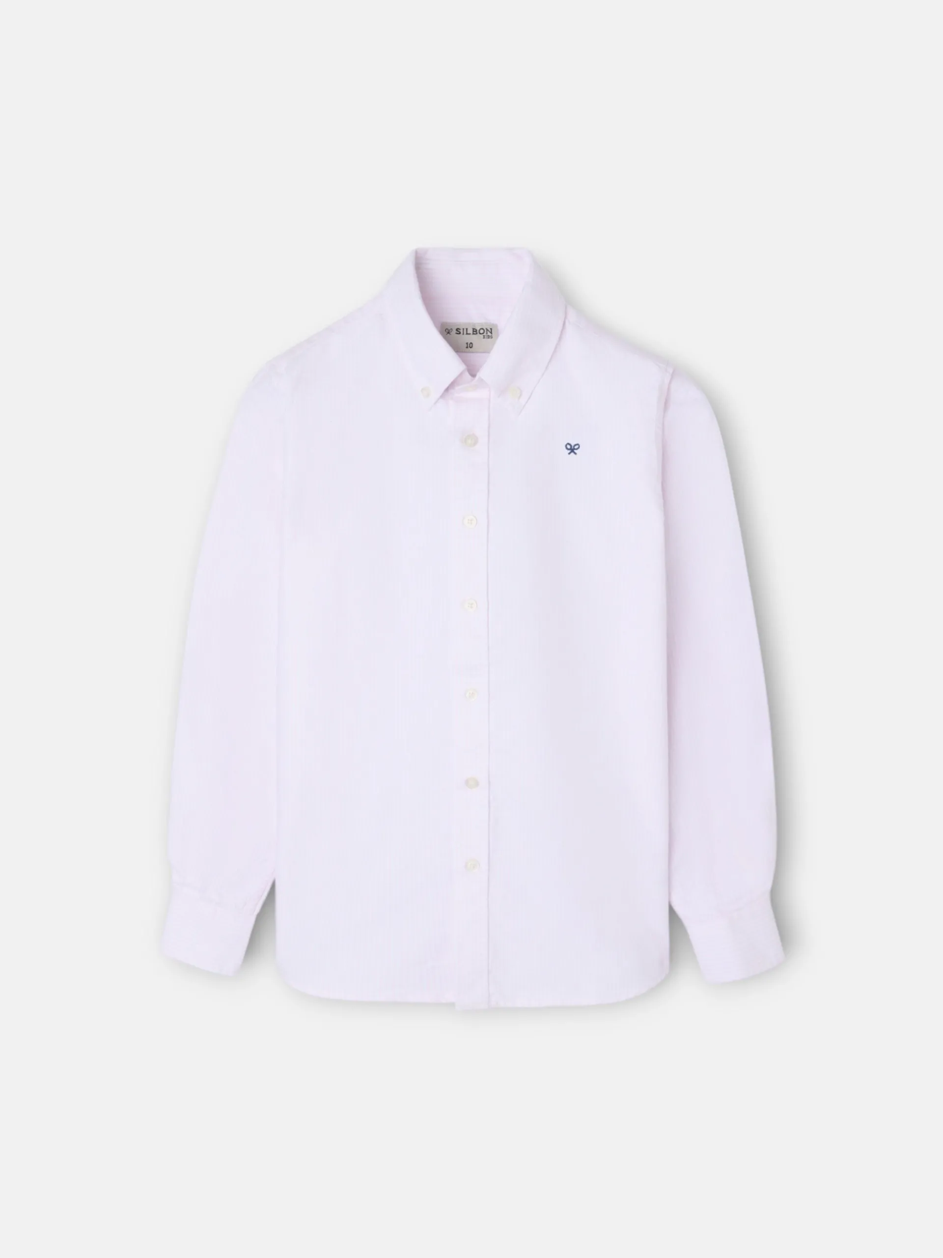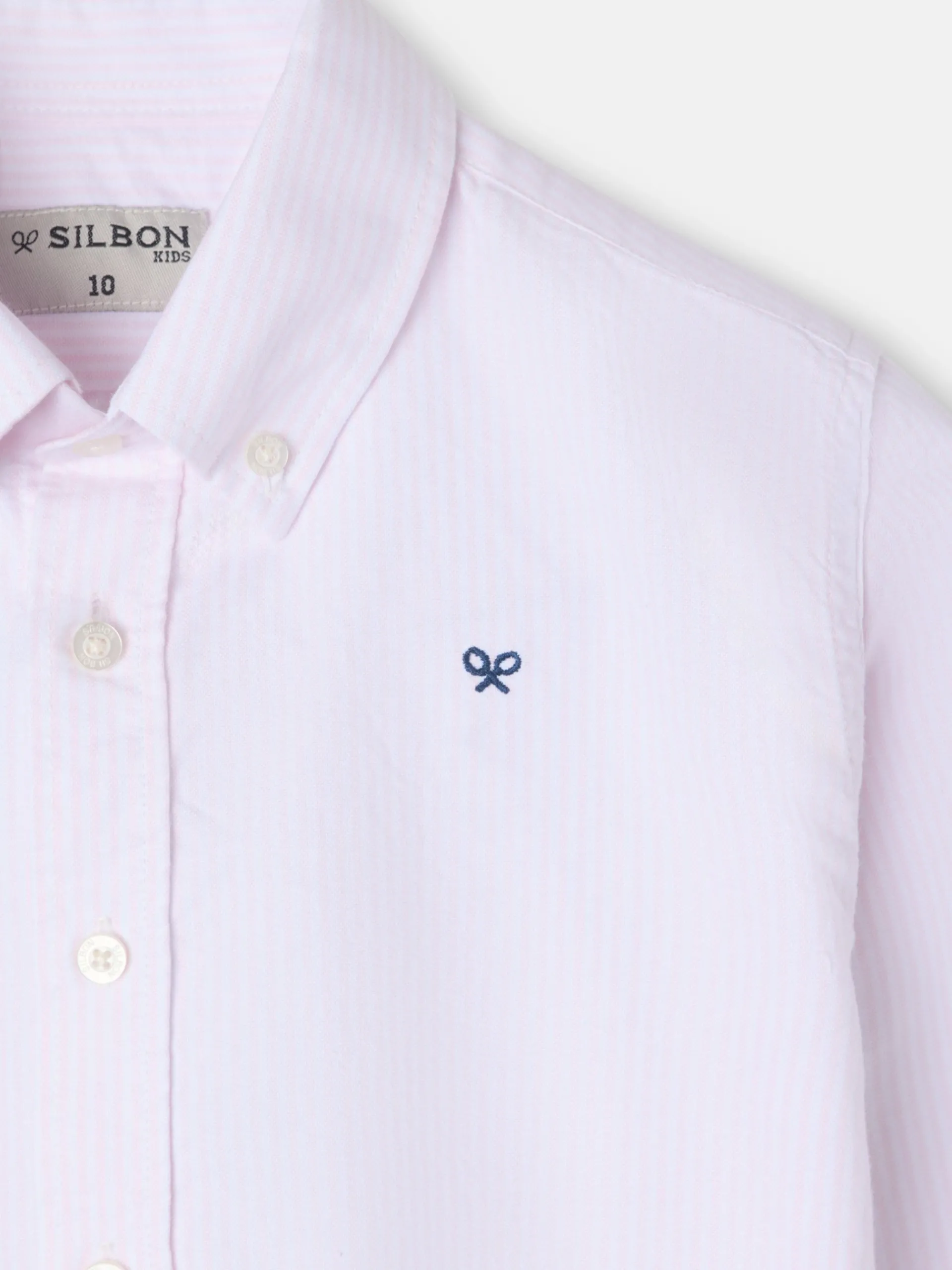 Camisa sport kids oxford raqueta rayas rosas confeccionada en 100% algodón BCI de corte Regular fit. Presenta cuello clásico, cierre con botones personalizados y manga larga de puño con botones. Cuenta con raquetas bordadas en el torso.