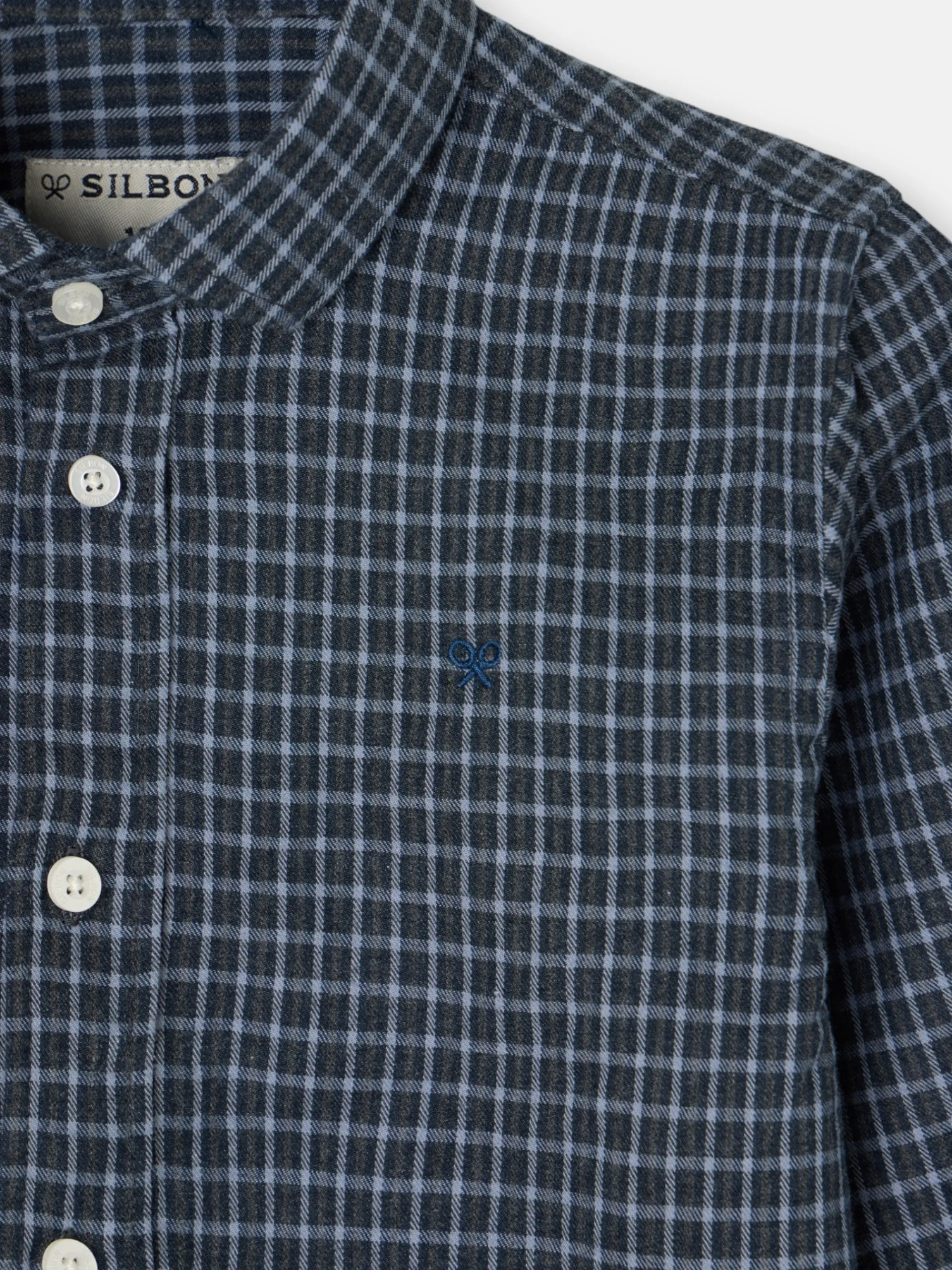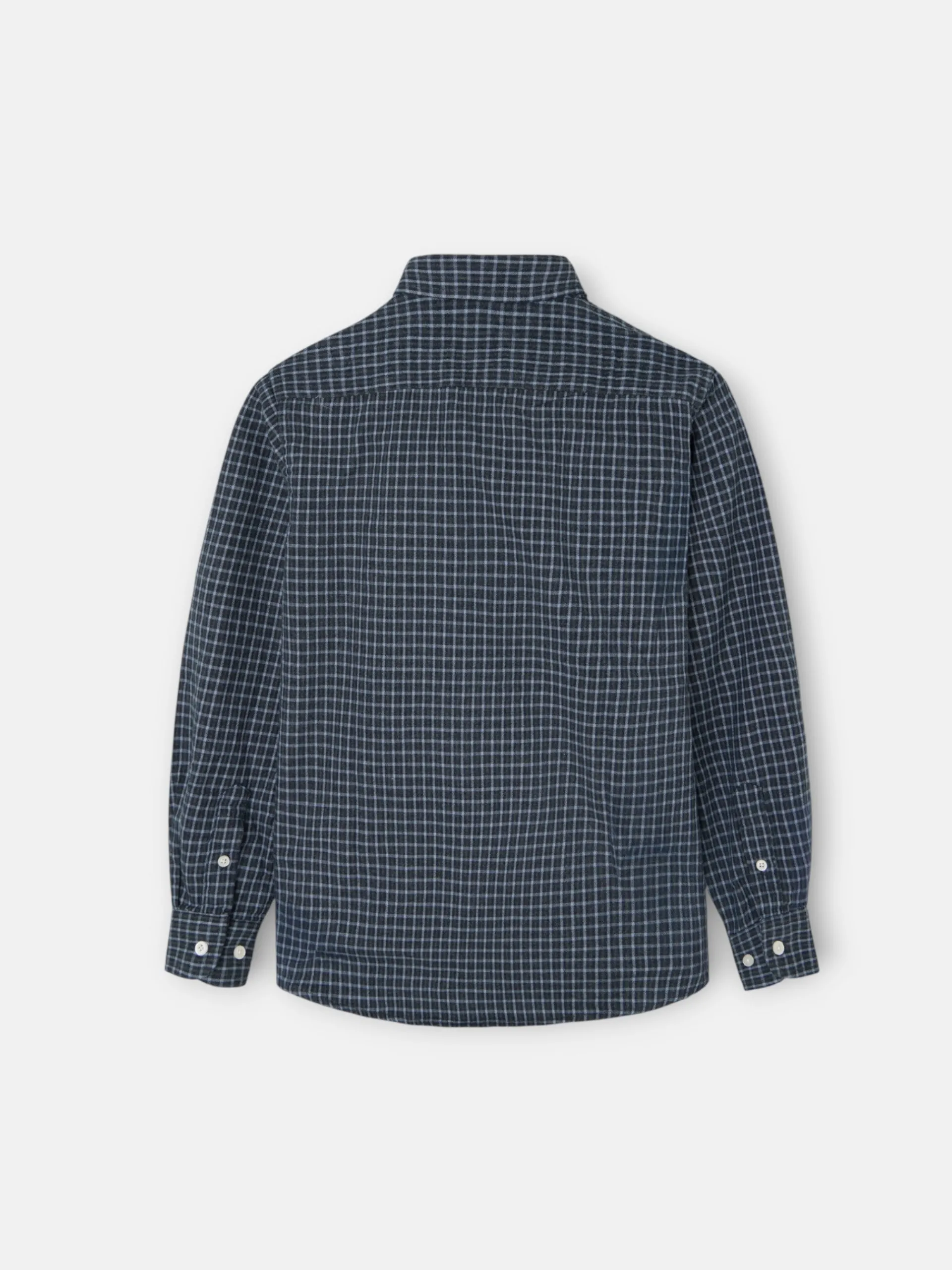 Camisa sport kids warm cuadro dark navy confeccionada en 100% algodón BCI de corte Regular Fit. Presenta cuello clásico, cierre con botones personalizados y manga larga de puño con botones. Cuenta con raquetas bordadas a contraste en color azul marino en el torso.