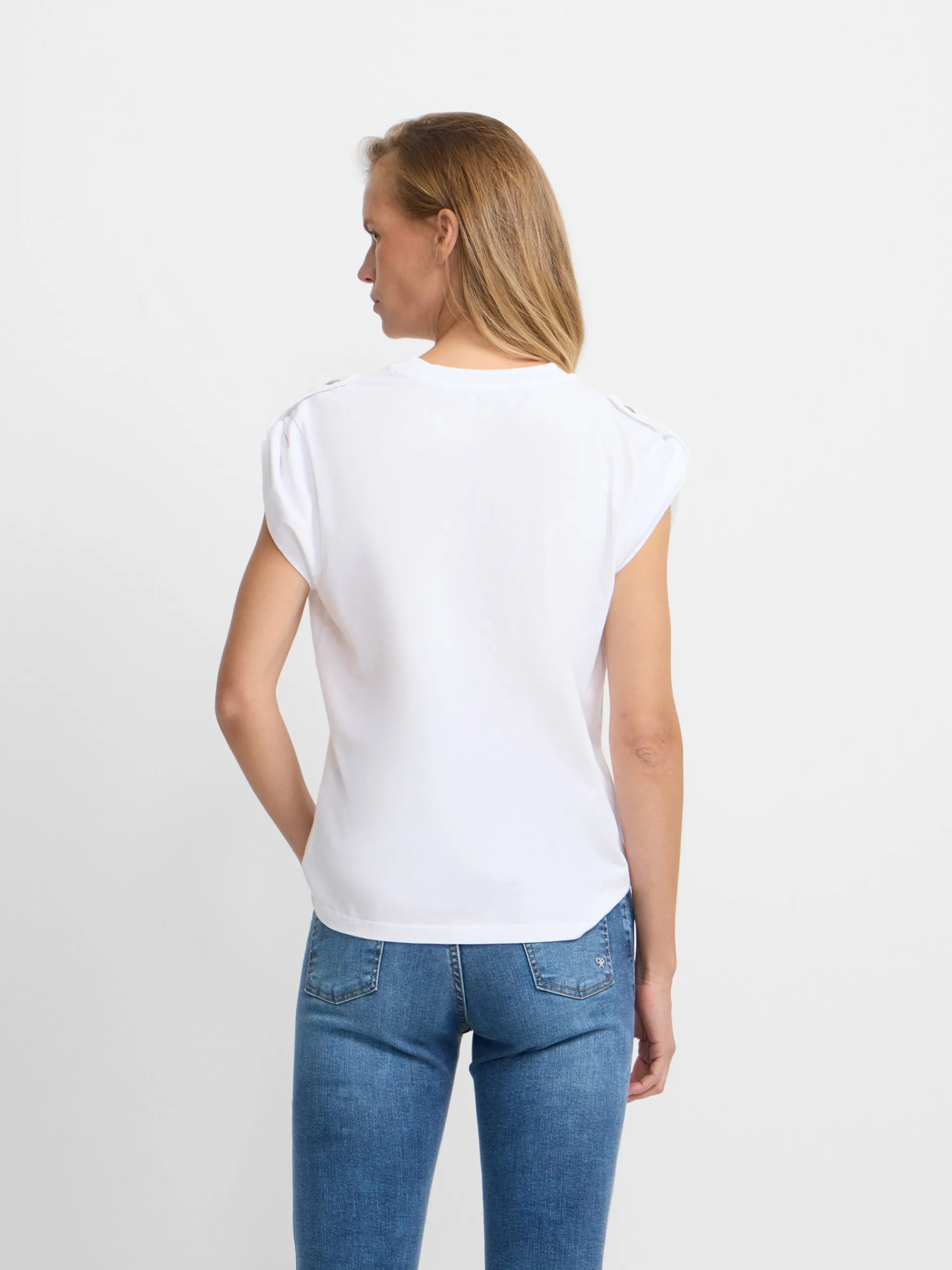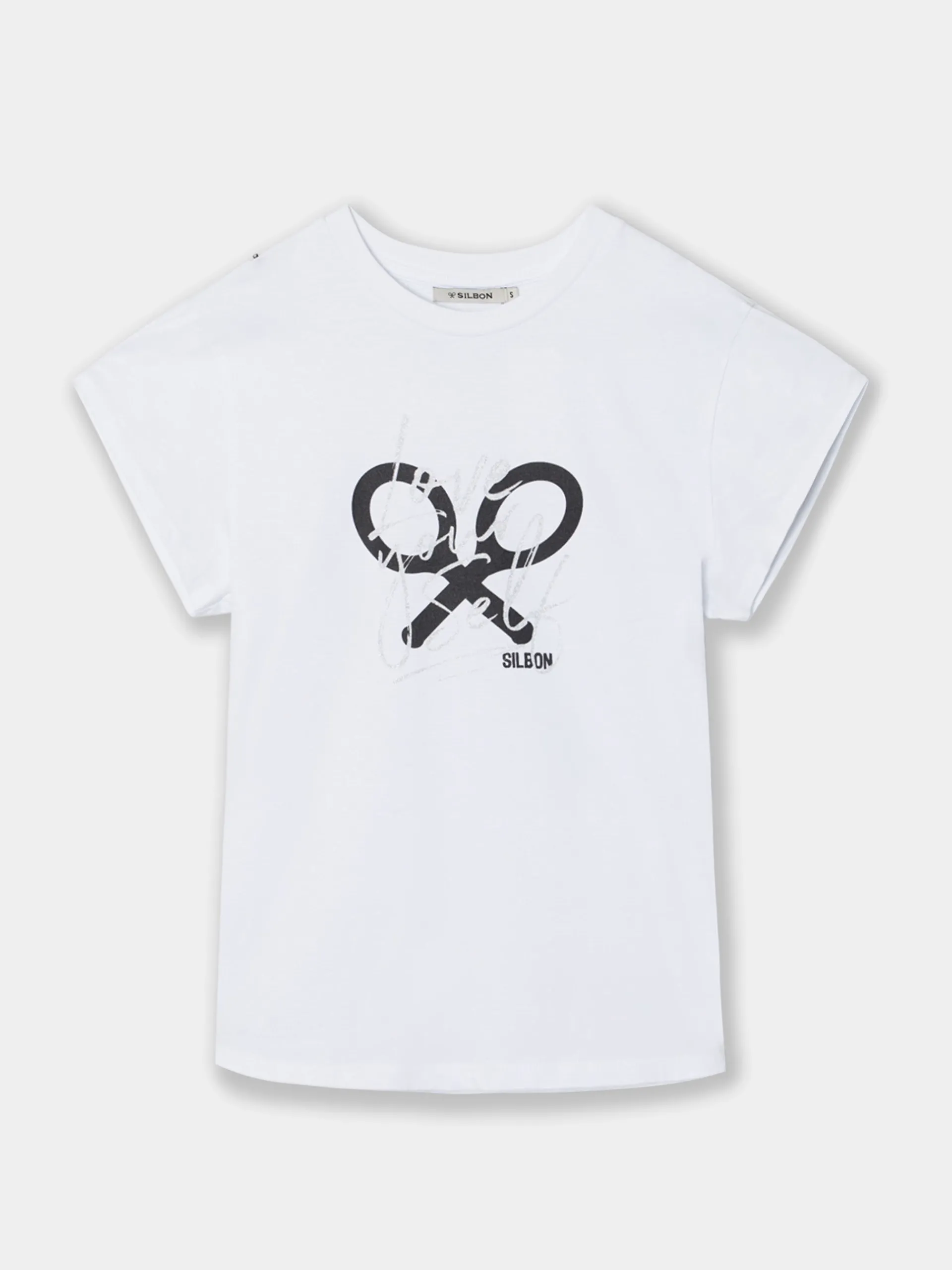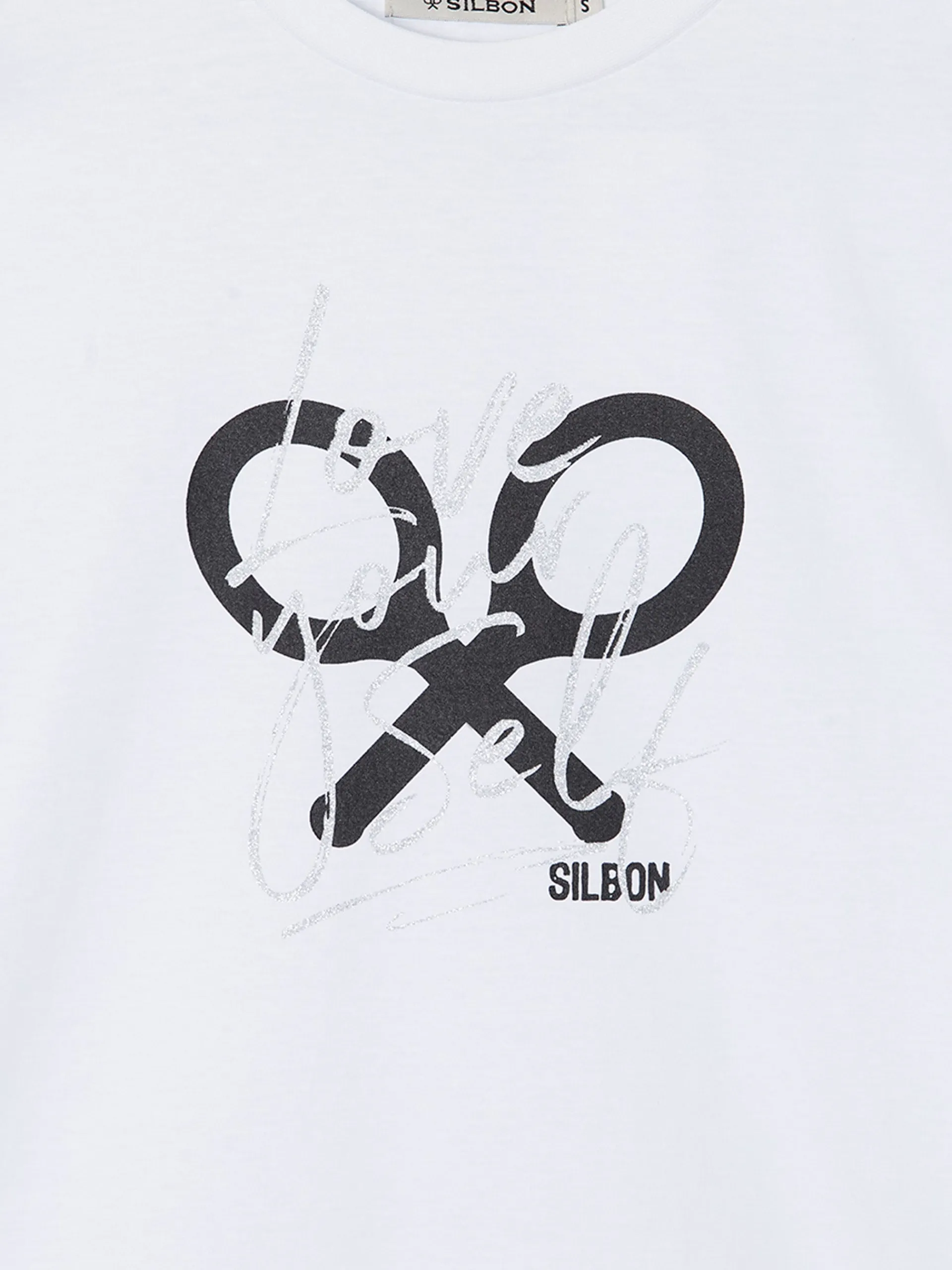 Camiseta básica confeccionada en 100% algodón de corte Regular fit. Presenta cuello redondo y manga roll out. Cuenta con print de raquetas y letras en el torso. Fabricada en Portugal.