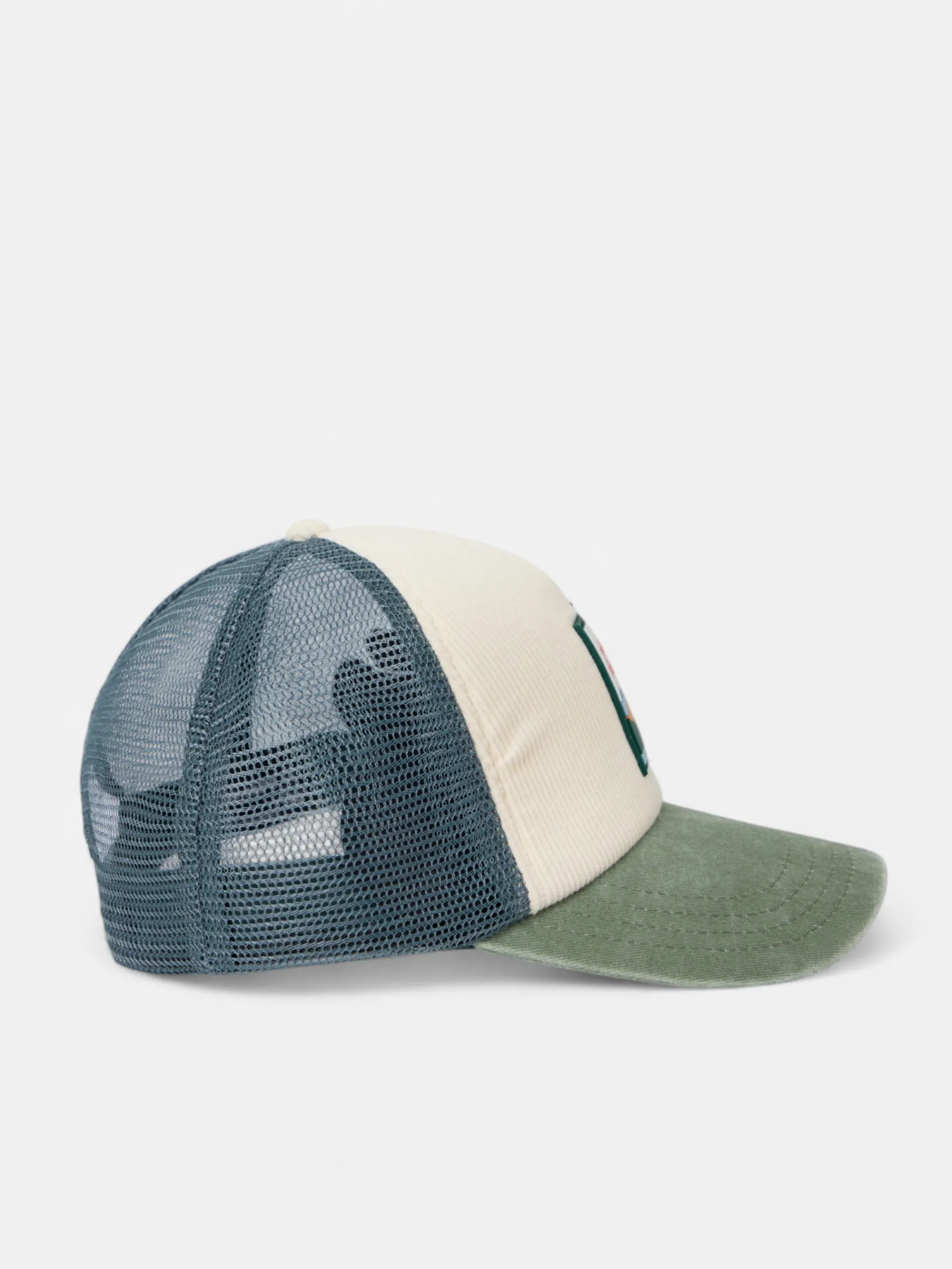 Gorra trucker «silbon company» en color verde y azul confeccionada en algodón y poliéster. Presenta diseño bordado en la corona y visera en tejido a contraste. Cuenta con ajustable y etiqueta personalizada trasera.