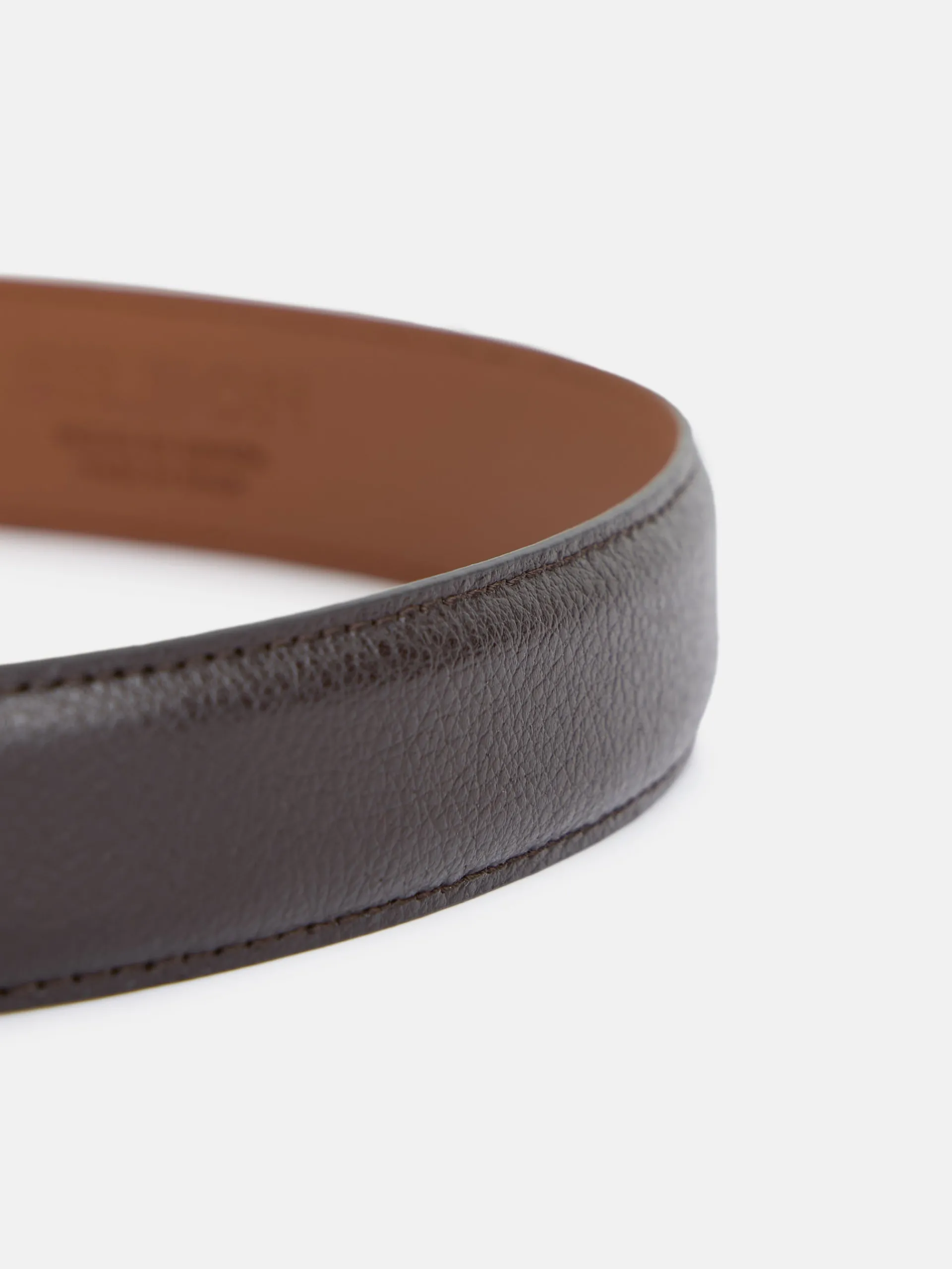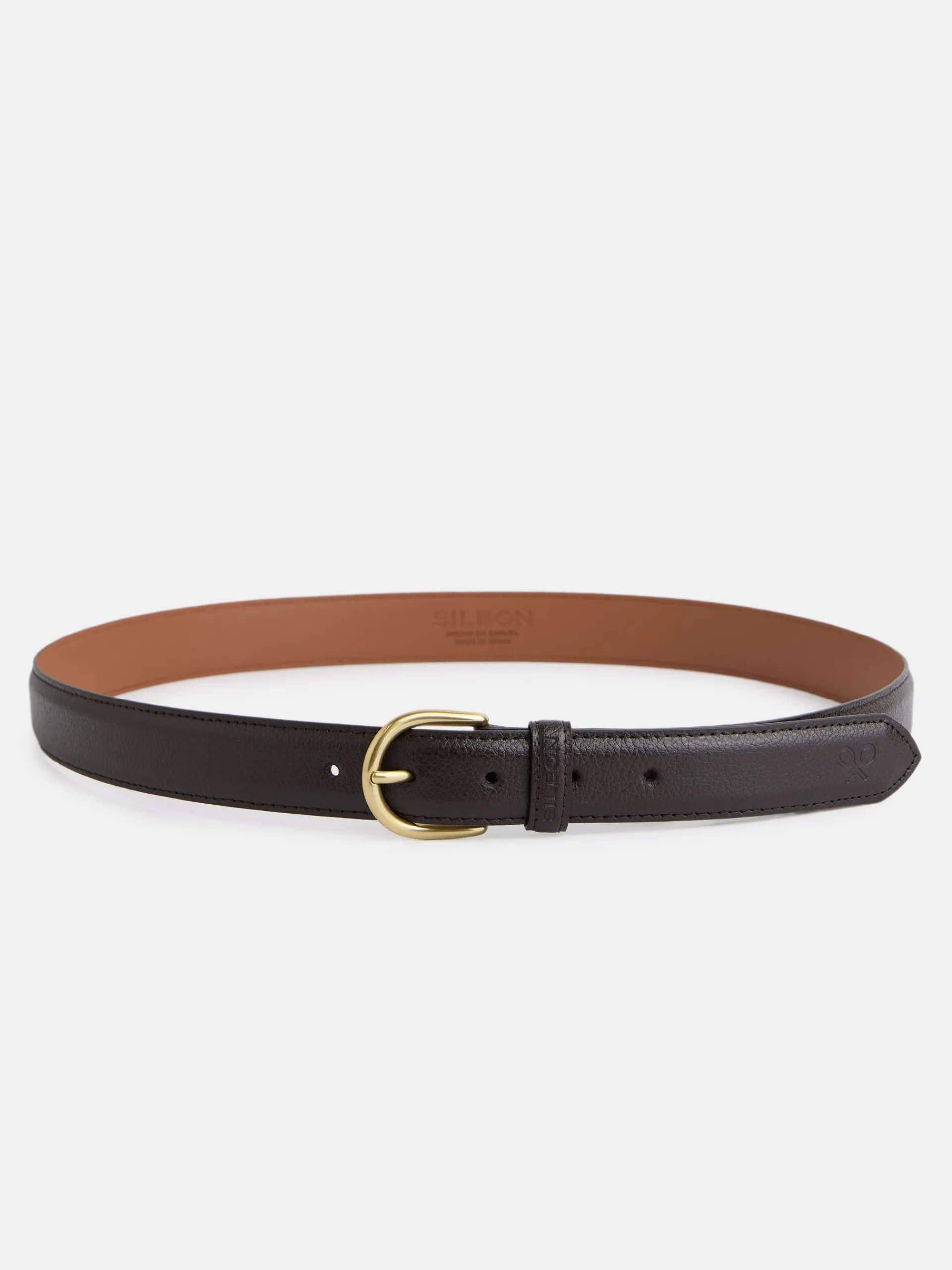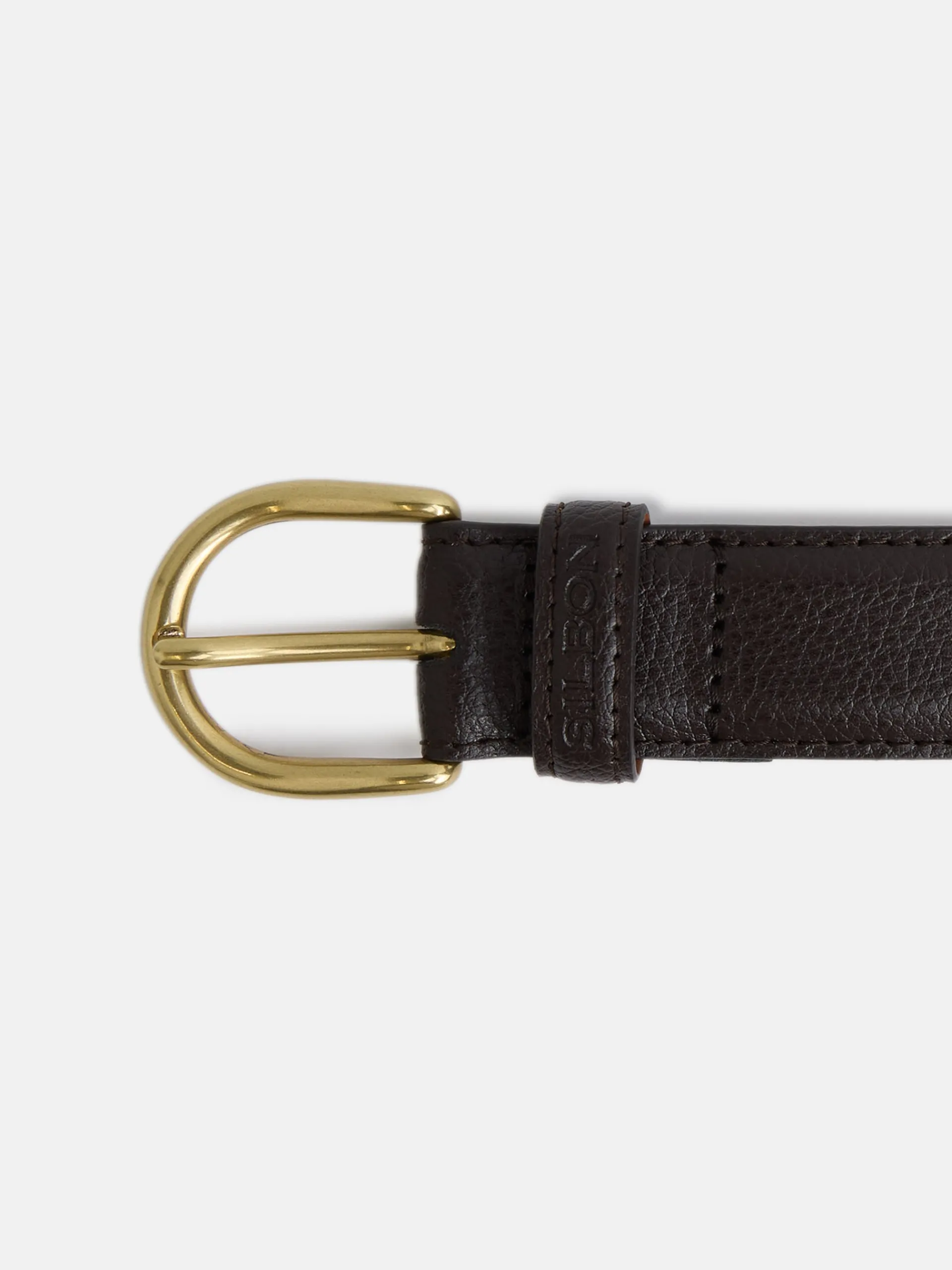 Cinturón confeccionado en piel. Presenta hebilla metálica personalizada.