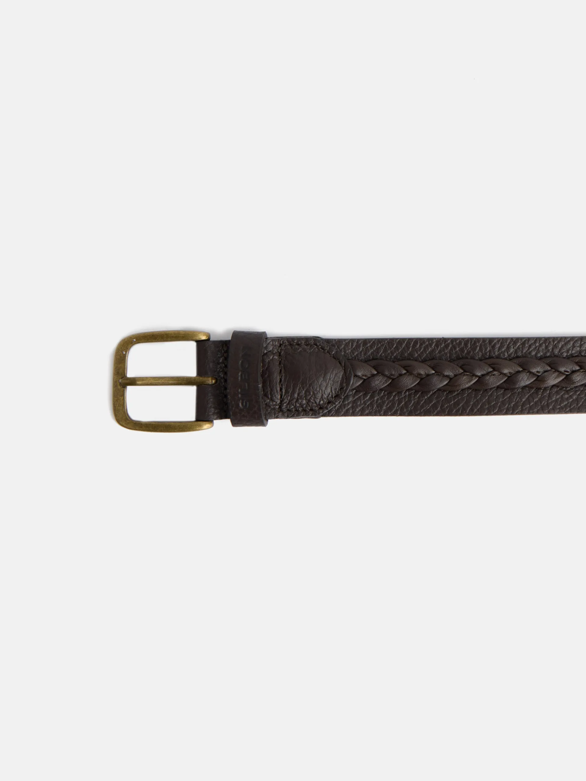 Cinturón confeccionado en 100% piel. Presenta cierre con trabilla y hebilla metálica personalizada. Cuenta con raquetas grabadas en el extremo y detalle de cuerda de piel al tono. Fabricado en España.