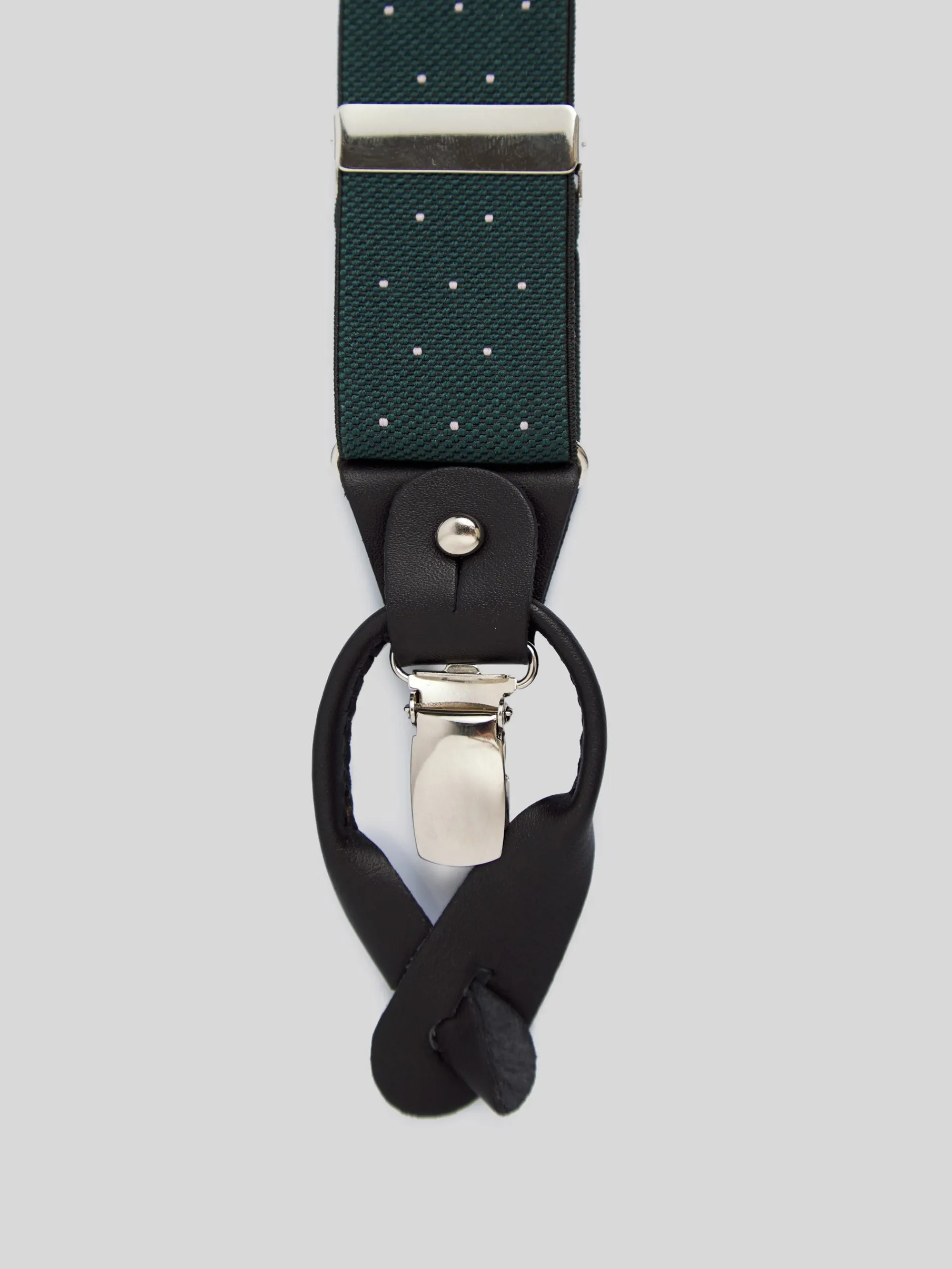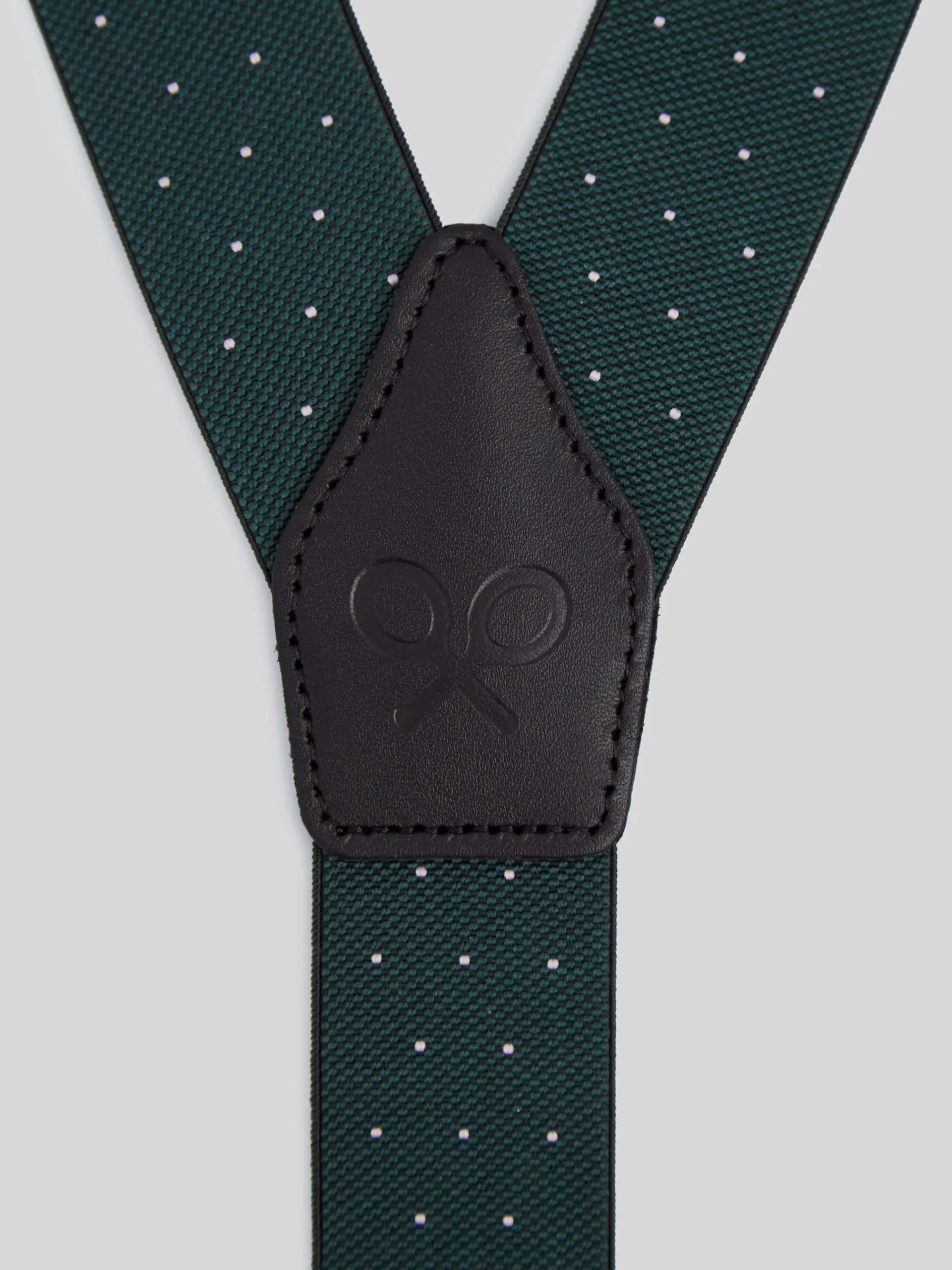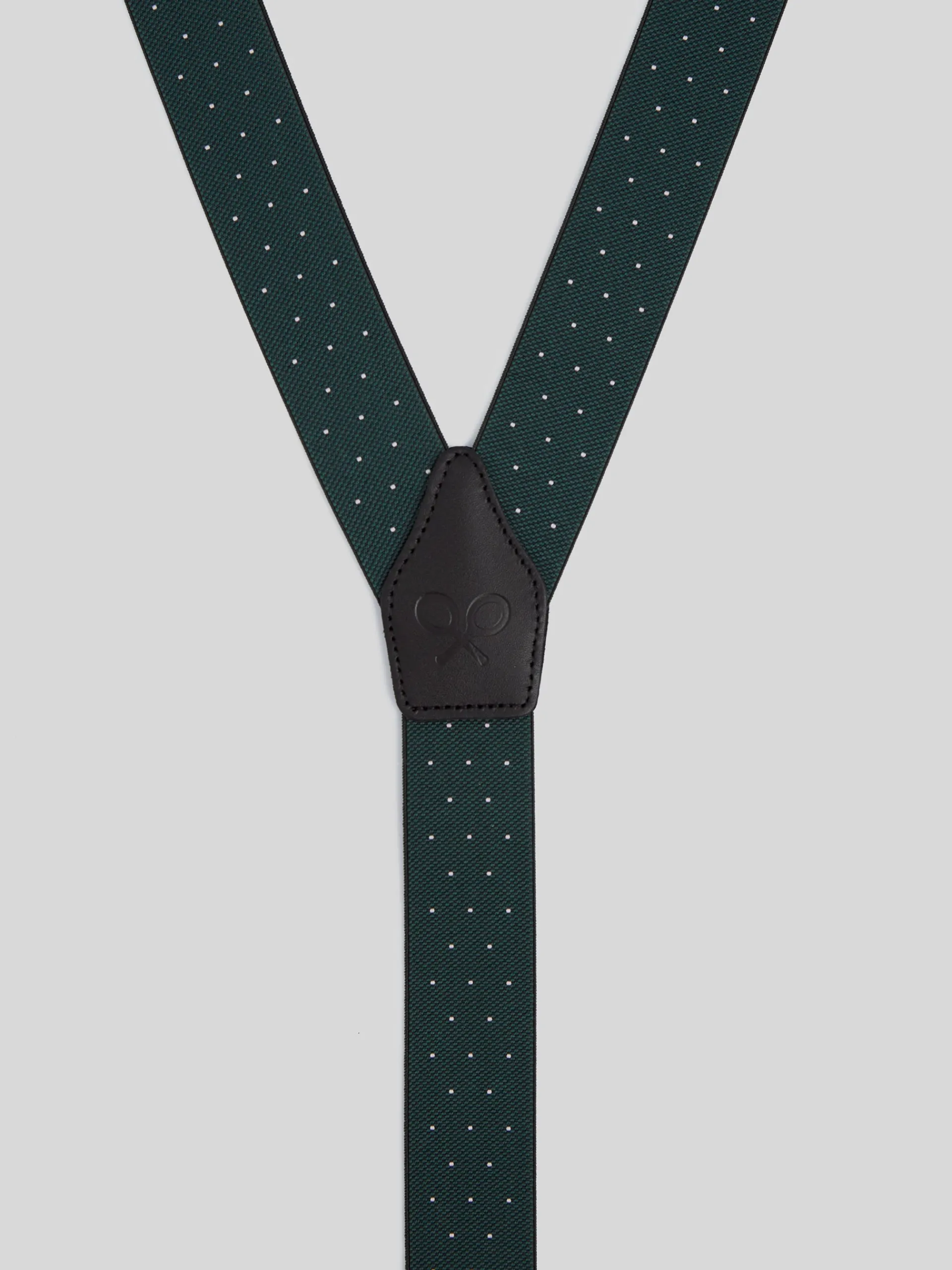 Tirantes elásticos y ajustables en color burdeos con puntos. Este tirante cuenta con detalles en piel vacuno de color negro con logo grabado a fuego. Incluye doble sujeción latiguillo y pinzas metálicas. Fabricado en España.