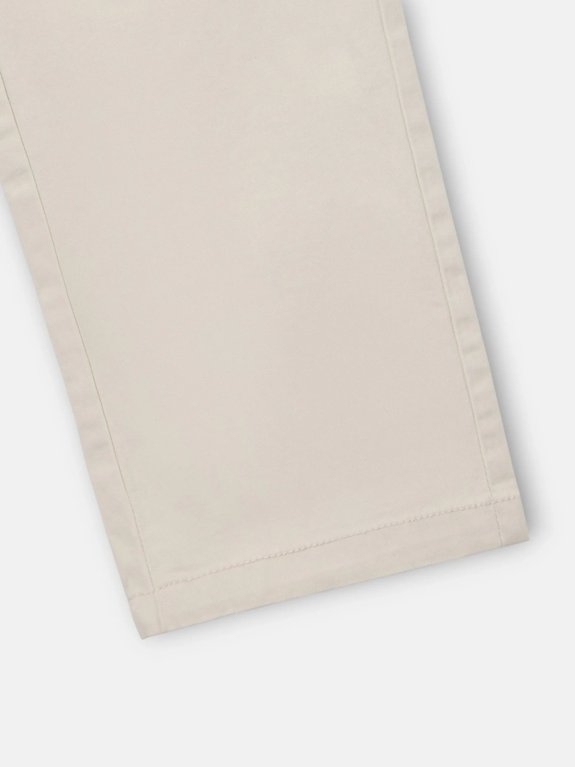 Pantalón chino casual con pinzas, color piedra confeccionado en mezcla de algodón BCI de corte Slim fit. Presenta cierre con botón personalizado y cremallera, trabillas en la cintura y bolsillos delanteros y traseros.