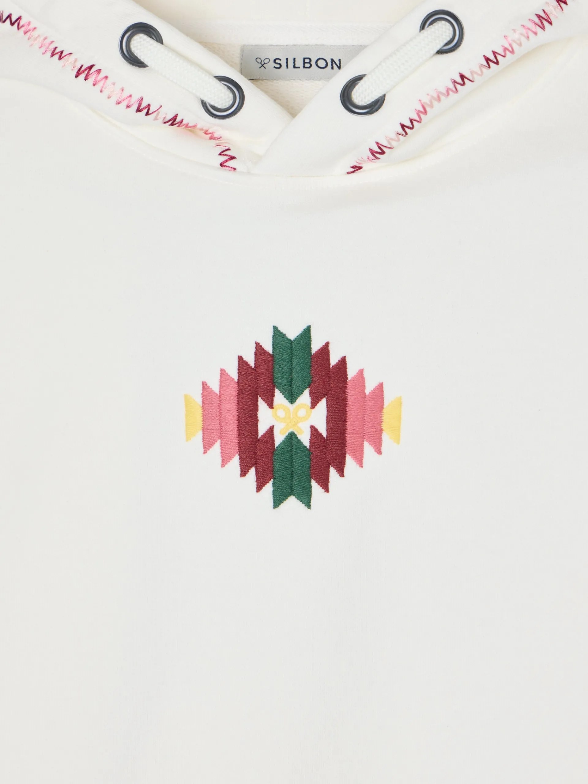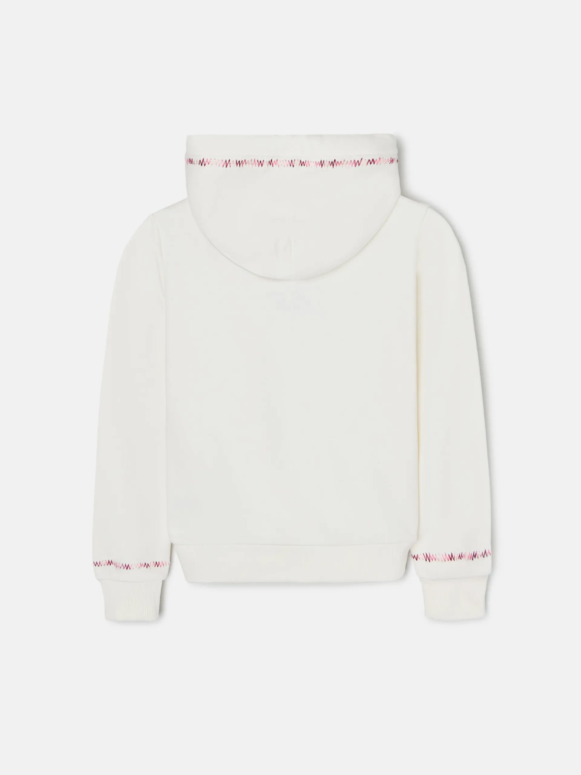 Sudadera girl étnica cruda confeccionada en mezcla de algodón. Presenta bordado étnico con raquetas multicolor en el frontal. Cuenta con capucha y mangas rectas con puño elástico con detalle bordado en el contorno.