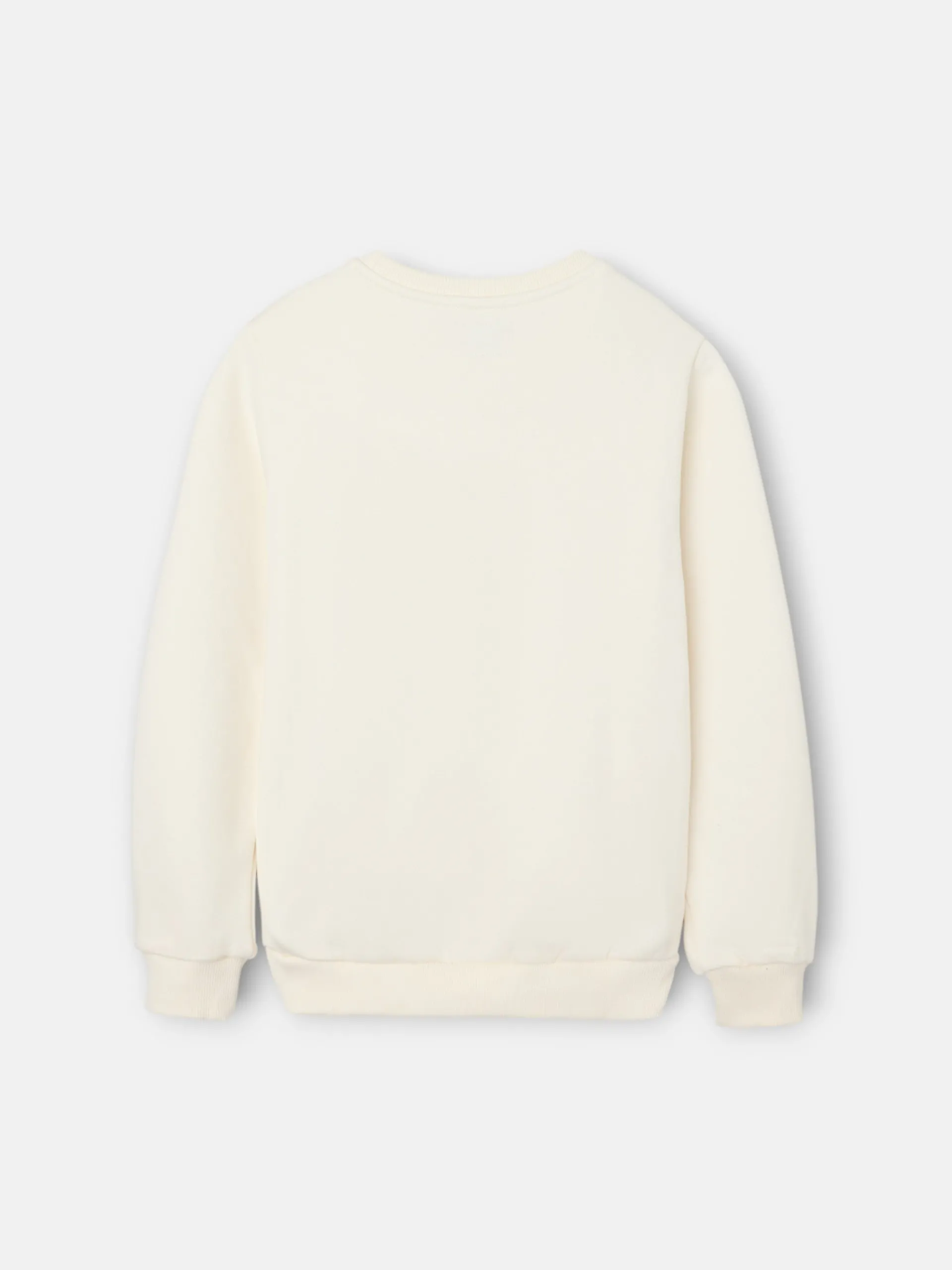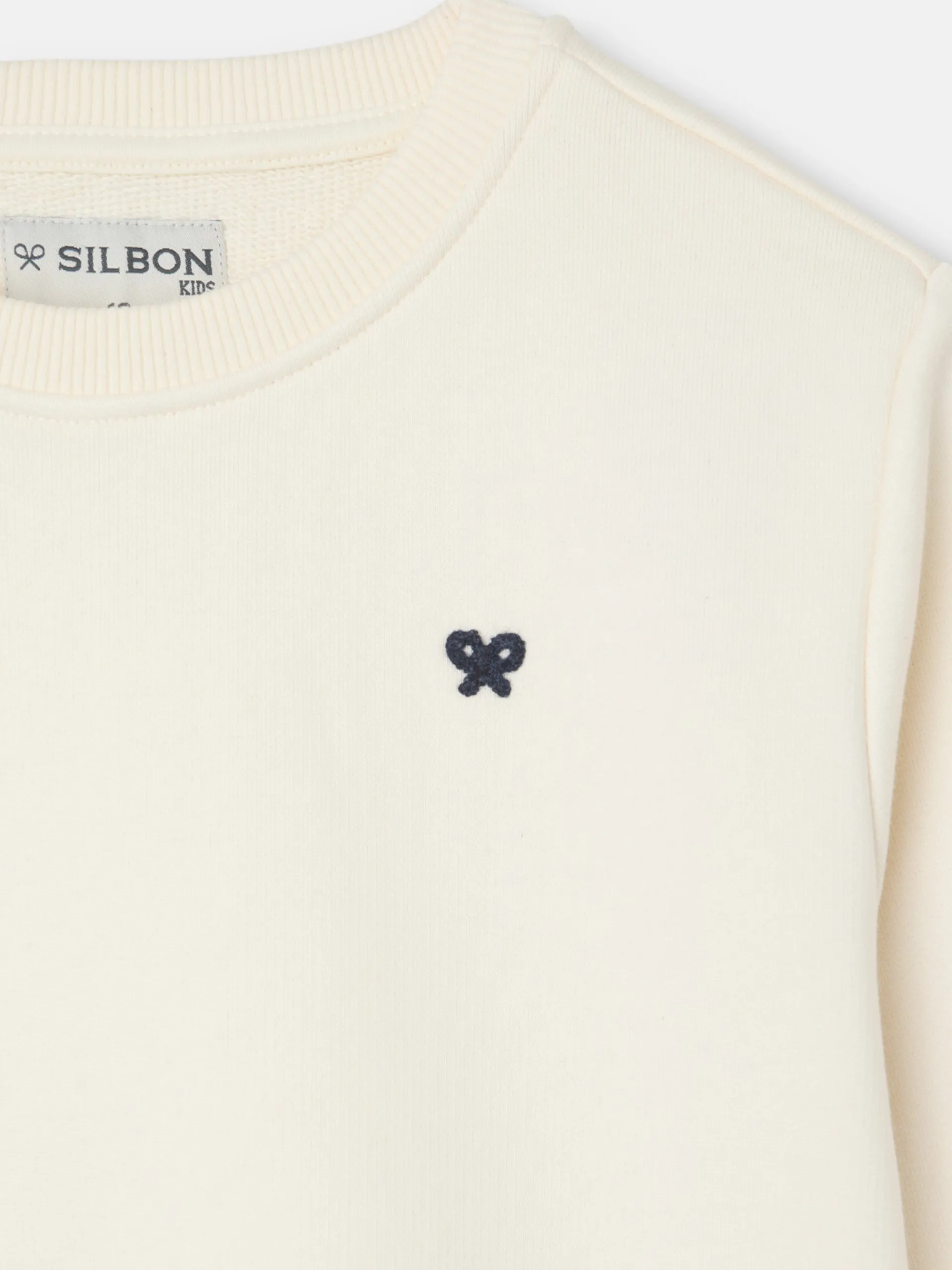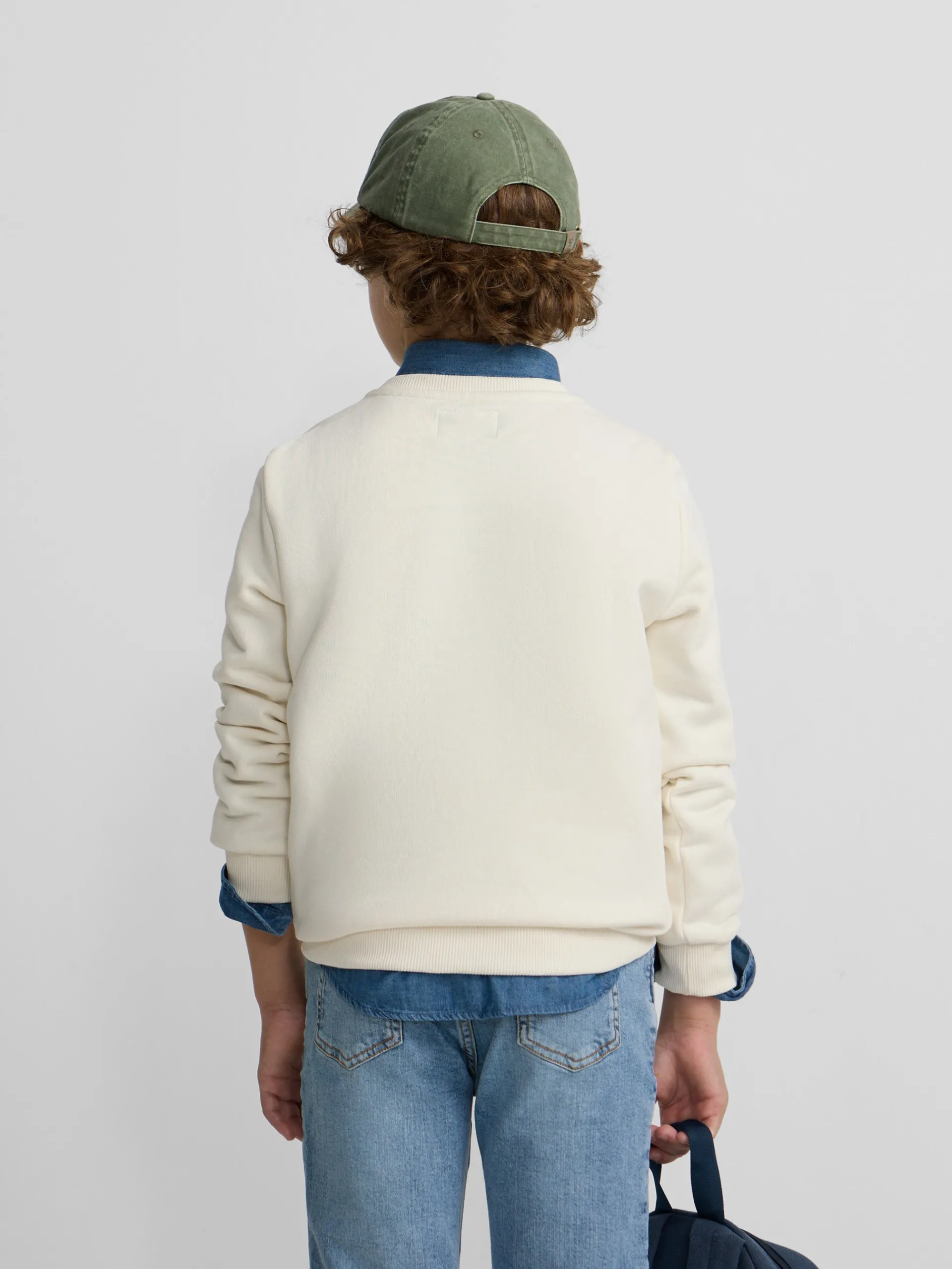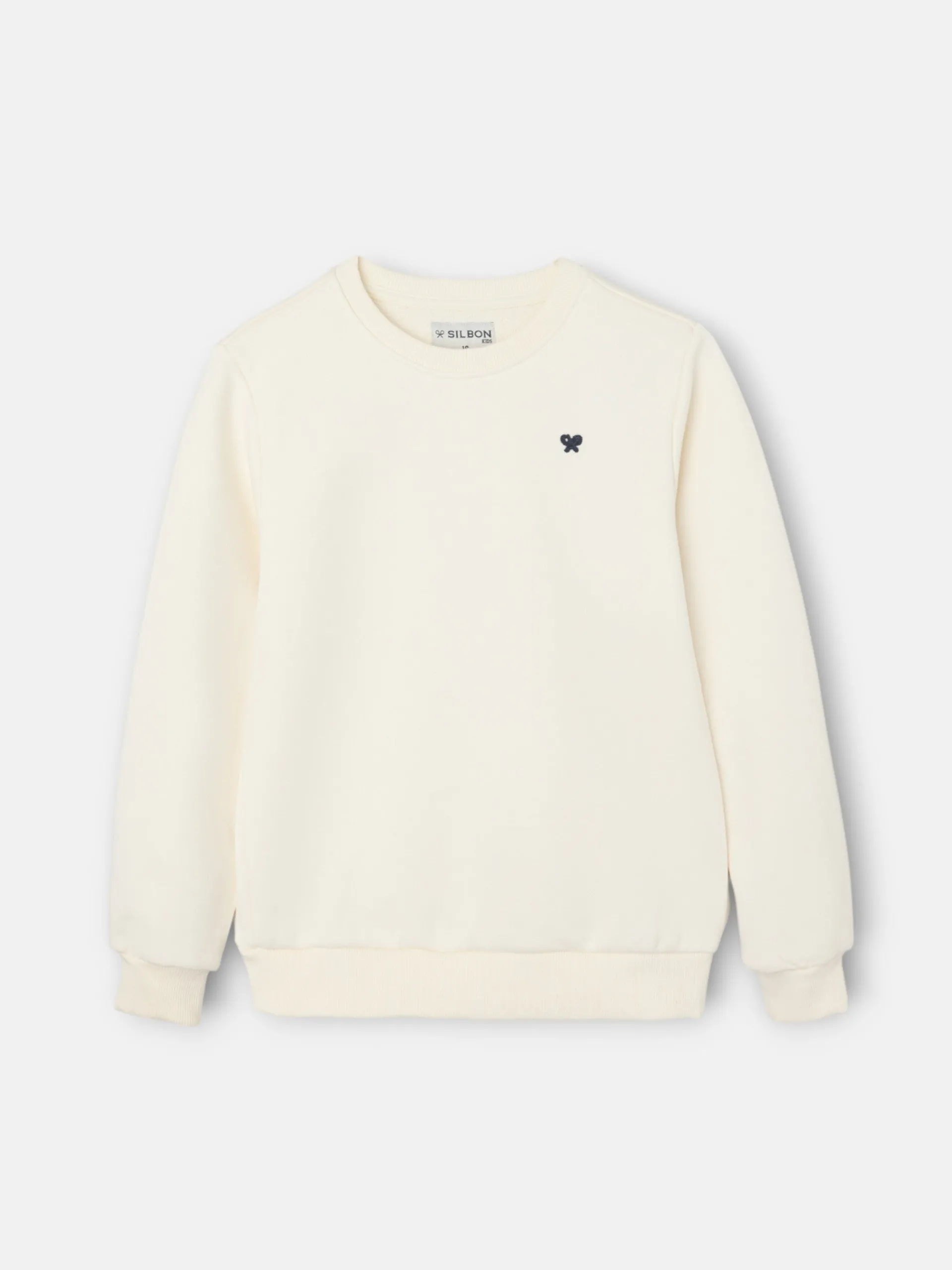 Sudadera kids lisa color crema confeccionada en 100% algodón de corte Regular fit. Presenta cuello redondo y manga larga. Cuenta con mini raquetas bordadas en el torso. Fabricada en Portugal.