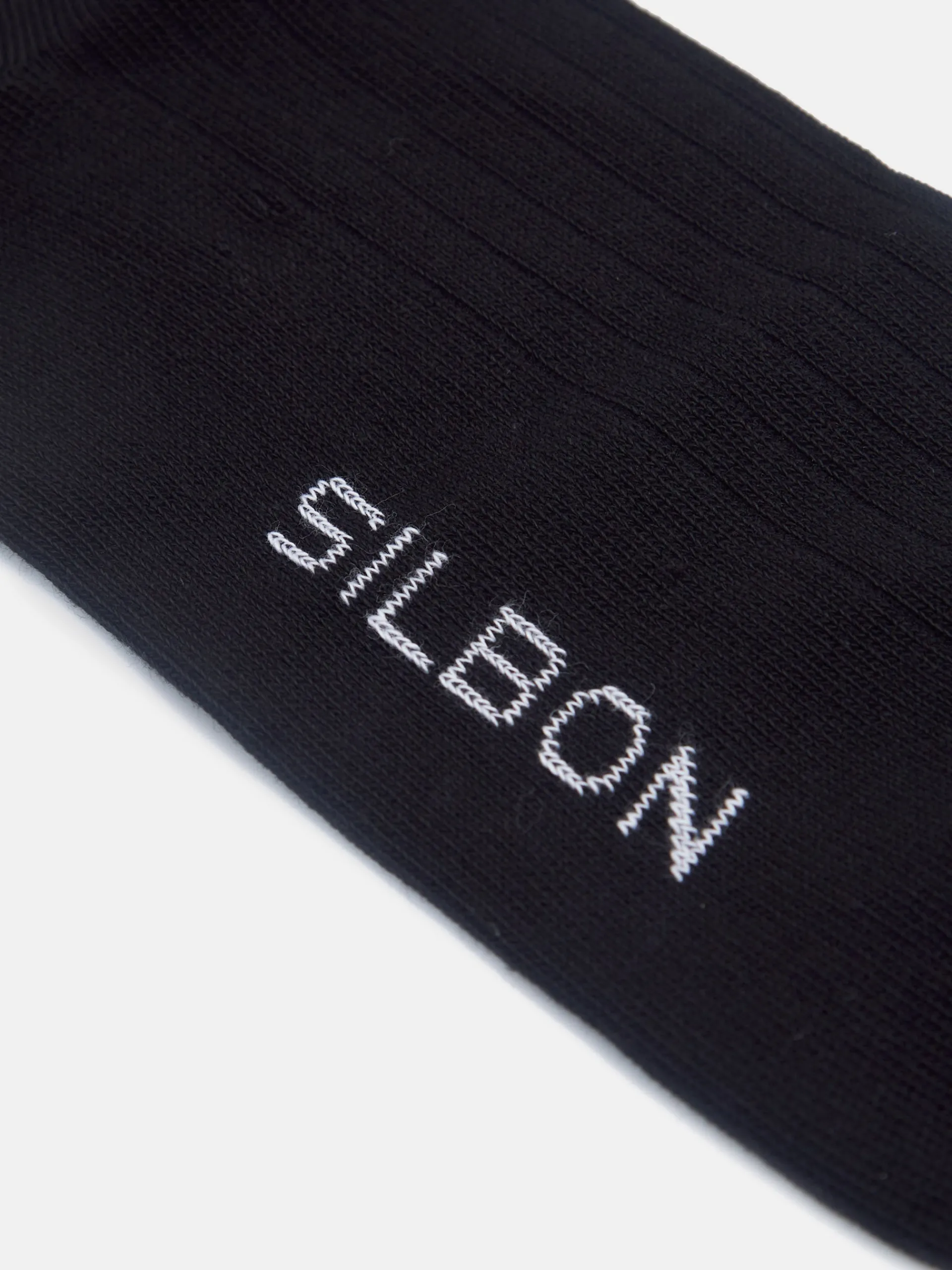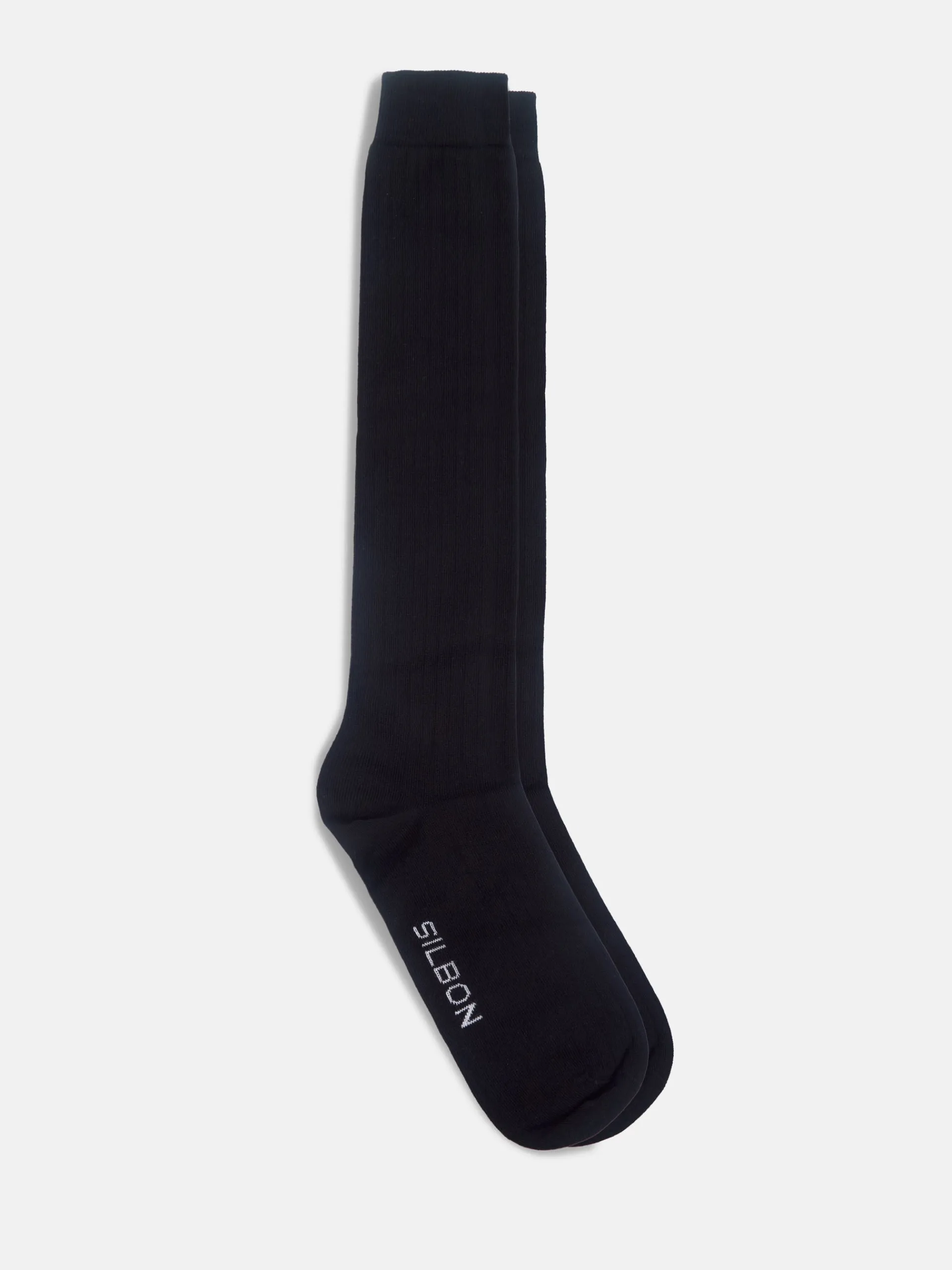 Calcetín tailoring de color negro confeccionado en mezcla de algodón. La caña del calcetín tiene 50 cm de altura. Fabricado en Portugal.