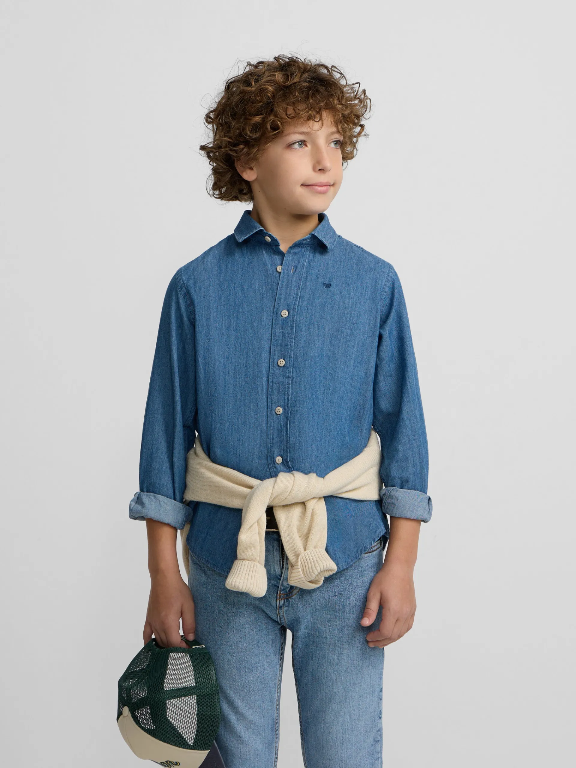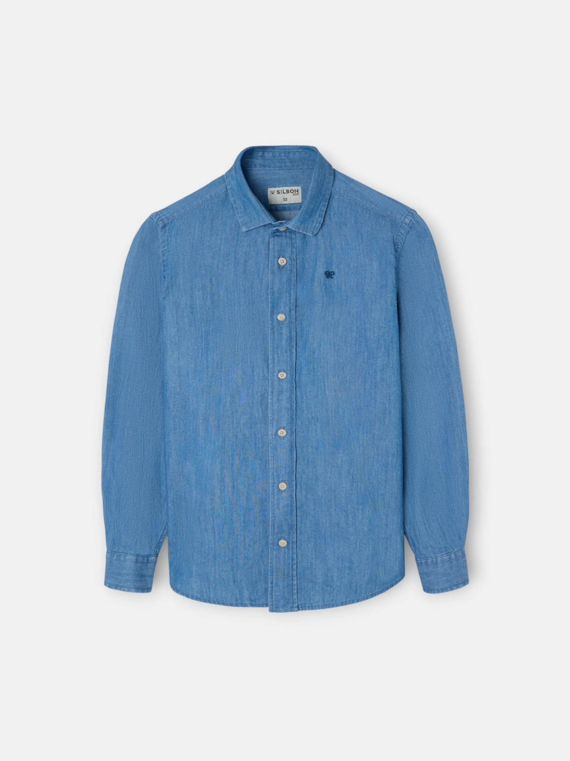 Camisa sport kids clásica denim color azul claro confeccionada en 100% algodón BCI de corte Regular fit. Presenta cuello cutaway y manga larga de puño con botones. Cuenta con raquetas bordadas en el torso.