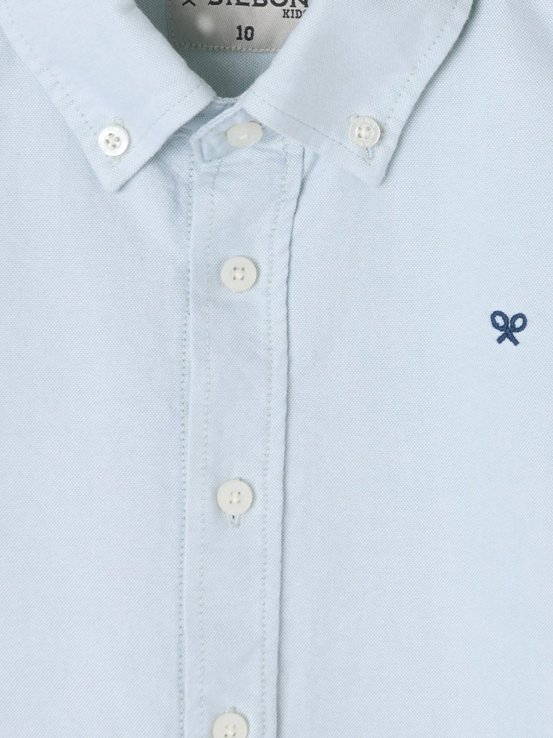 Camisa sport verde confeccionada en 100% algodón BCI de corte Regular fit. Presenta cuello button down, cierre con botones personalizados y manga larga de puño con botones. Cuenta con raquetas bordadas en el torso.