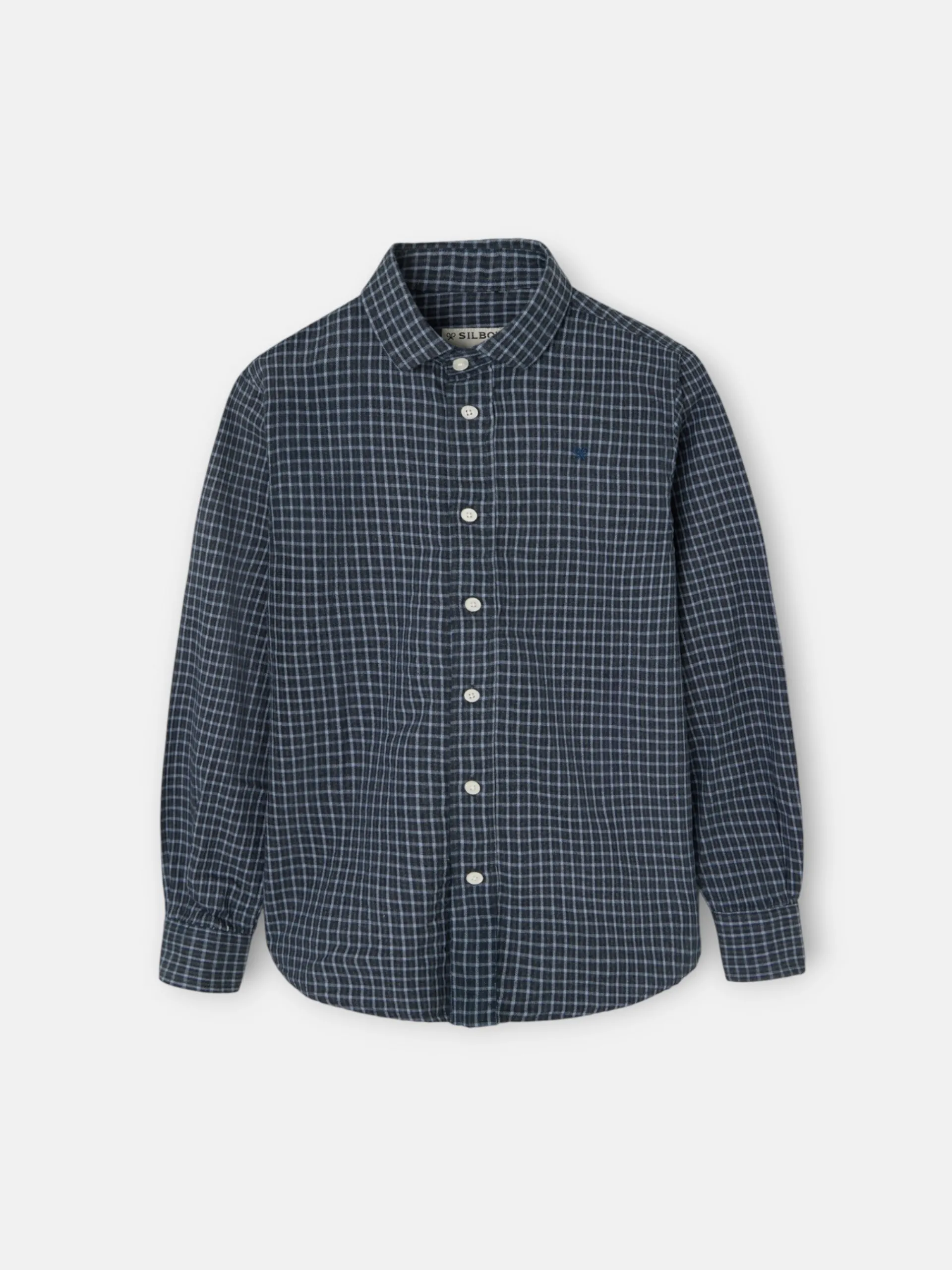 Camisa sport kids warm cuadro dark navy confeccionada en 100% algodón BCI de corte Regular Fit. Presenta cuello clásico, cierre con botones personalizados y manga larga de puño con botones. Cuenta con raquetas bordadas a contraste en color azul marino en el torso.