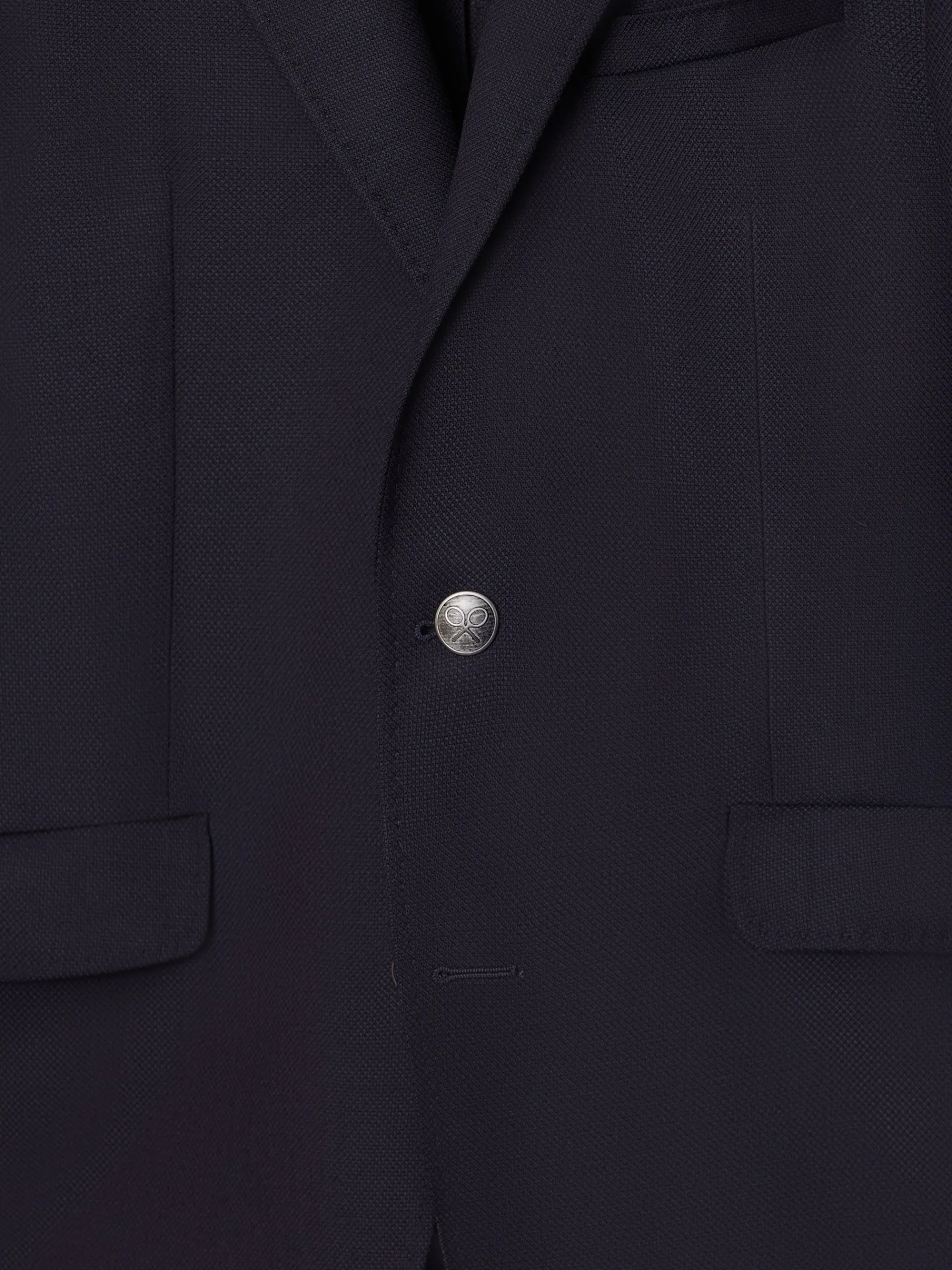 Americana clásica confeccionada en 100% lana de corte Tailored fit. Presenta cierre recto con botones metálicos personalizados, bolsillos delanteros de solapa, bolsillo insertado en torso y mangas acabadas con ojales y botones realizables. Cuenta con cuello con solapas de muesca, hombreras y no contiene forro. Fabricado en Portugal.