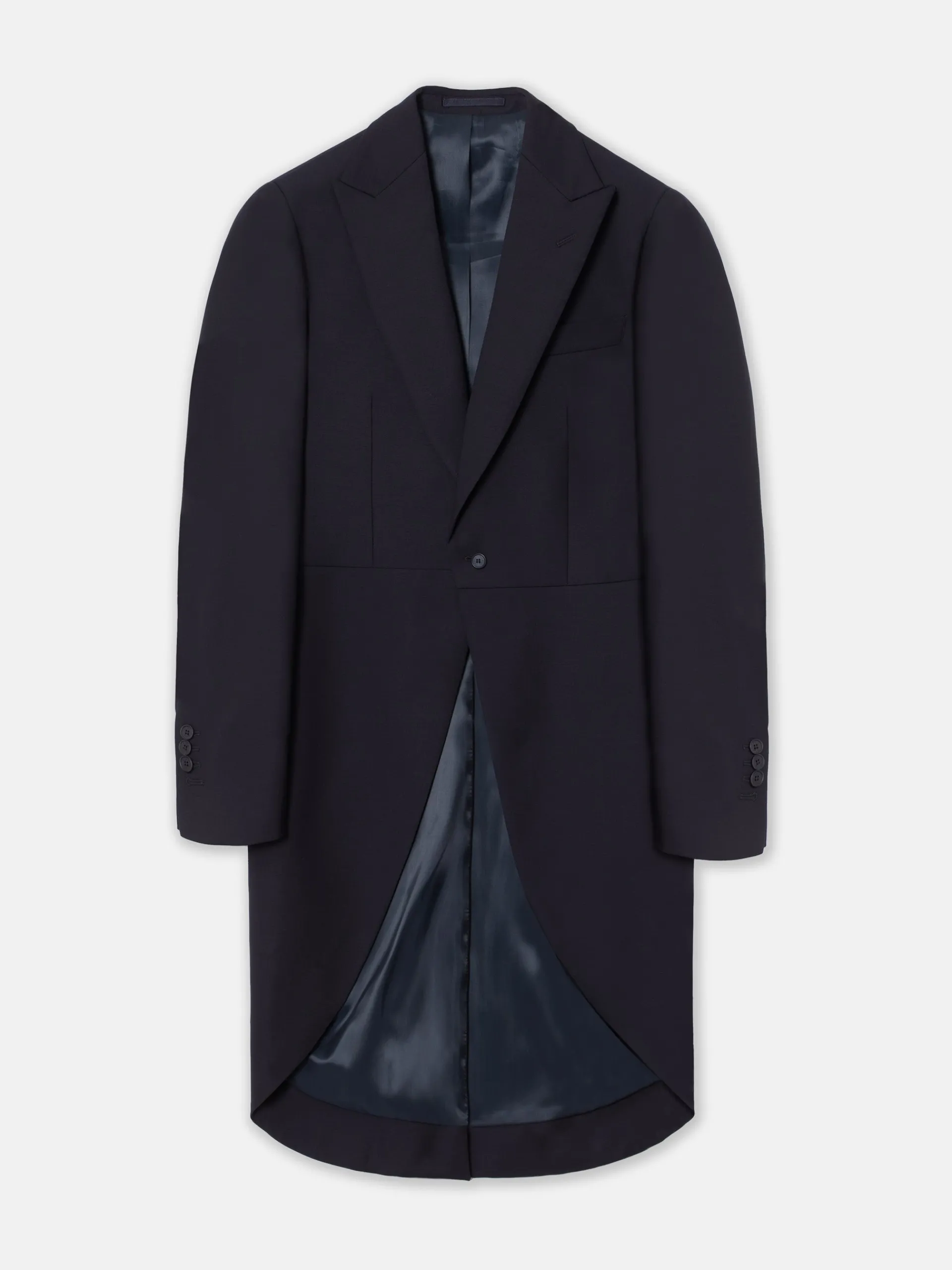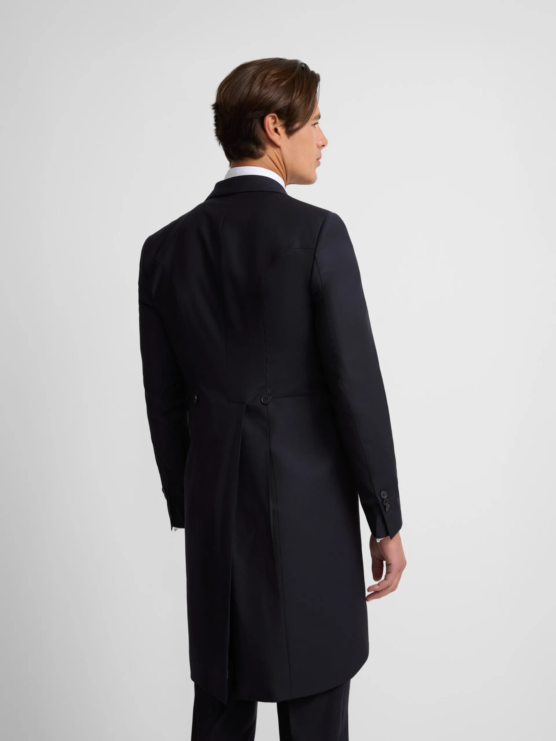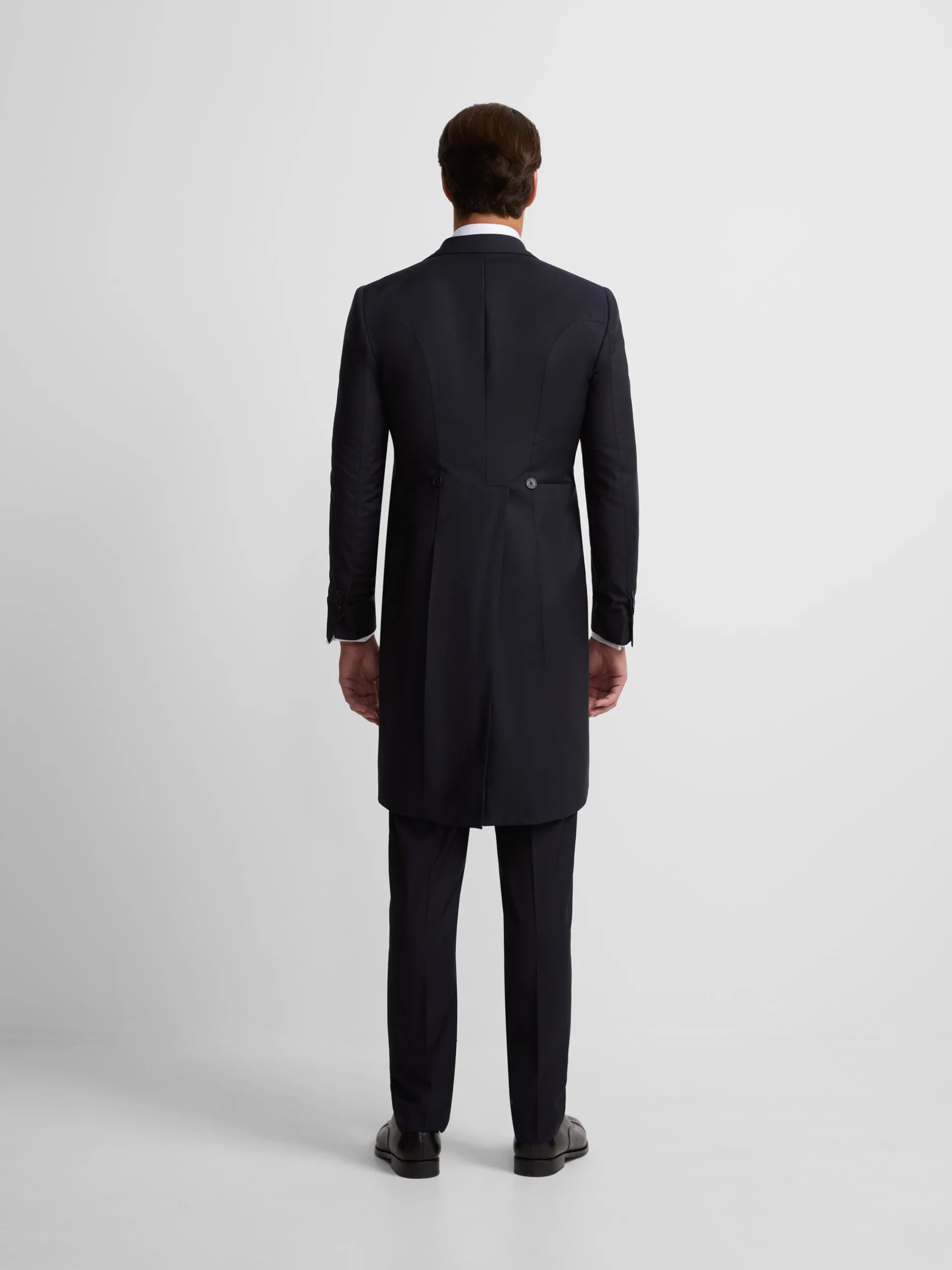 Levita chaqué strech confeccionada en mezcla de lana y elastano para aportar ligereza y comfort. Presenta patrón Slim fit de corte recto de cierre con botón personalizado y bolsillo insertado en pecho. Cuenta con solapas de punta de lanza, forro interior personalizado, hombreras y mangas acabadas con ojales y botones realizables personalizados. Fabricado en Portugal.