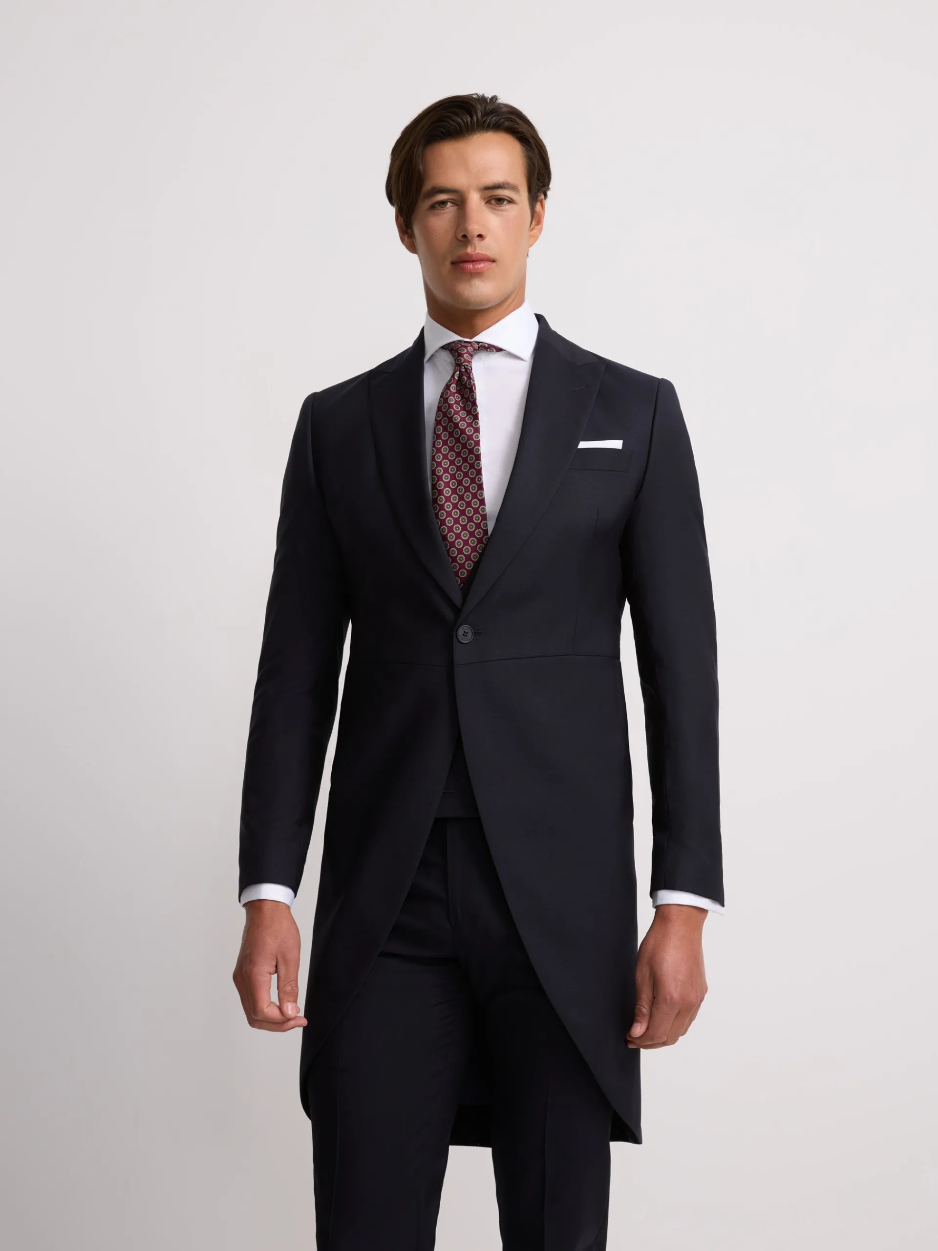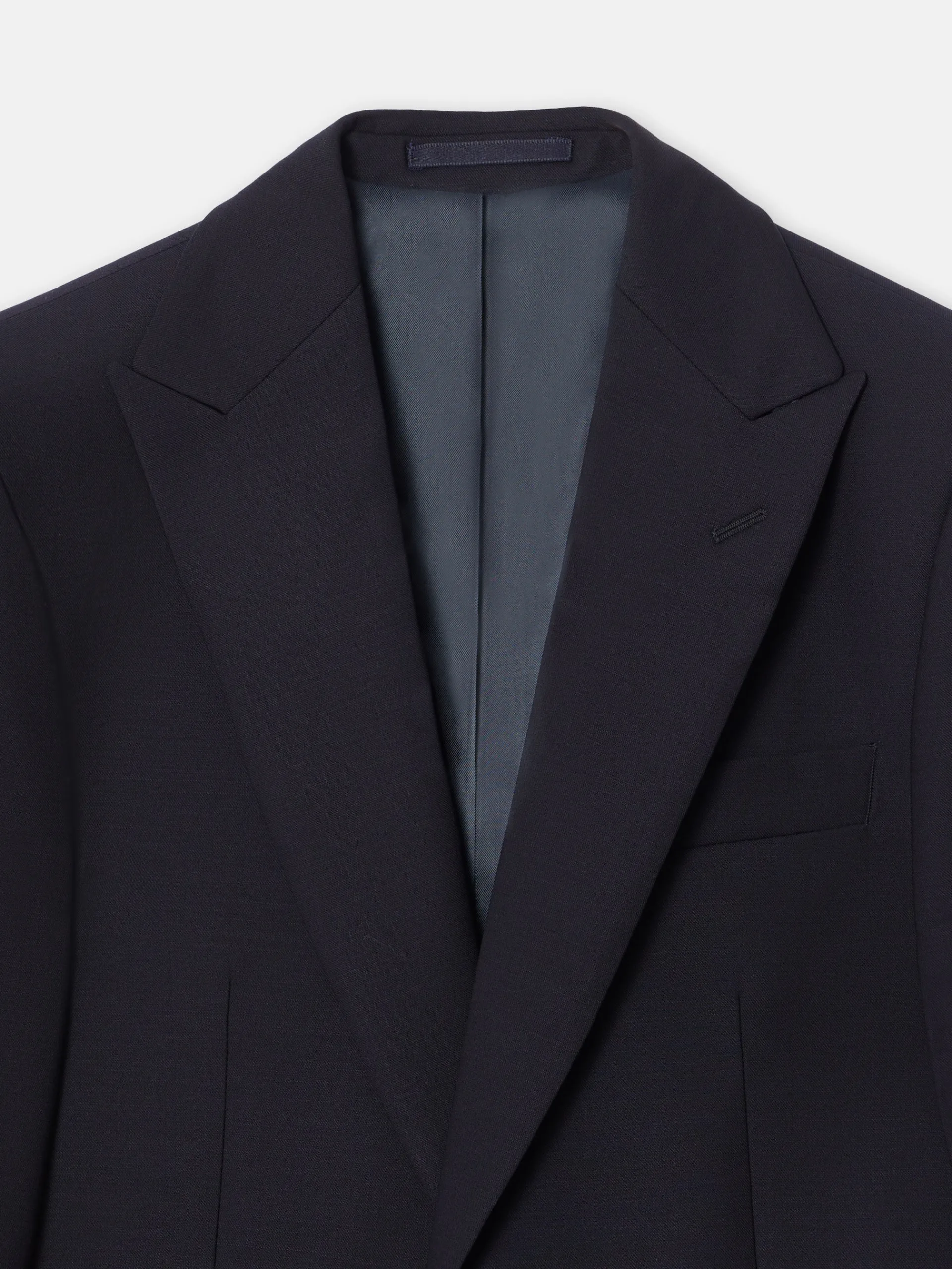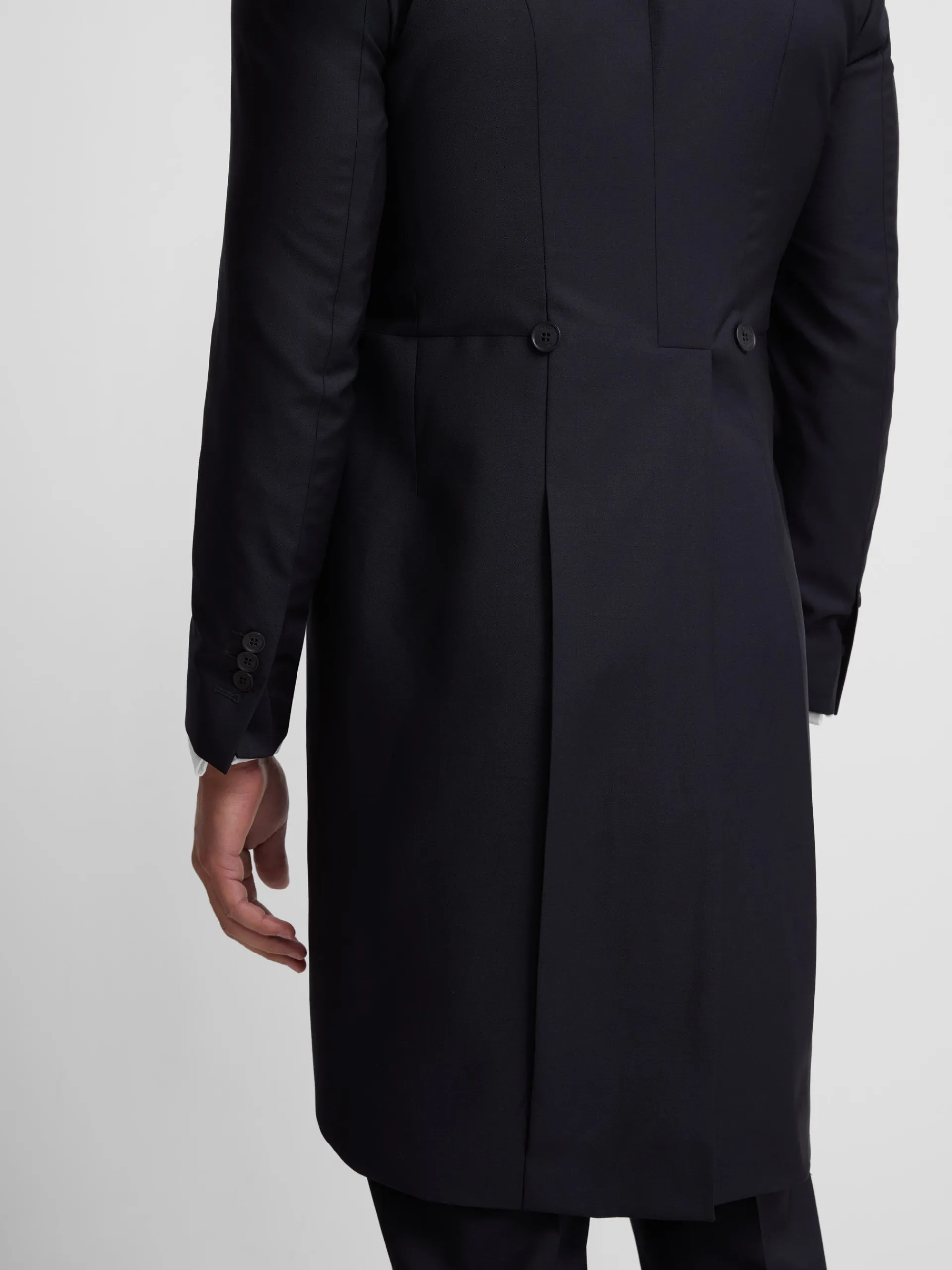 Levita chaqué strech confeccionada en mezcla de lana y elastano para aportar ligereza y comfort. Presenta patrón Slim fit de corte recto de cierre con botón personalizado y bolsillo insertado en pecho. Cuenta con solapas de punta de lanza, forro interior personalizado, hombreras y mangas acabadas con ojales y botones realizables personalizados. Fabricado en Portugal.