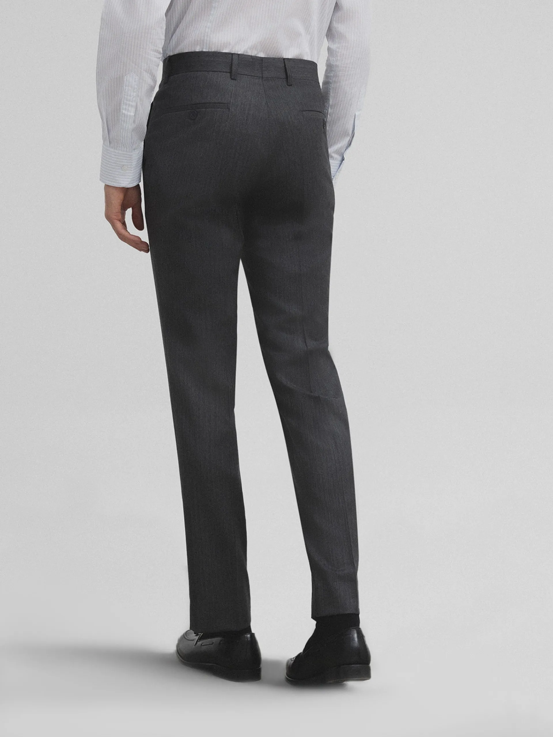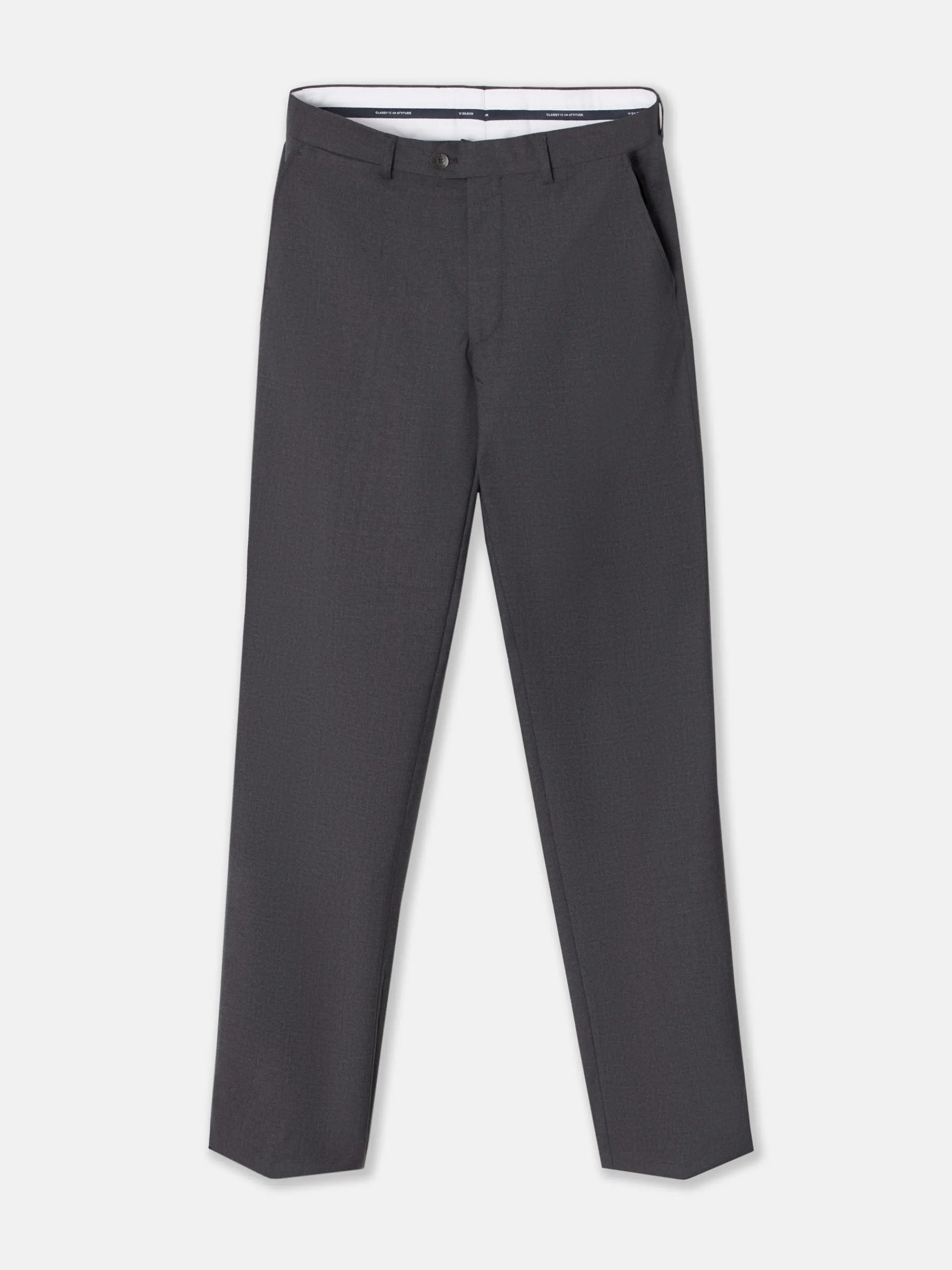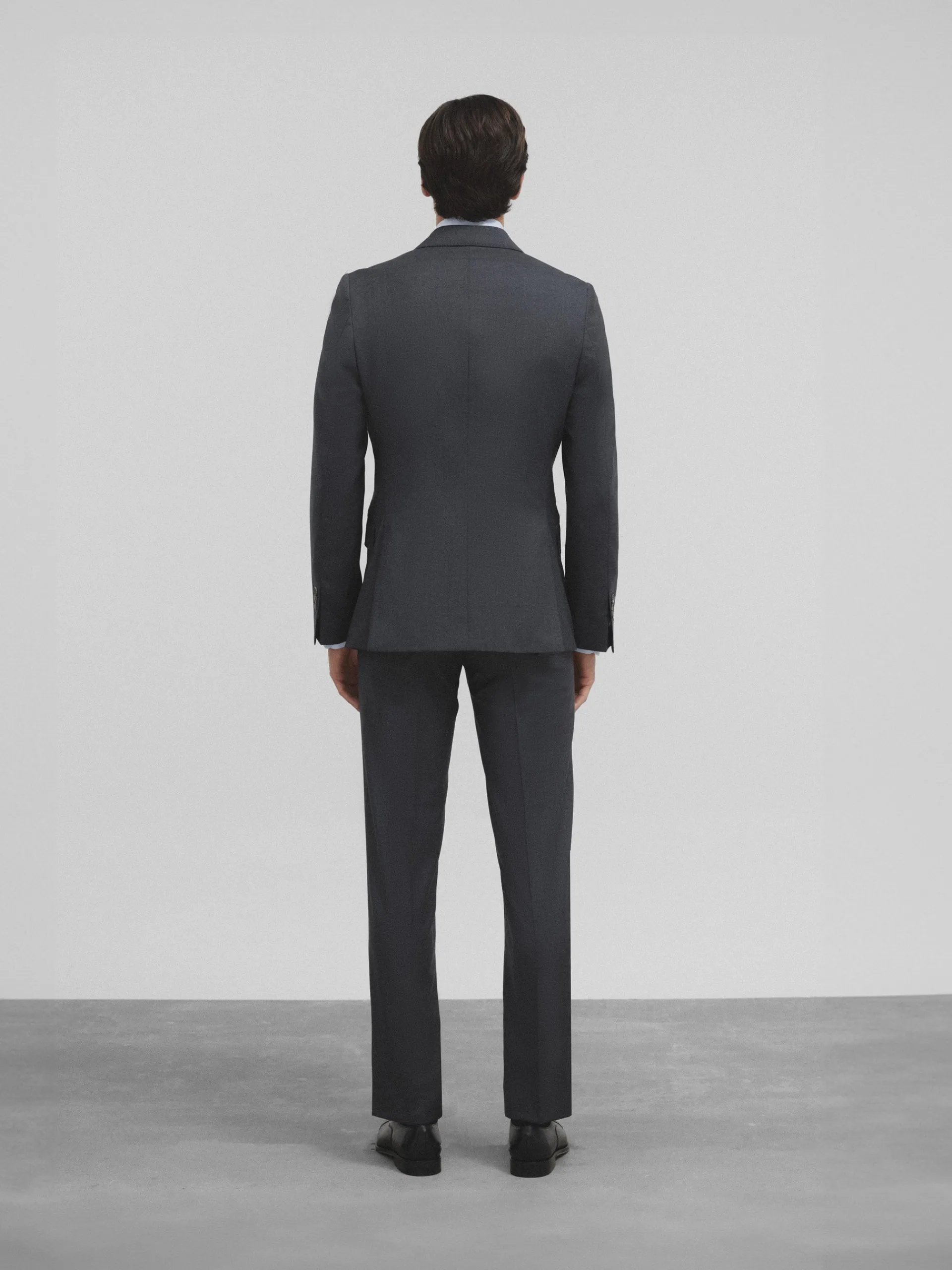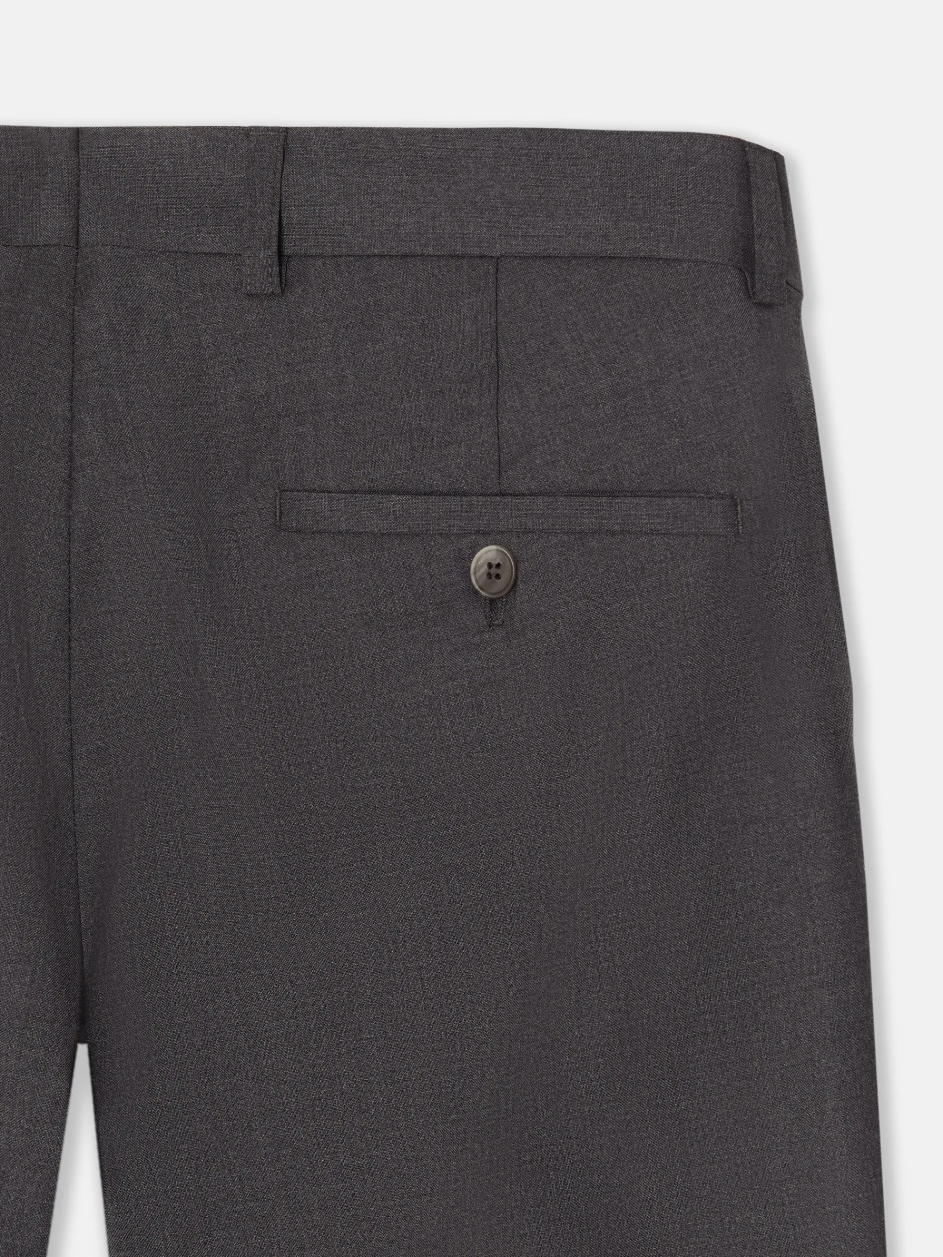 Pantalón de traje cruzado strech confeccionado en 100% lana. Presenta un corte clásico con cierre prolonga con botón personalizado y cremallera, bolsillos laterales y bolsillos insertados en trasero. Cuenta con trabillas y bajo sin vuelta. Fabricado en Portugal.