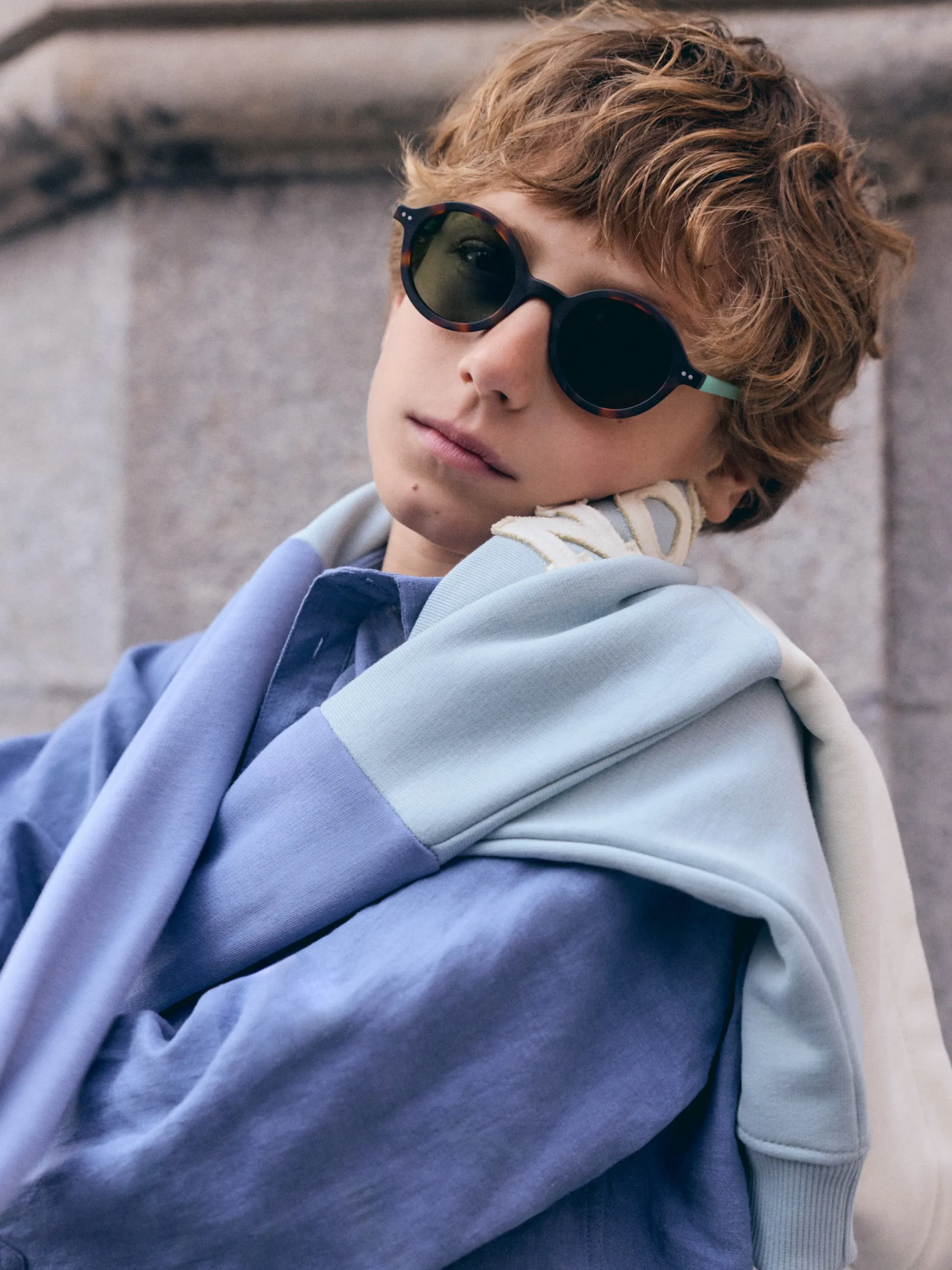 El modelo para niño Mó Deriva de la colección de Kids de Mó x Silbon es una gafa sofisticada y atemporal. Su montura redonda hecha de acetato color carey combina con sus lentes polarizadas y es un modelo muy favorecedor para cualquier top de rostro. Sus varrillas en color verde claro tienen pequeños detalles metálicos con logo que completan este divertido diseño.