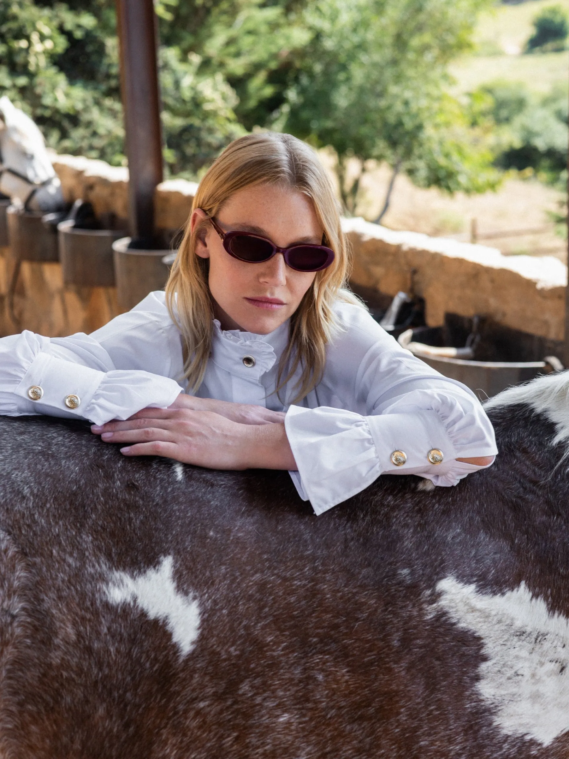 El modelo Mó Aurale burdeos de la colección de Woman de Mo x Silbon es sencilla y divertida. Su forma ovalada encaja con todo tipo de rostros. En las varillas tienen unos pequeños detalles metálicos con el logo de Mó x Silbon.