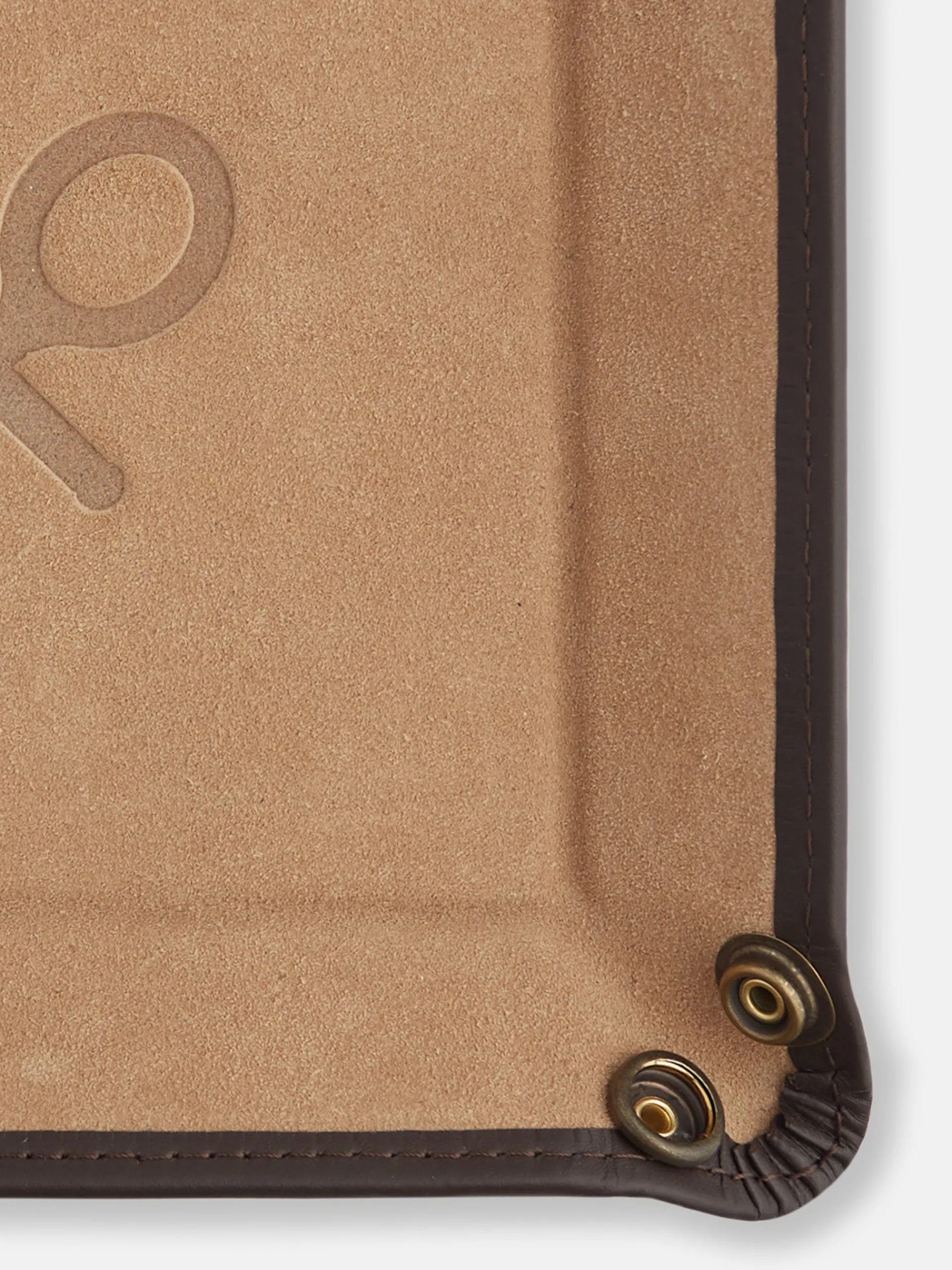 Vaciabolsillos confeccionado en 100% piel de color marrón. Presenta raquetas grabadas en bajo relieve. Cuenta con cierre de botones a presión, se pueden soltar los botones y obtener una forma plana. Fabricado en España.