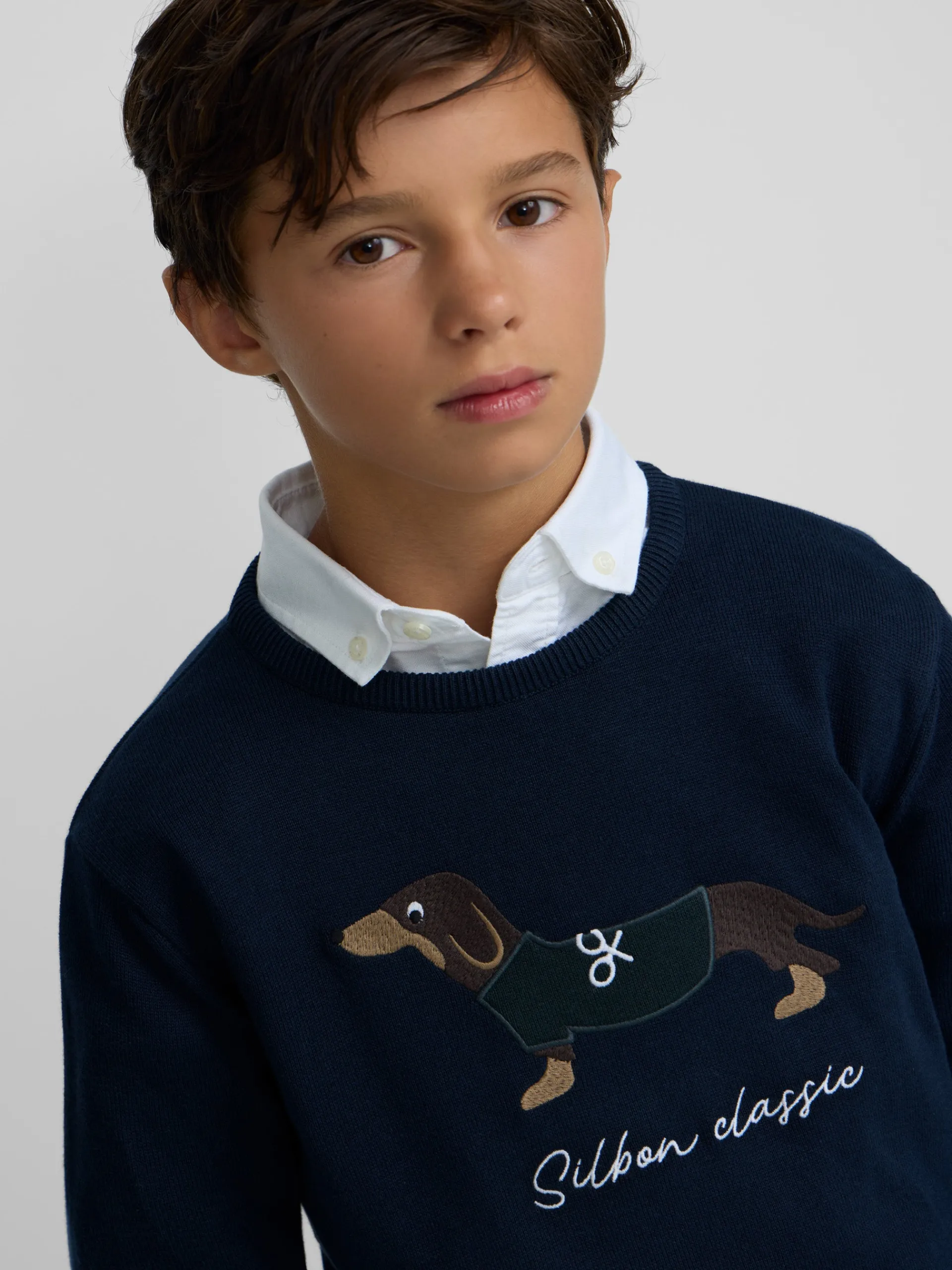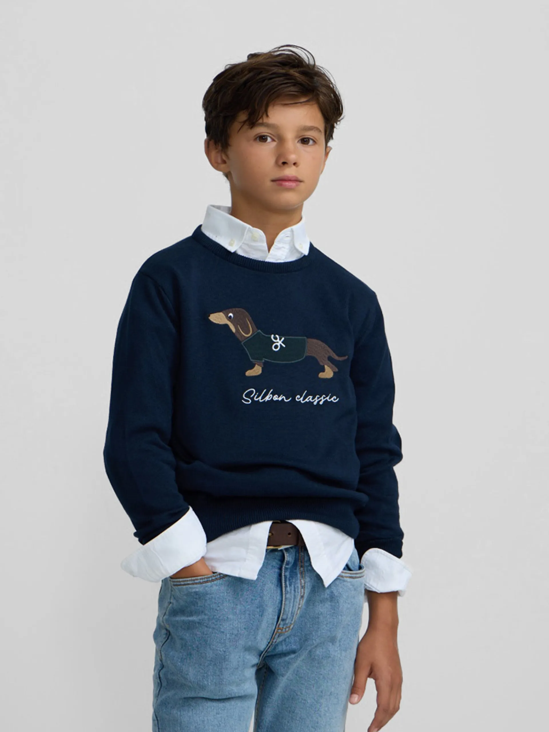 Jersey kids dog azul confeccionado en 100% algodón. Fabricado en Portugal.