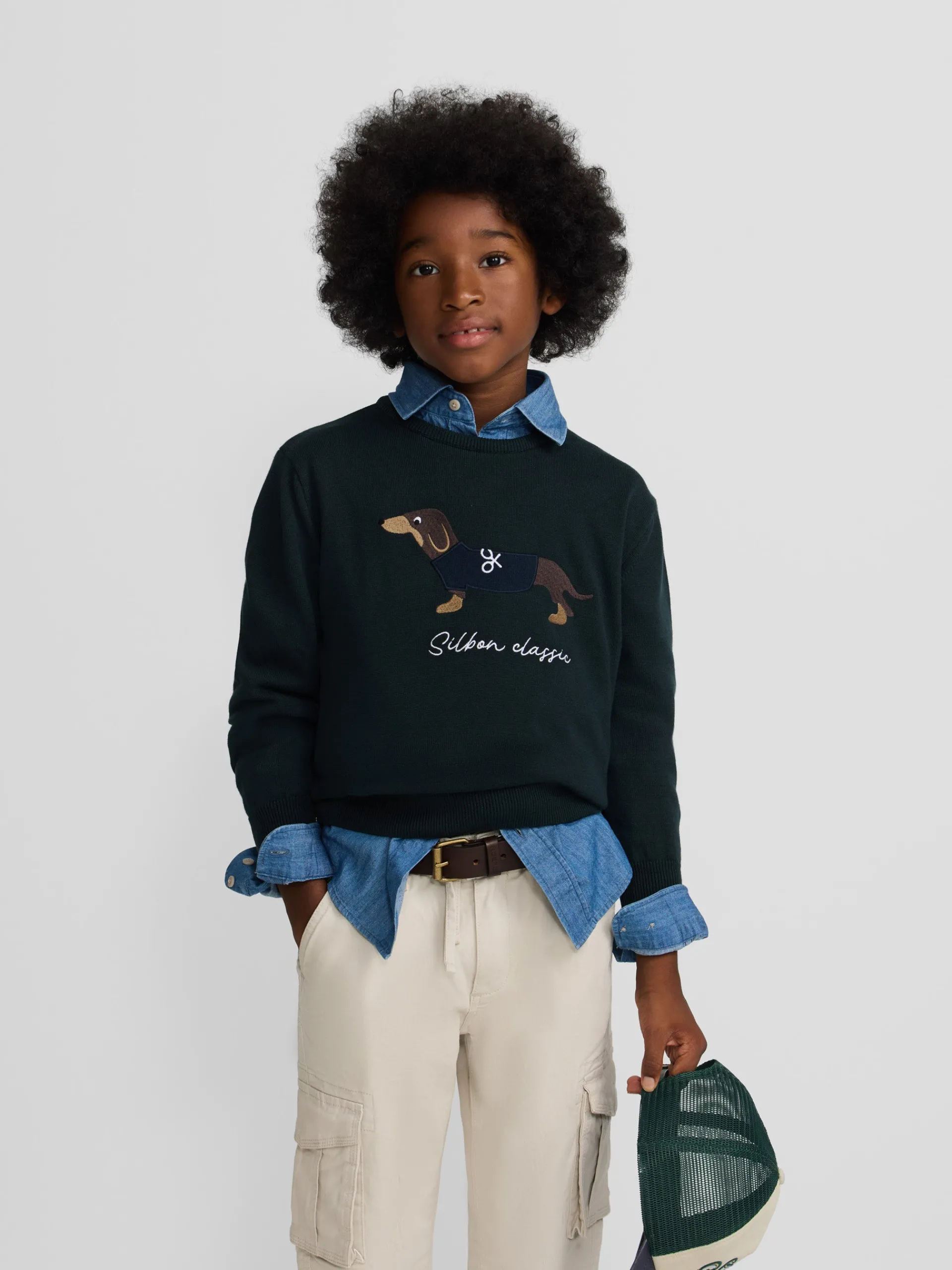 Jersey kids dog verde confeccionado en 100% algodón. Fabricado en Portugal.