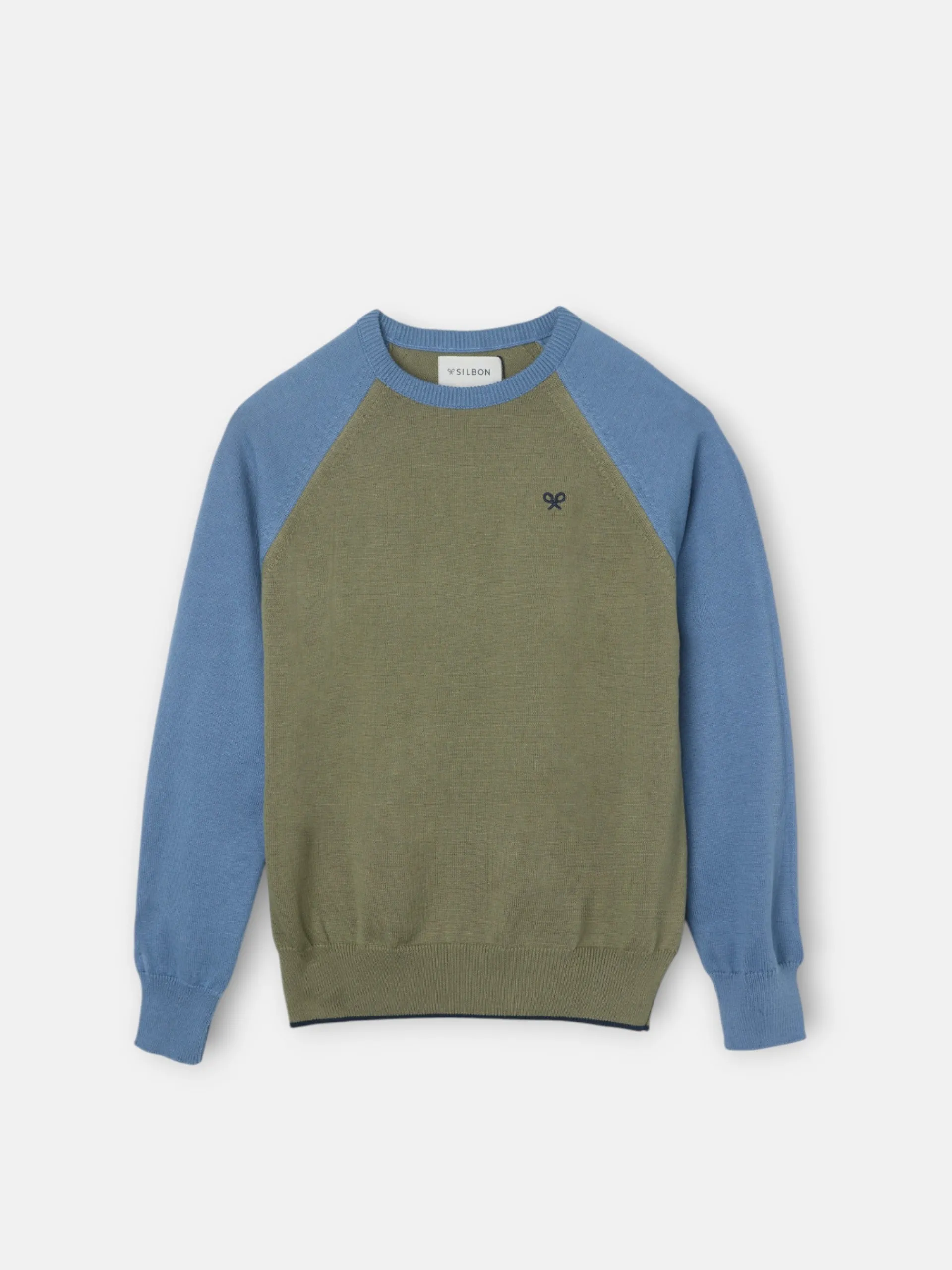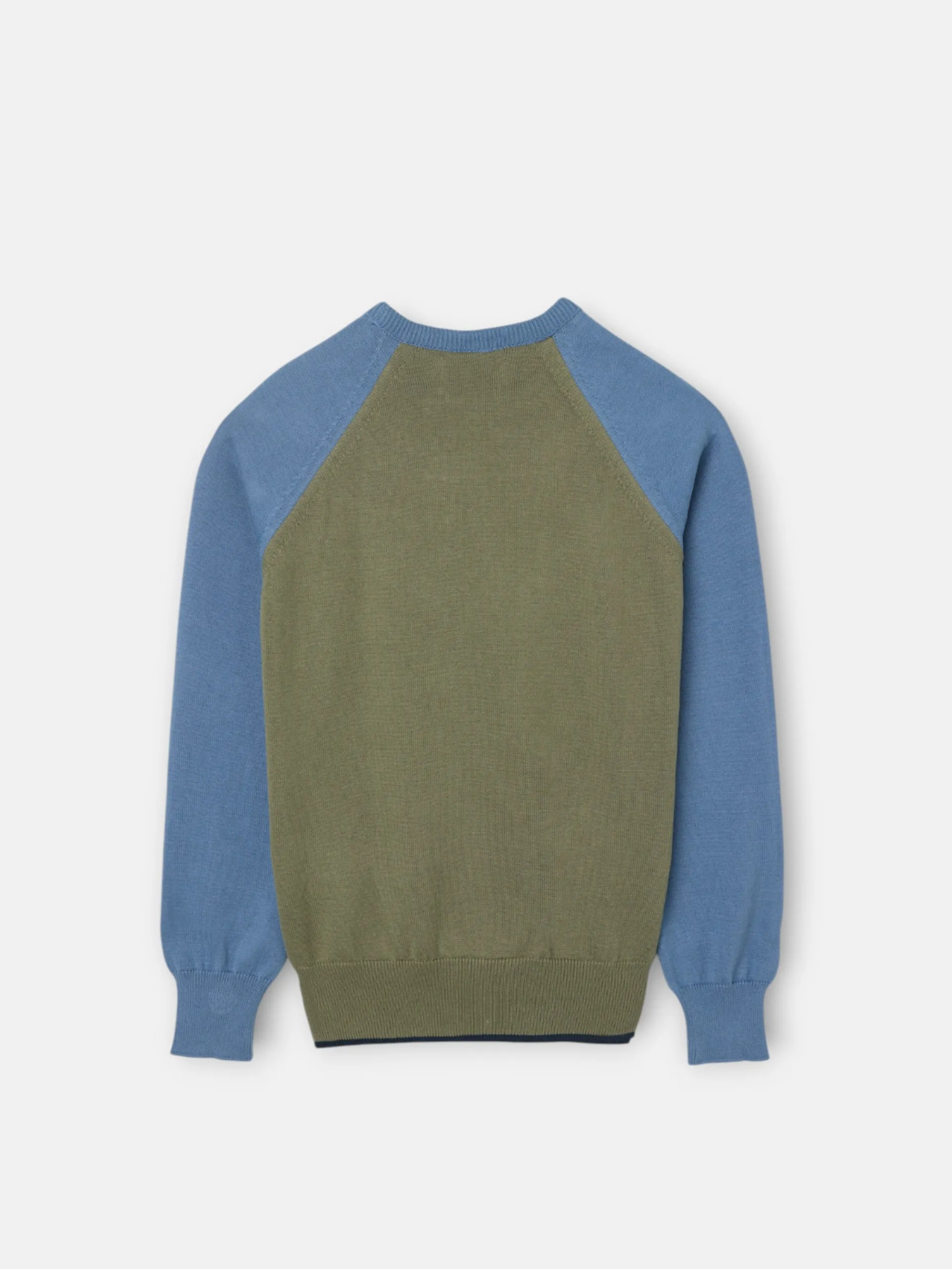 Jersey kids verde confeccionado en 100% algodón. Presenta cuello redondo y manga larga a contraste en color celeste. Cuenta con detalle de raquetas bordadas en el torso. Fabricado en Portugal.