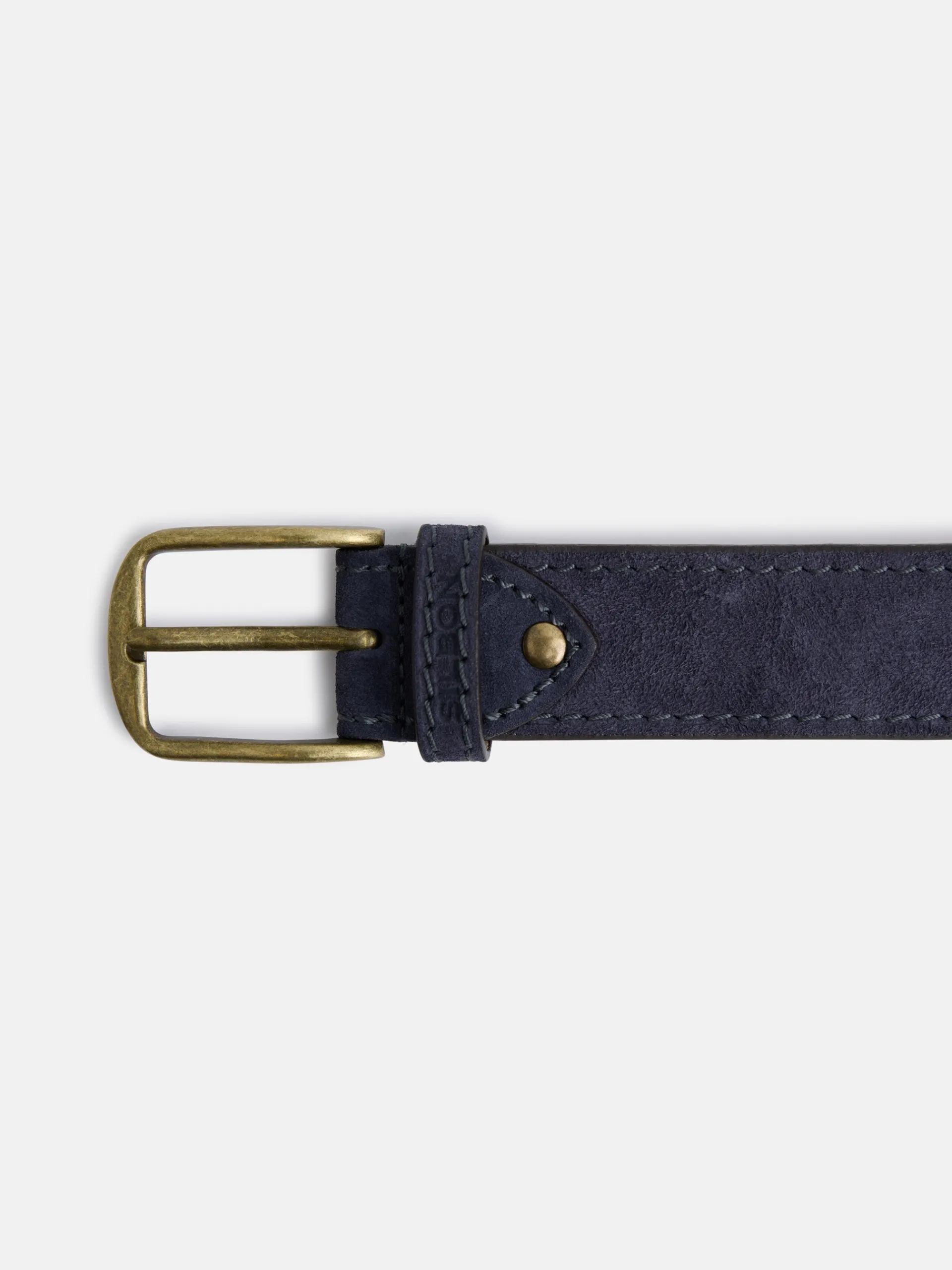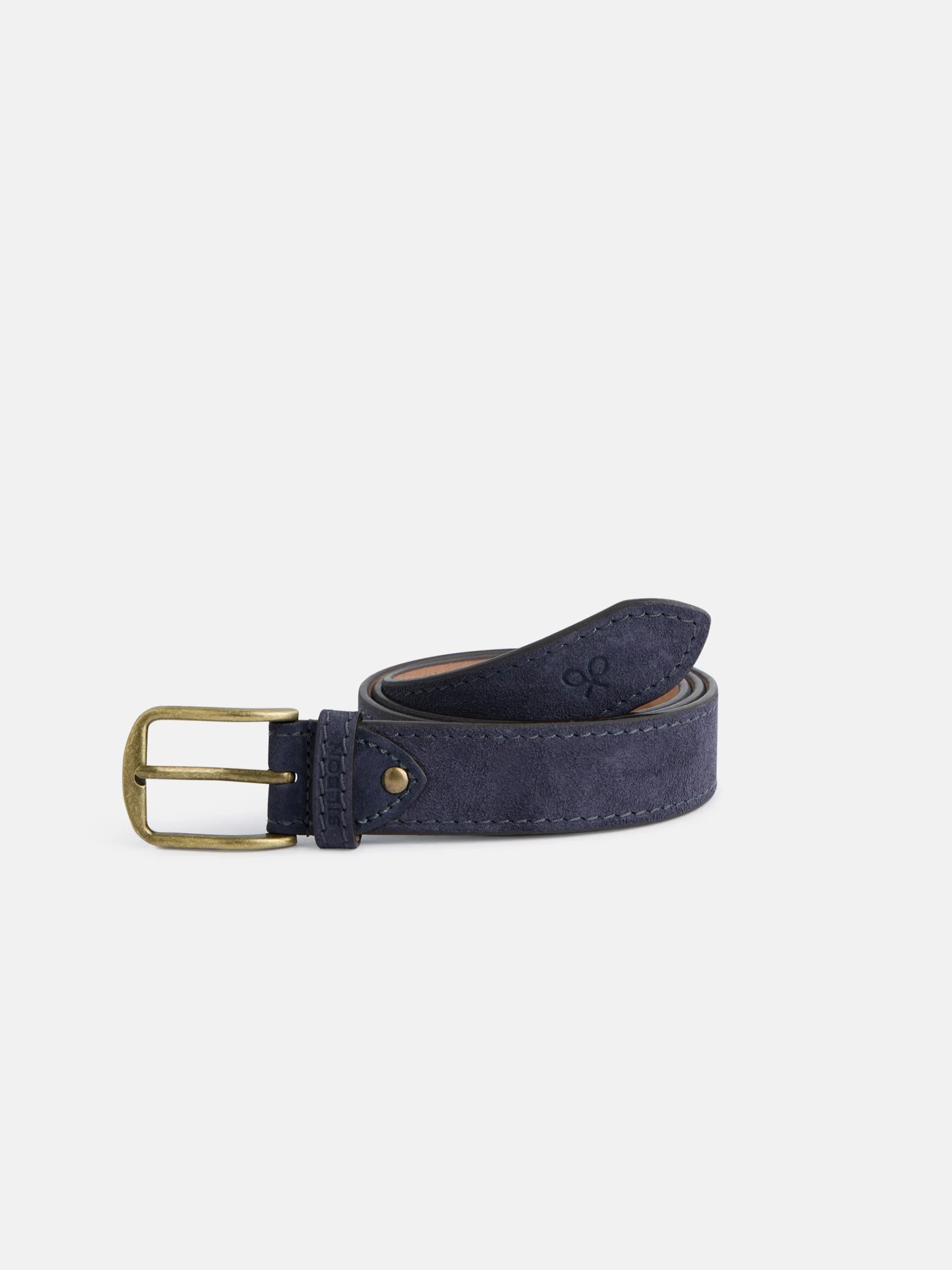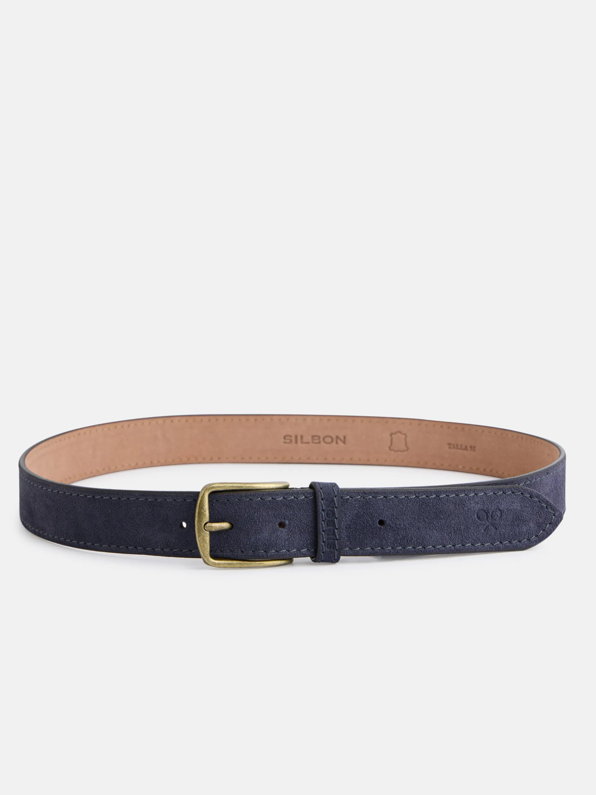Cinturón confeccionado en 100% piel ante. Presenta cierre con hebilla y trabilla personalizada. Cuenta con detalle de pespunte al tono. Fabricado en España.