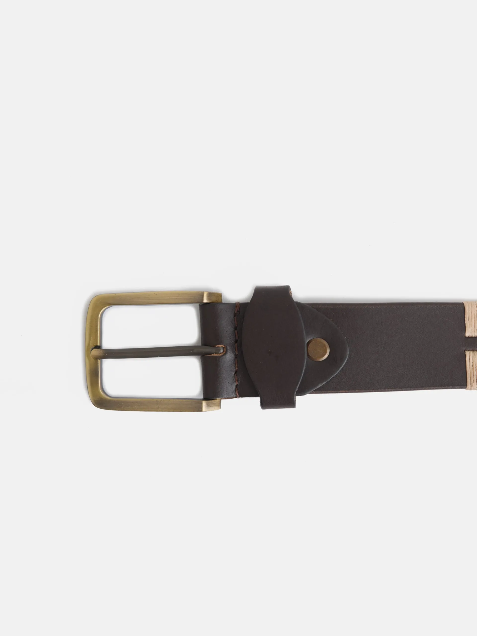 Cinturón de piel argentino en tonos beige y marrón confeccionado en 100% piel. Presenta hebilla metálica en color oro viejo y grabado a fuego de raquetas en el extremo.