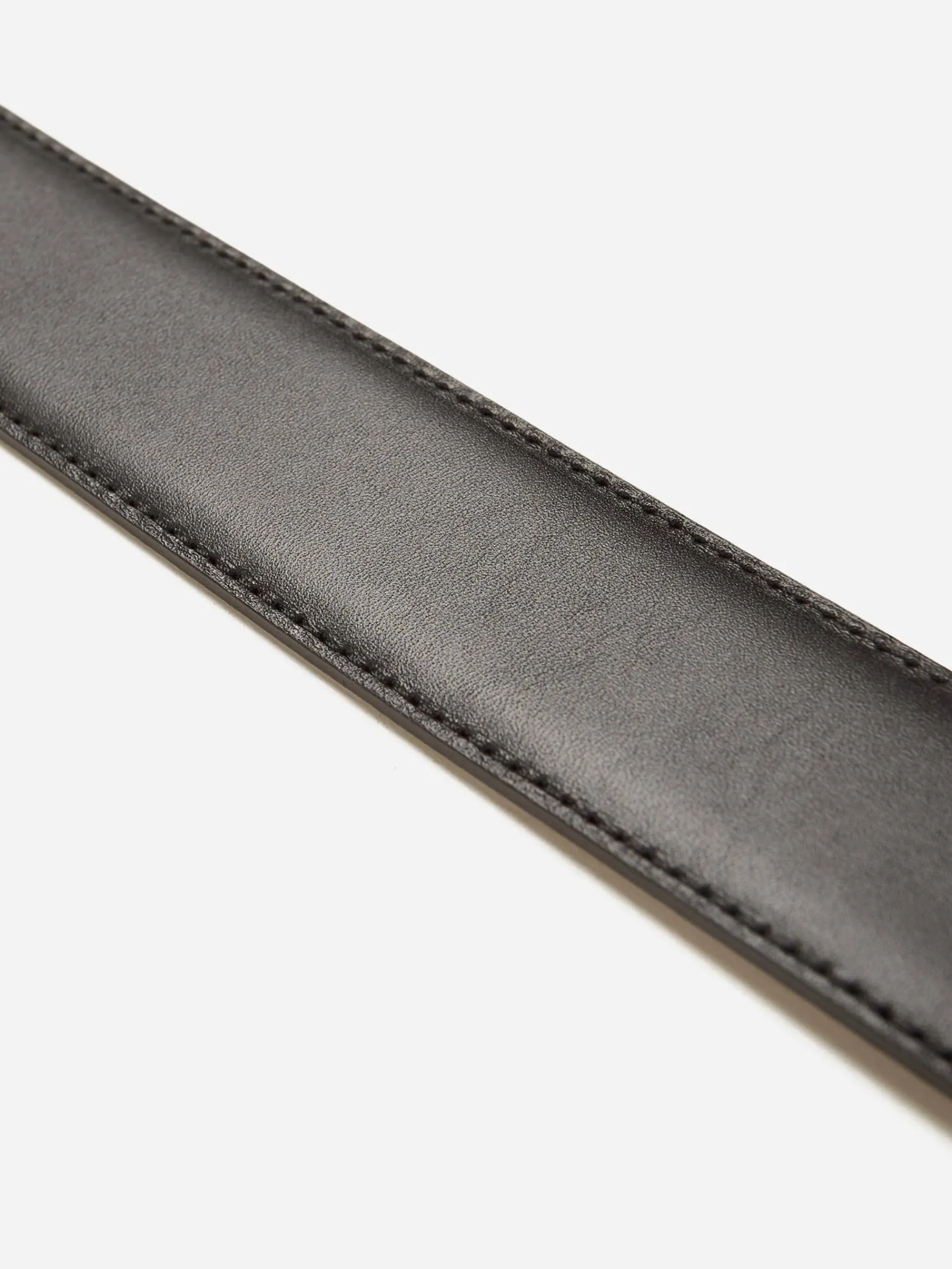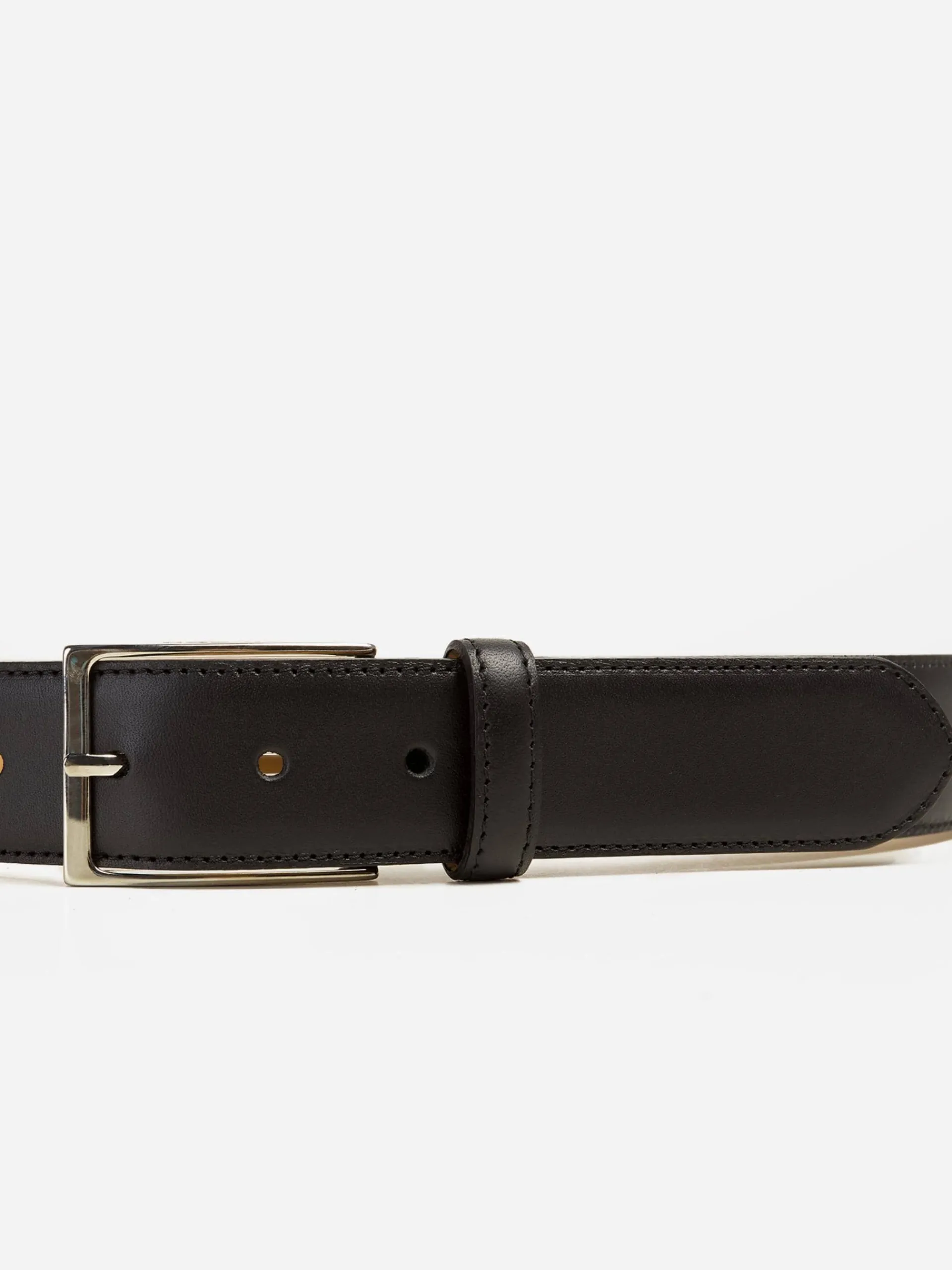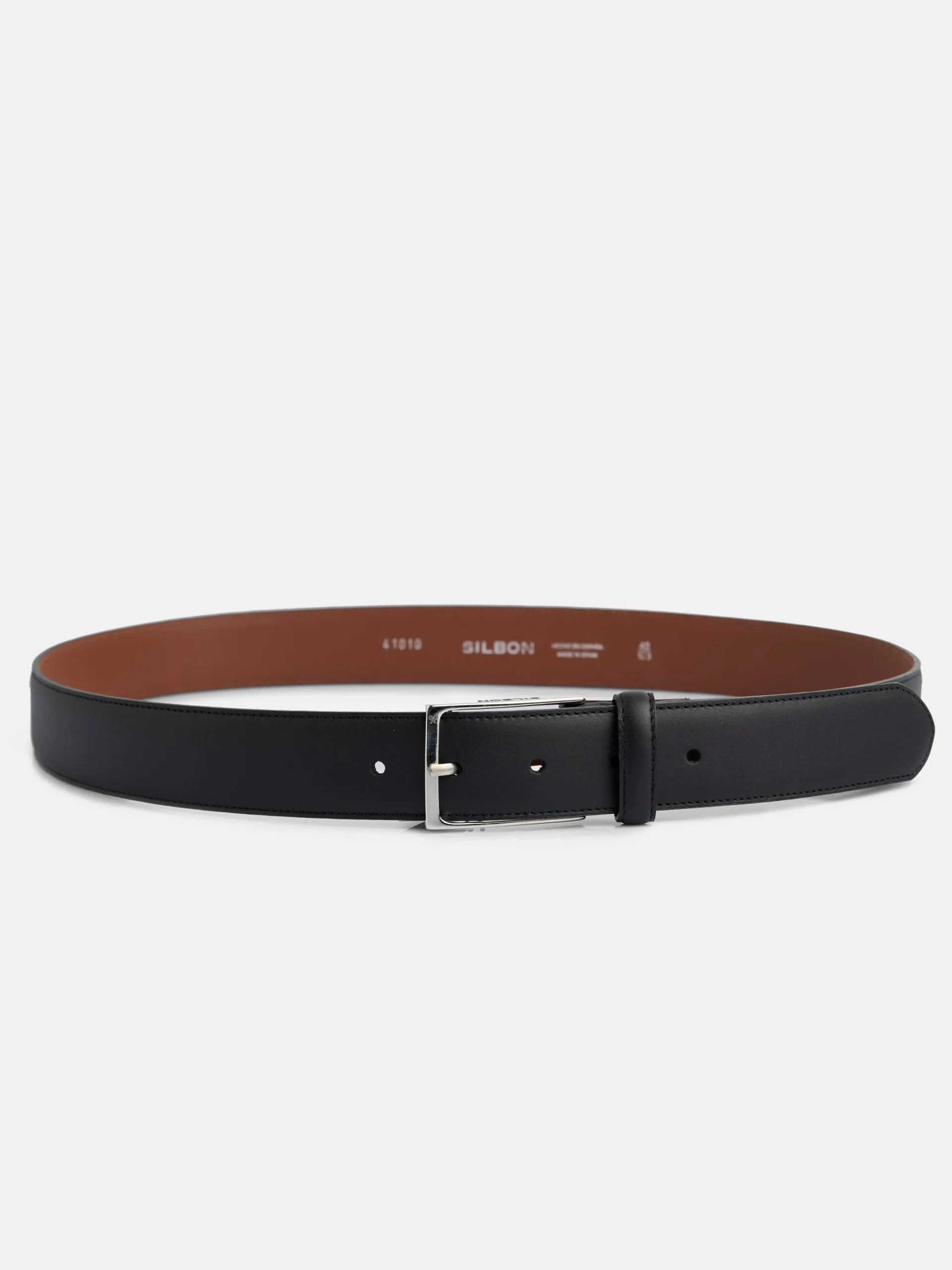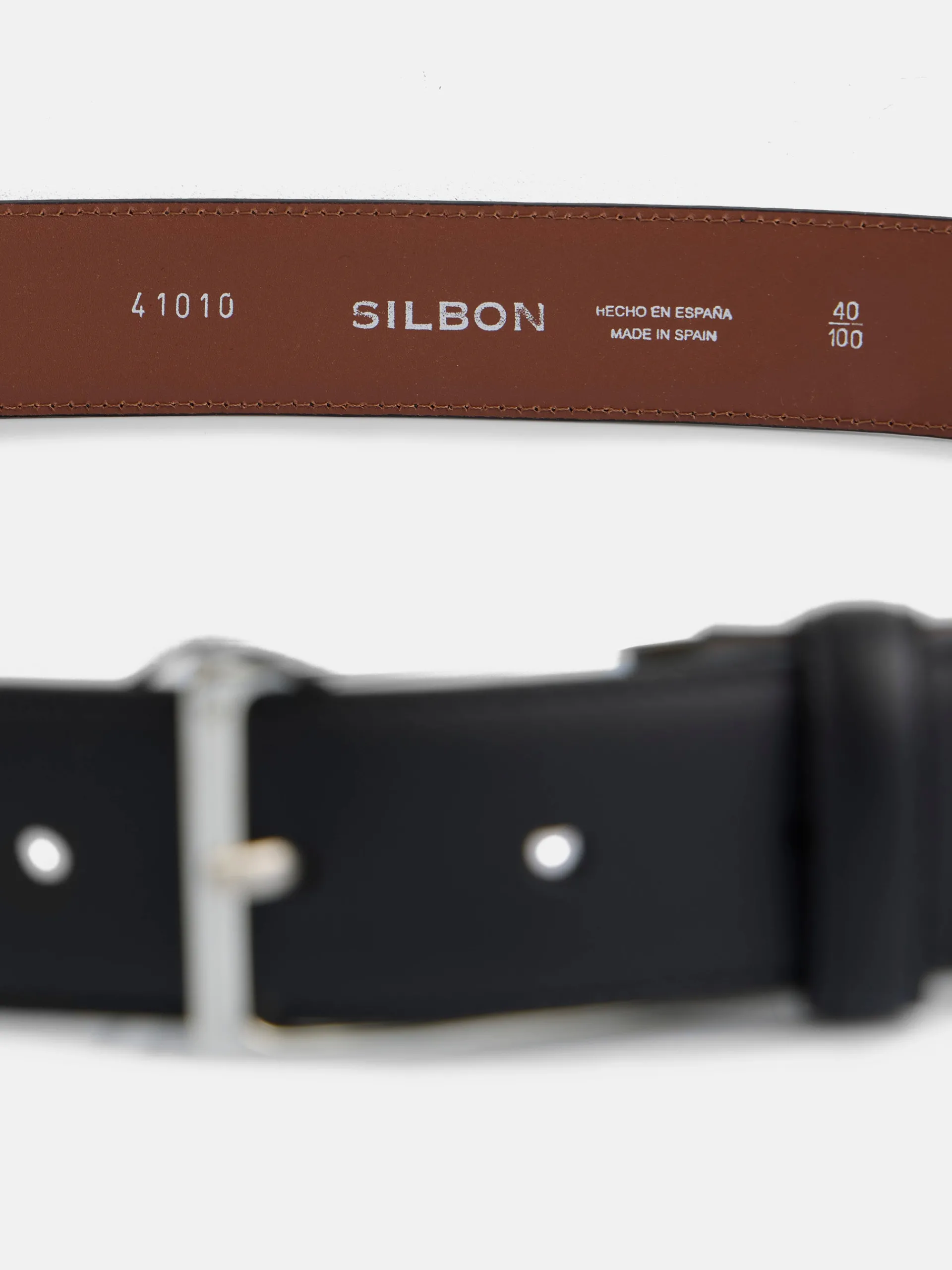 Cinturón de piel vacuno de color negro. Presenta hebilla metálica con grabado a fuego de nuestras raquetas. También incluye un grabado a fuego en la piel del pasador. Fabricado en España.
