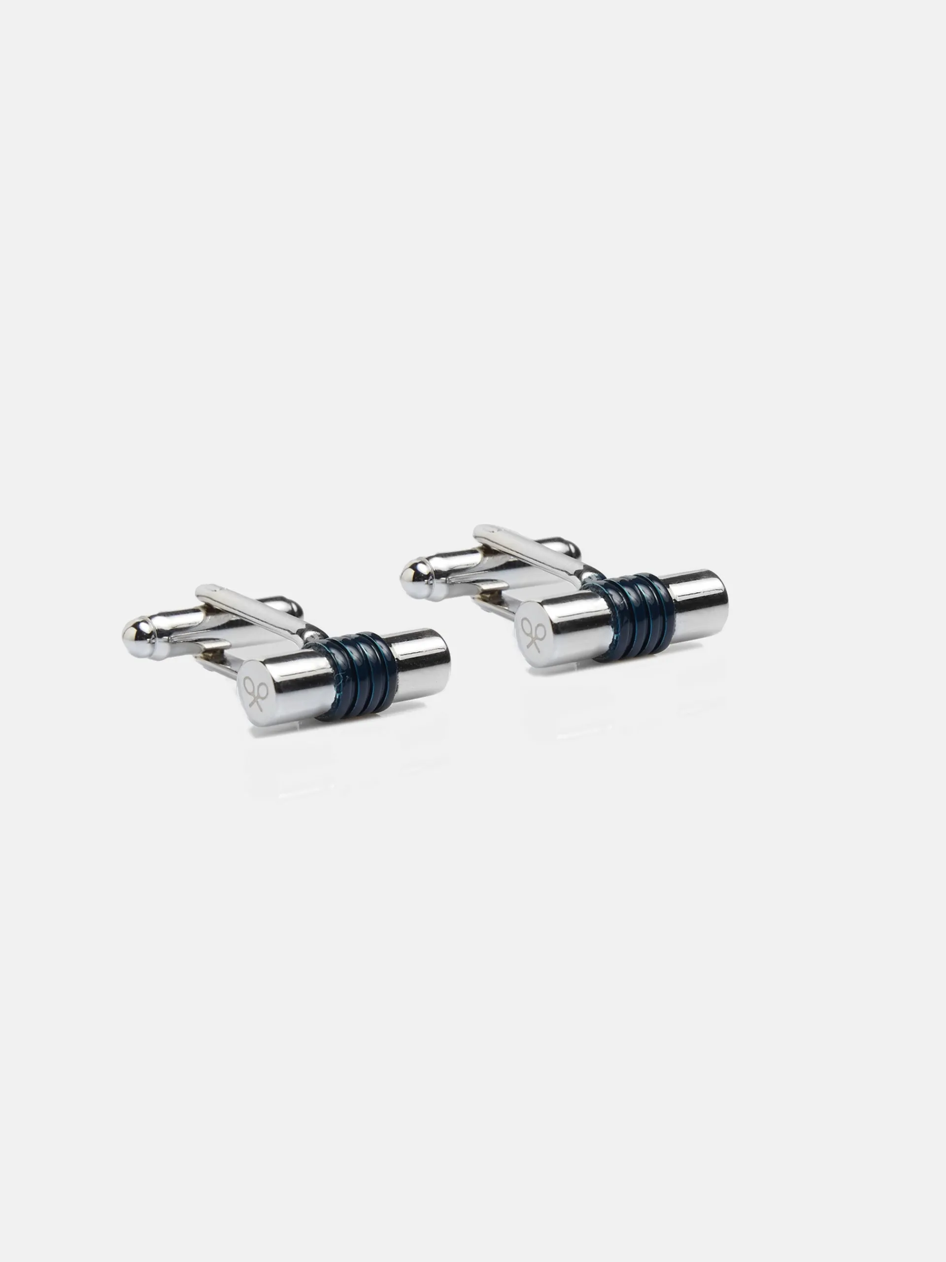 Gemelo cilindro compuesto en latón con lacado en color azul marino. Presenta print de raquetas en ambos extremos.