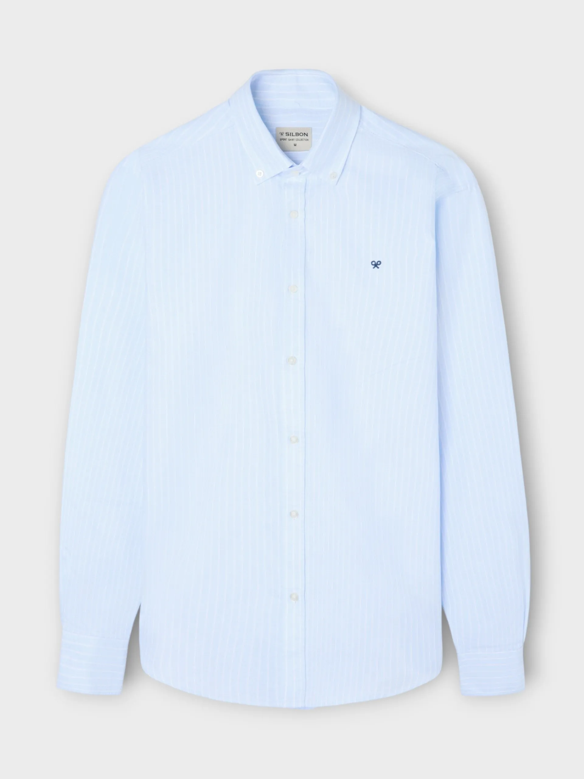 Silbon Smart Casual·Camisas Sport-Camisa sport oxford celeste raya fina Blanca