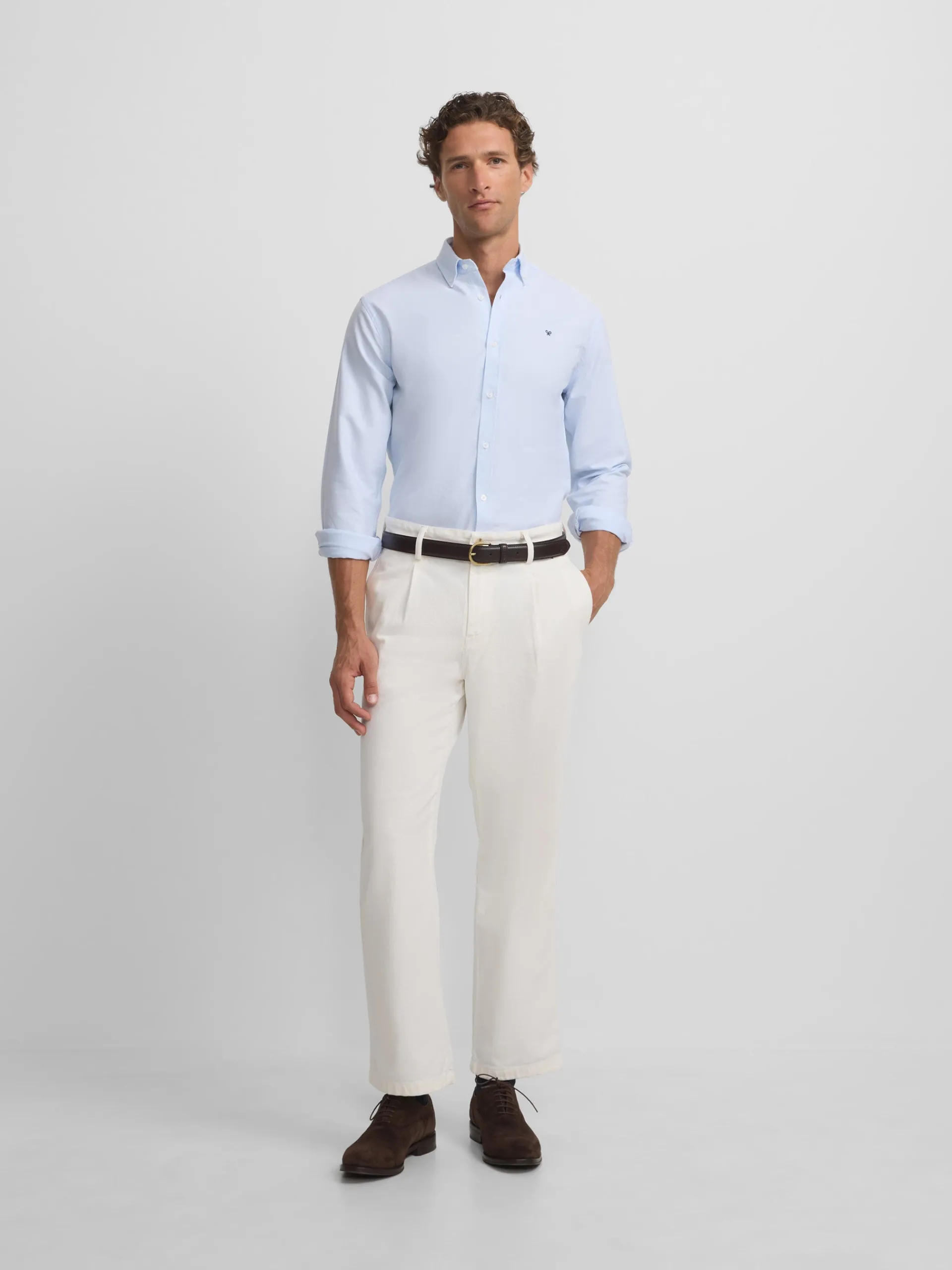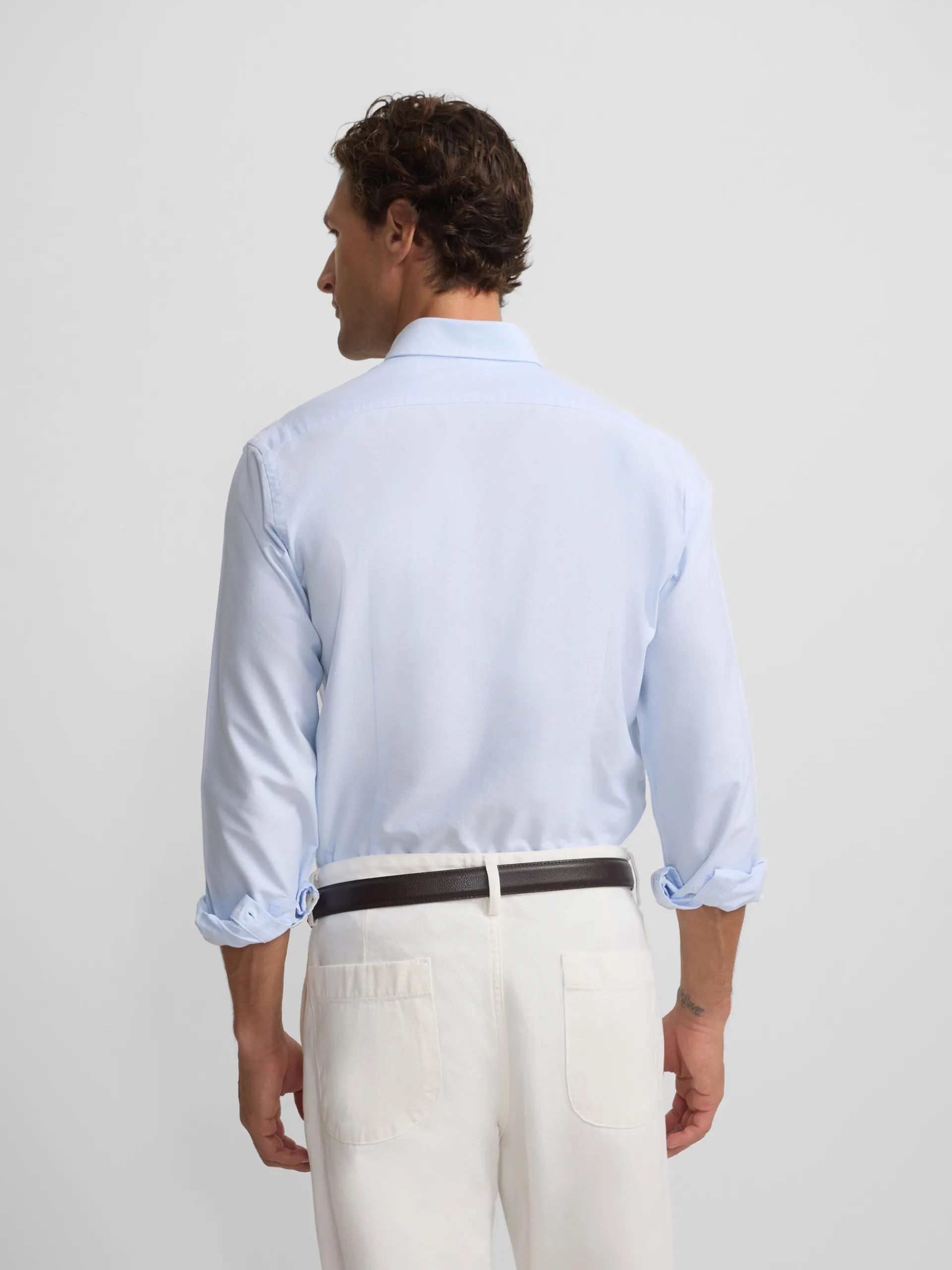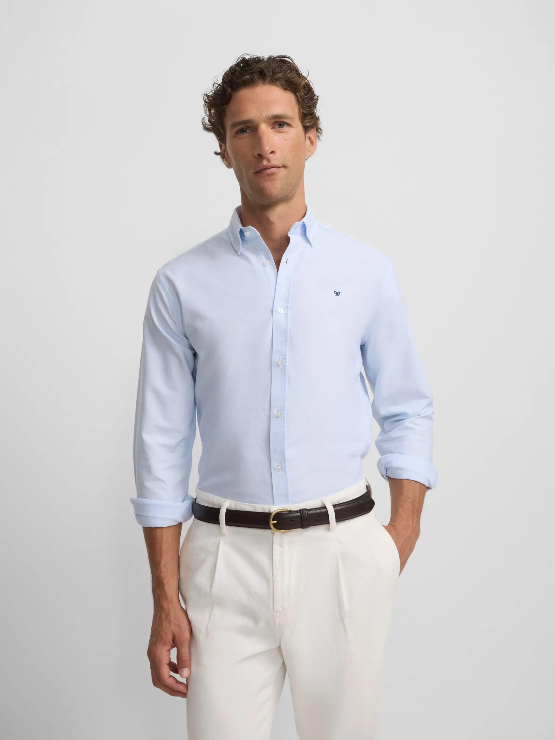 Camisa oxford confeccionada en 100% algodón de corte Slim fit. Presenta cuello button down, cierre con botones personalizados y manga larga de puño con botones. Cuenta con raquetas bordadas en el torso.