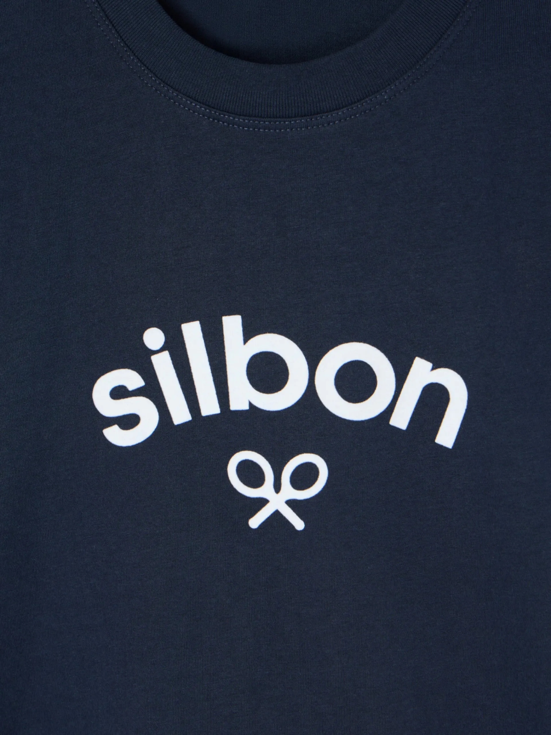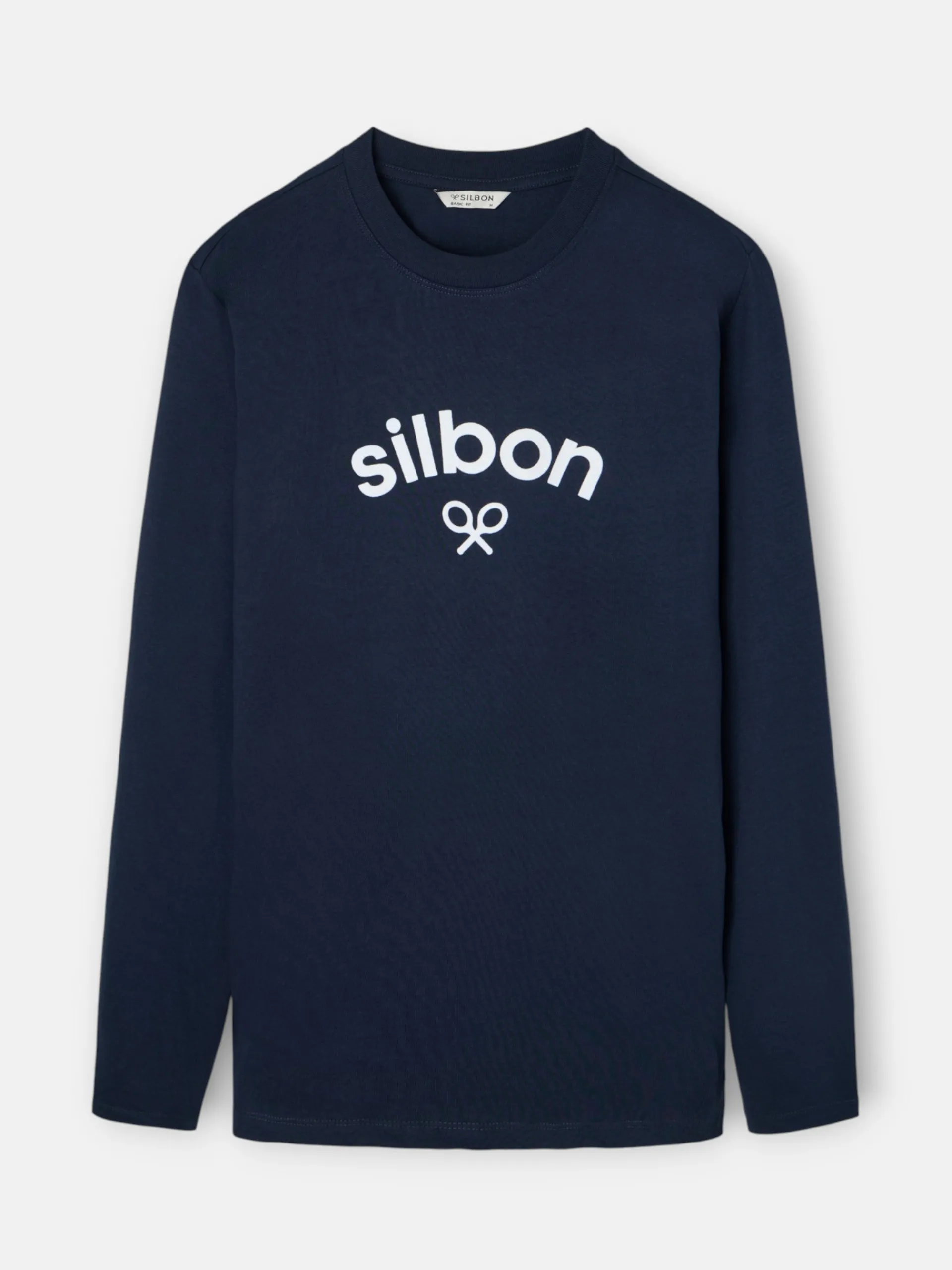 Camiseta de manga larga azul marino confeccionada en 100% algodón de corte Regular fit. Presenta cuello redondo y puños elásticos. Cuenta con detalle de print de raquetas contraste en blanco en el torso. Fabricada en Portugal.