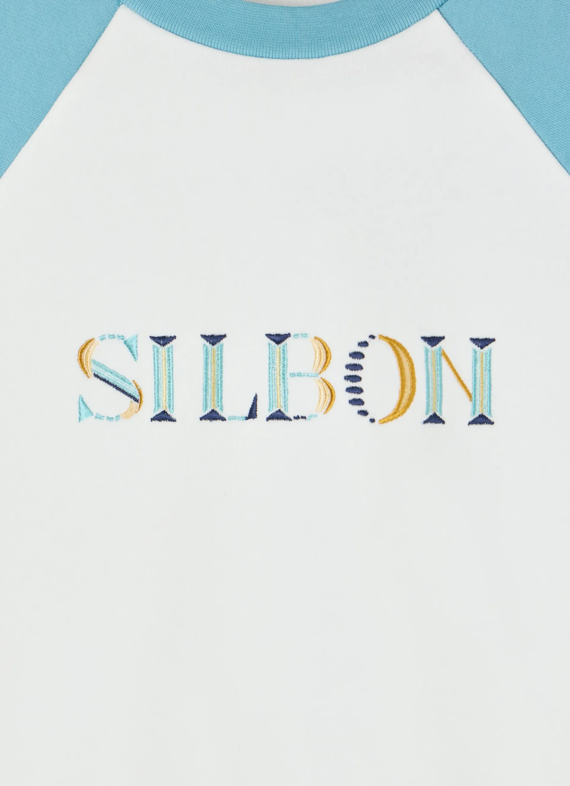 Sudadera woman blanca confeccionada en 100% algodón. Presenta detalle de bordado de letras multicolor en el torso y hombros a contraste en color celeste y azul marino . Cuenta con cuello redondo y mangas rectas con puño elástico. Fabricada en Portugal.