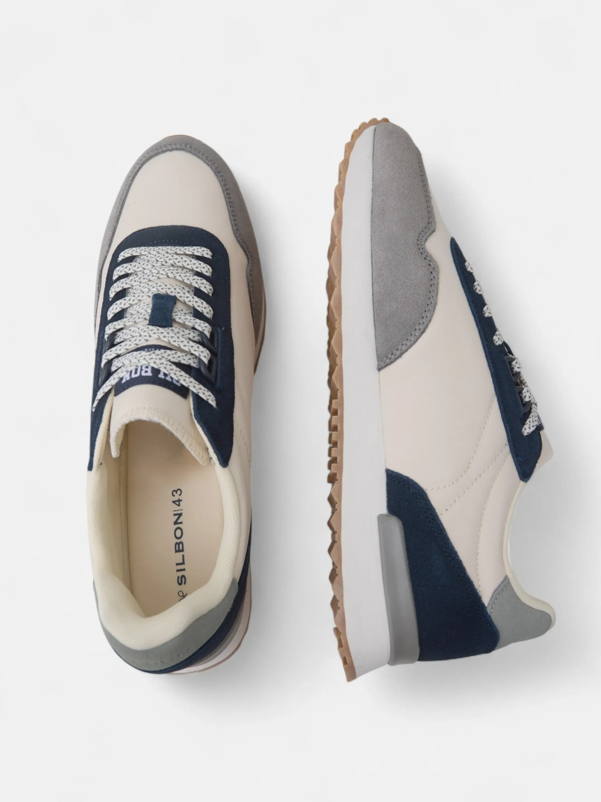 Zapatilla running relax multicolor beige. Presenta aplique de raqueta lateral y cierre con cordones. Cuenta con suela de goma confortable, interior en piel suave, etiqueta personalizada en lengüeta y letras SILBON grabadas en la parte trasera.