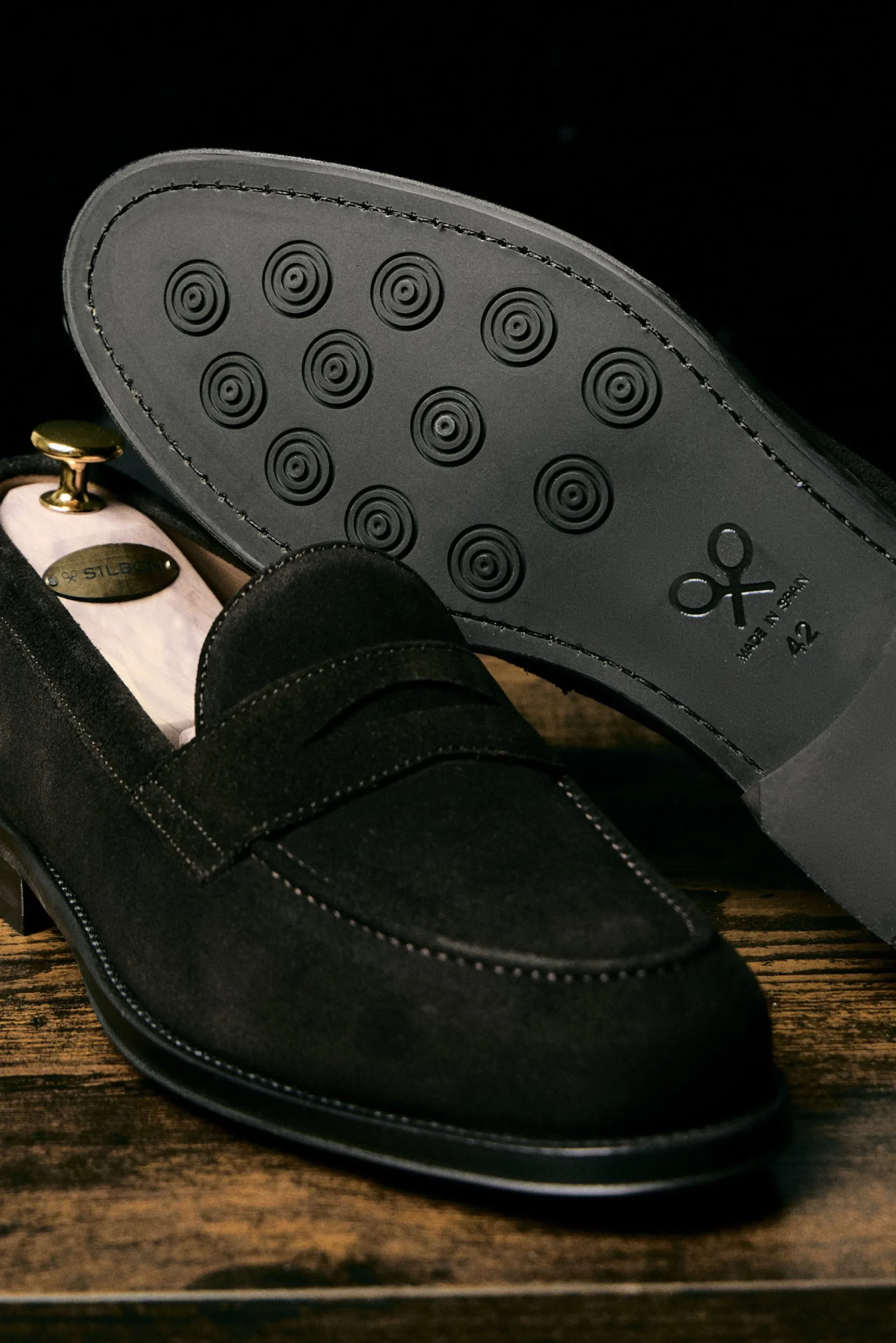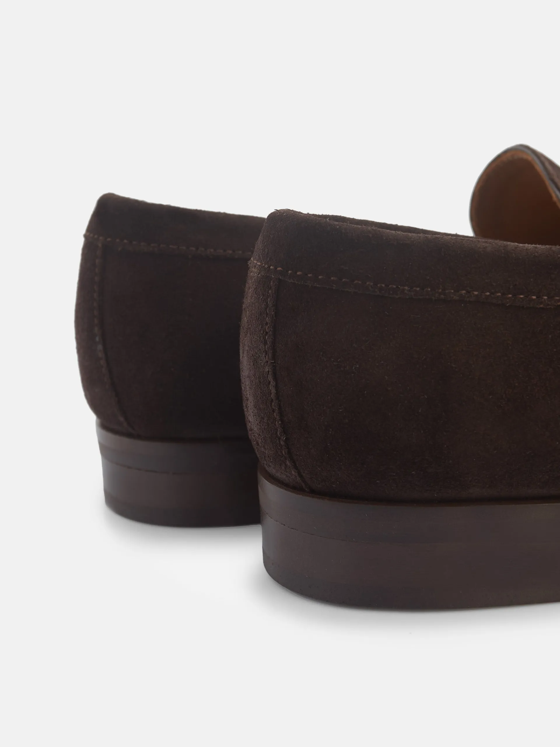Zapatos confeccionados en piel vacuno ante color marrón oscuro.